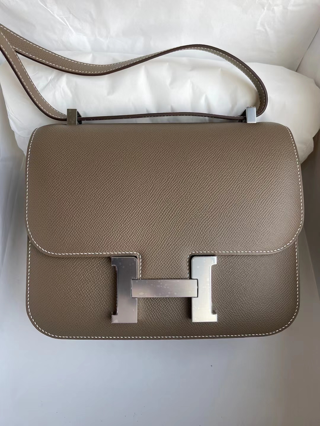 Constance Epsom Ck18 Etoupe Silver Hardware 24cm Full Handmade
