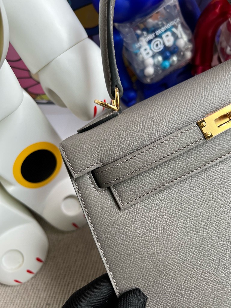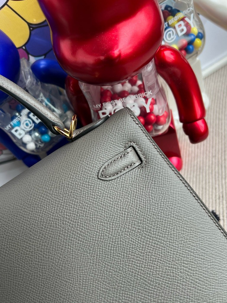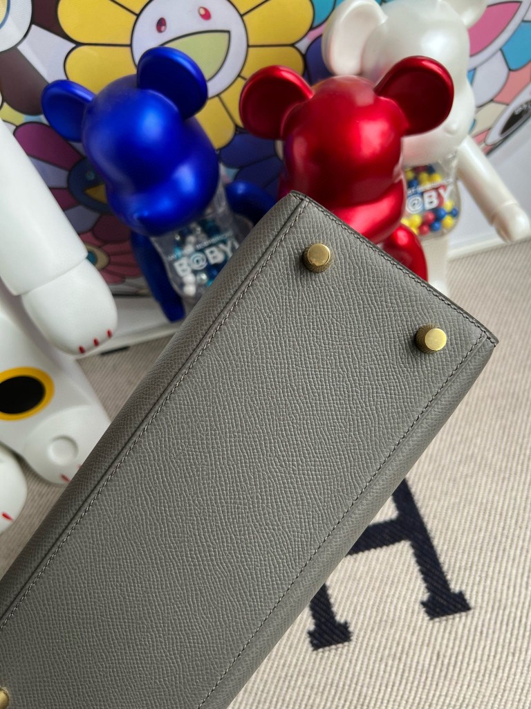 kelly Epsom OL gris meyer Gold Hardware 25cm Full Handmade