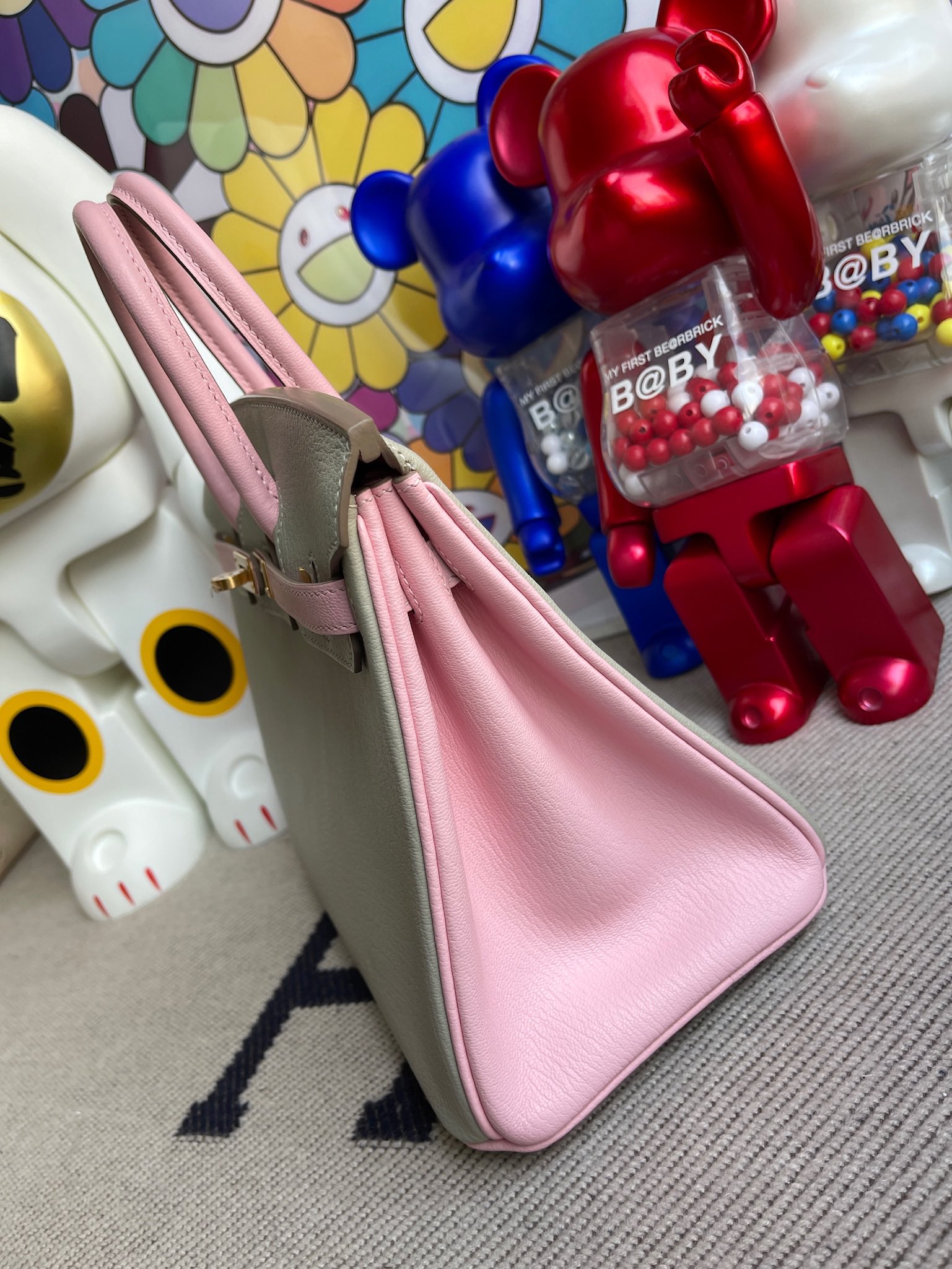 Birkin 25cm Chevre Gris T & 3Q pink Gold Hardware Full Handmade