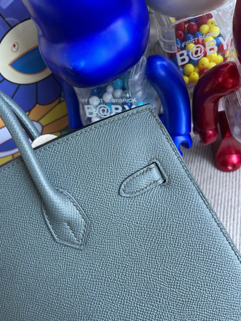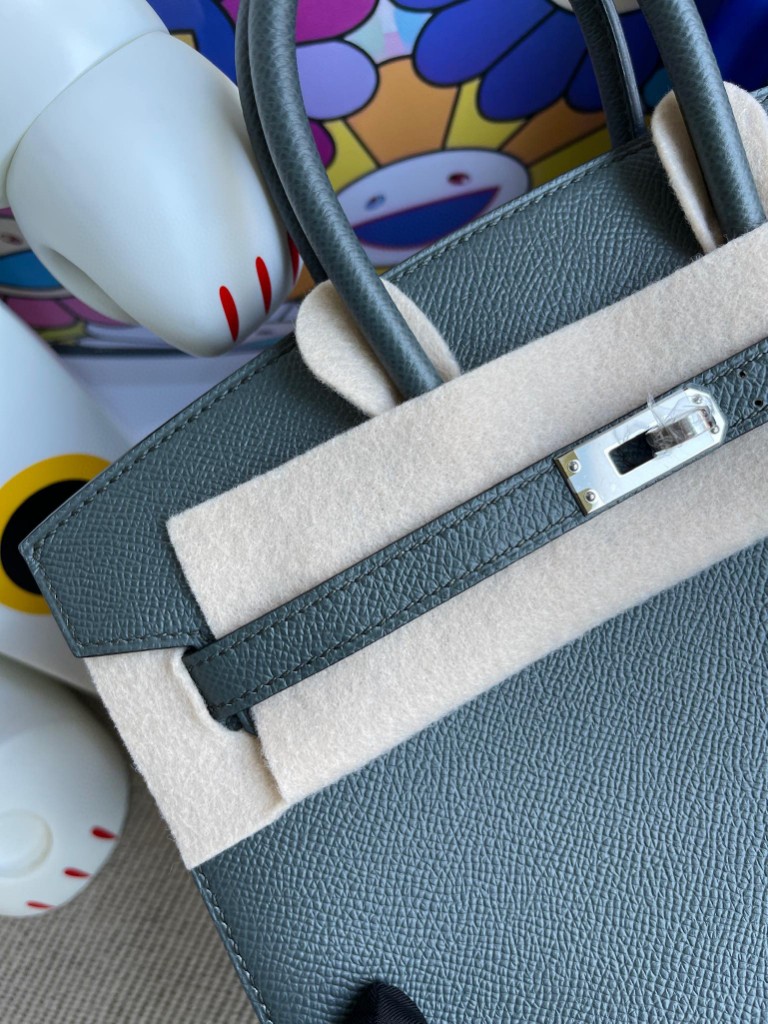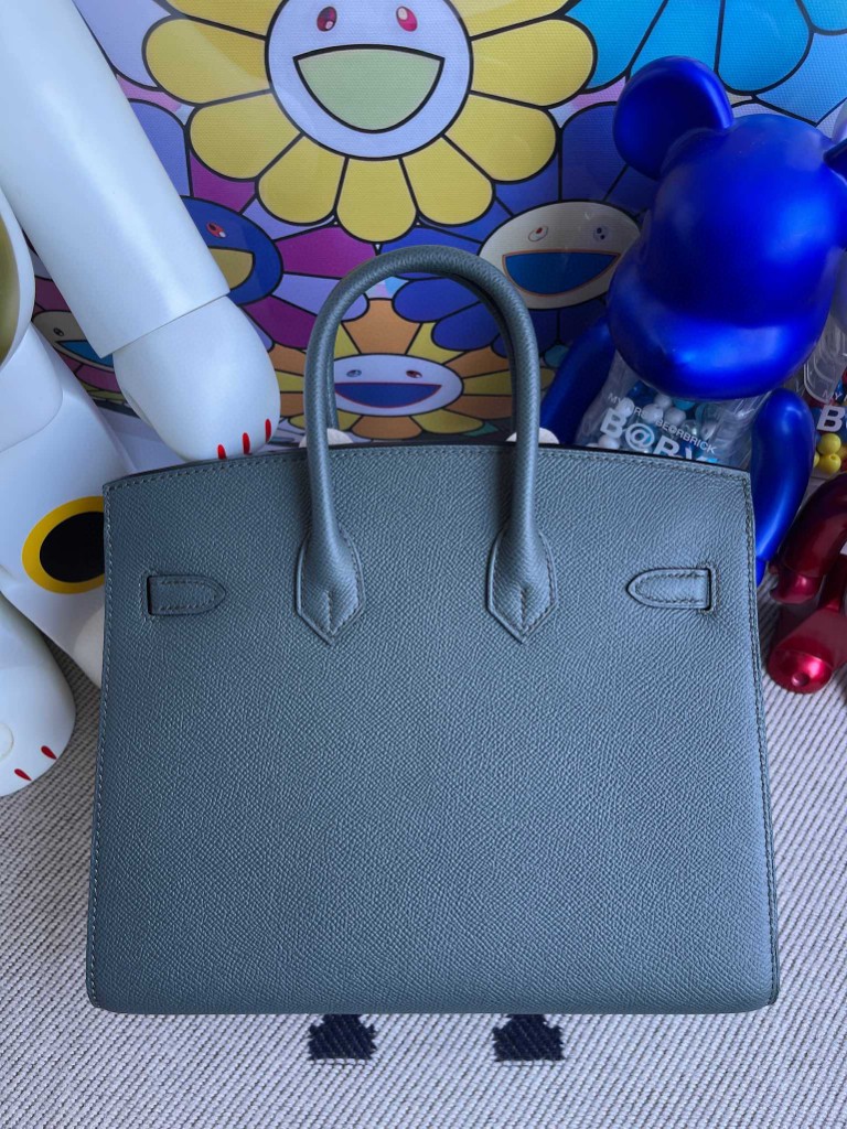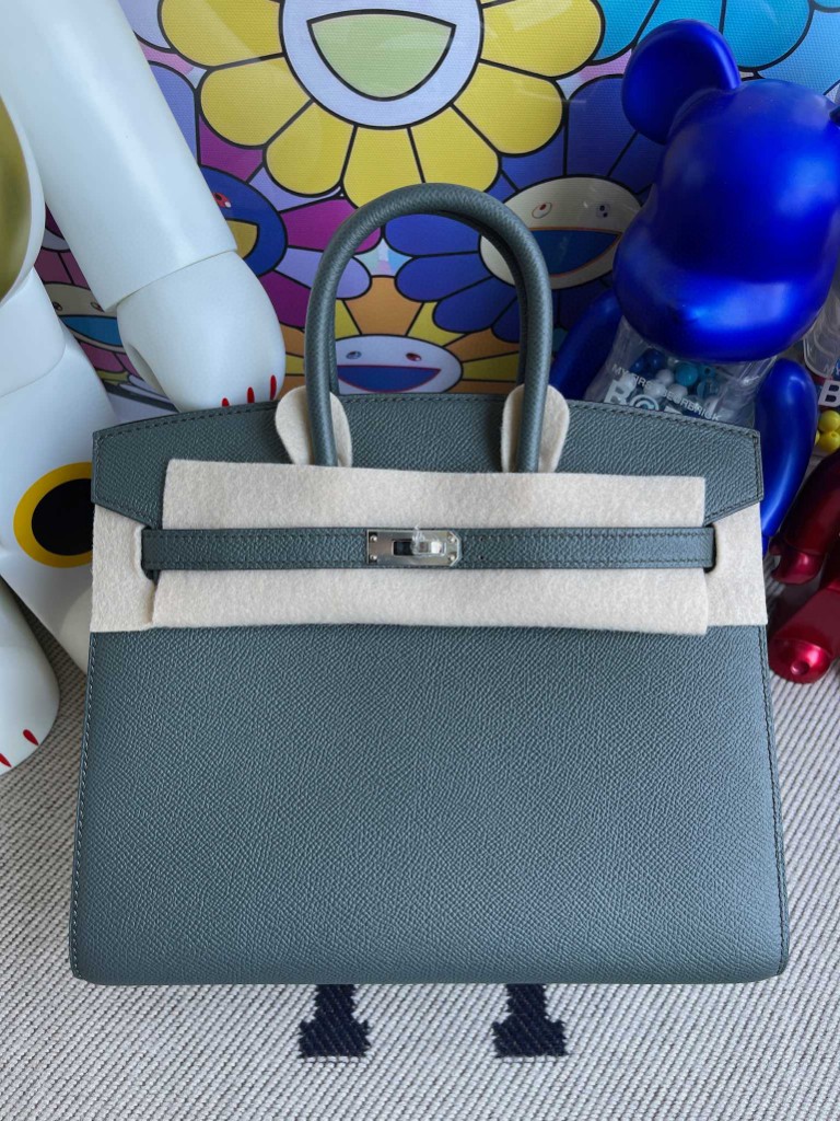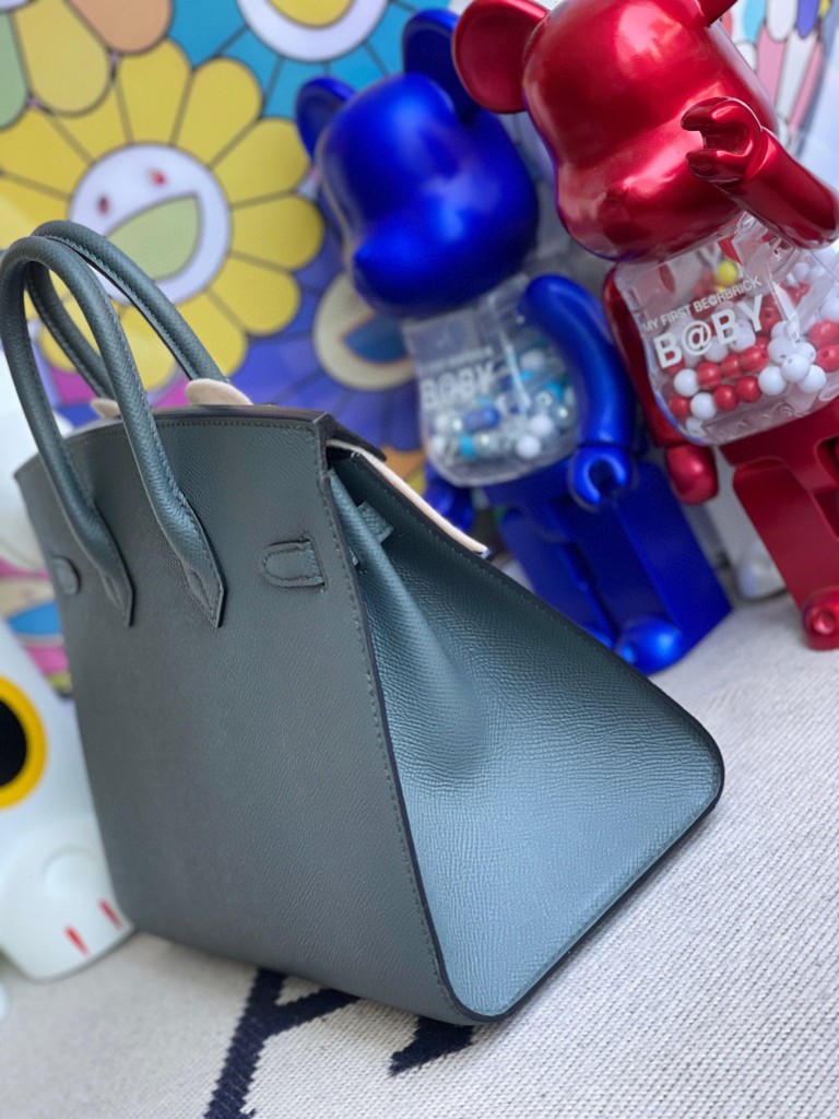 Birkin 25cm Epsom grayish green Silver Hardware Full Handmade