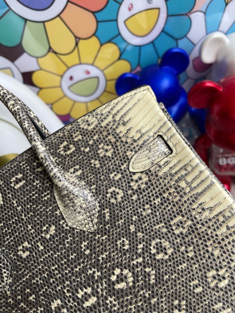 Birkin 25cm shiny Lizard Himalayan Primary colors Silver Hardware Full Handmade