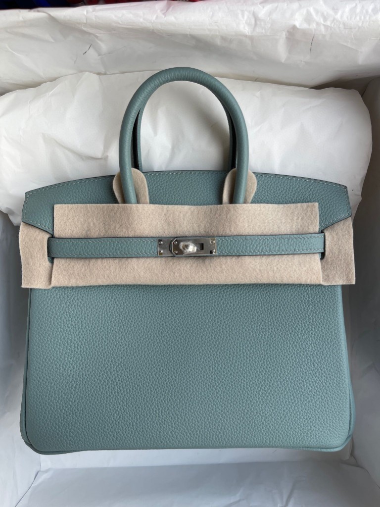 Birkin 25cm togo 7G azure Silver Hardware Full Handmade