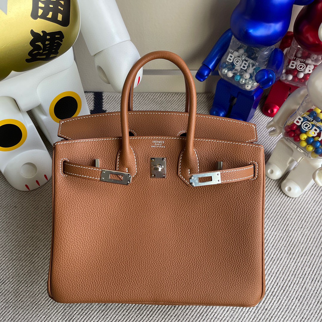 Birkin 25cm togo ck37 Golden brown Silver Hardware Full Handmade