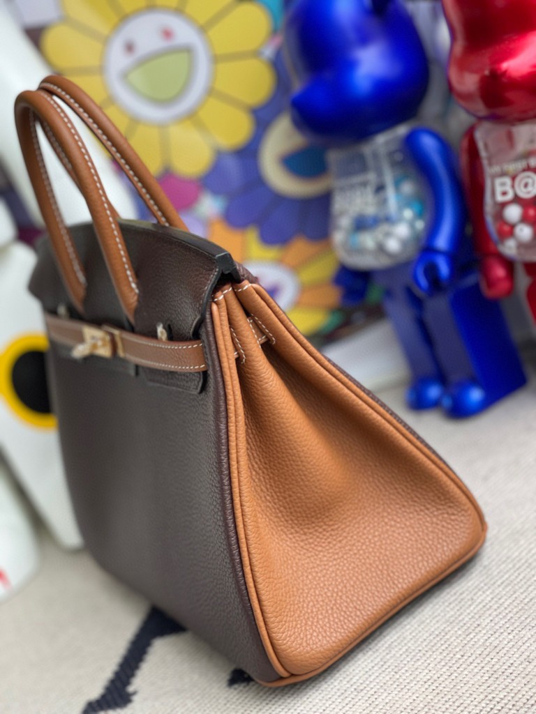 Birkin 25cm togo ebony & Golden brown Gold Hardware Full Handmade