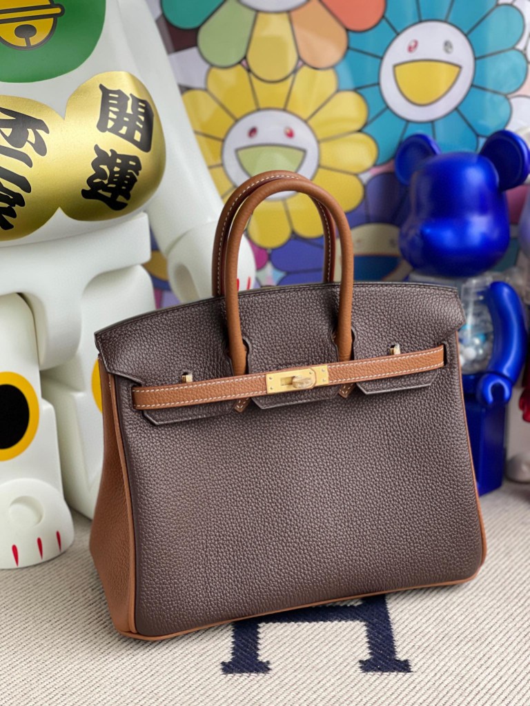 Uncle Bench Hermes Birkin 25cm togo ebony & Golden brown Gold Hardware Full Handmade