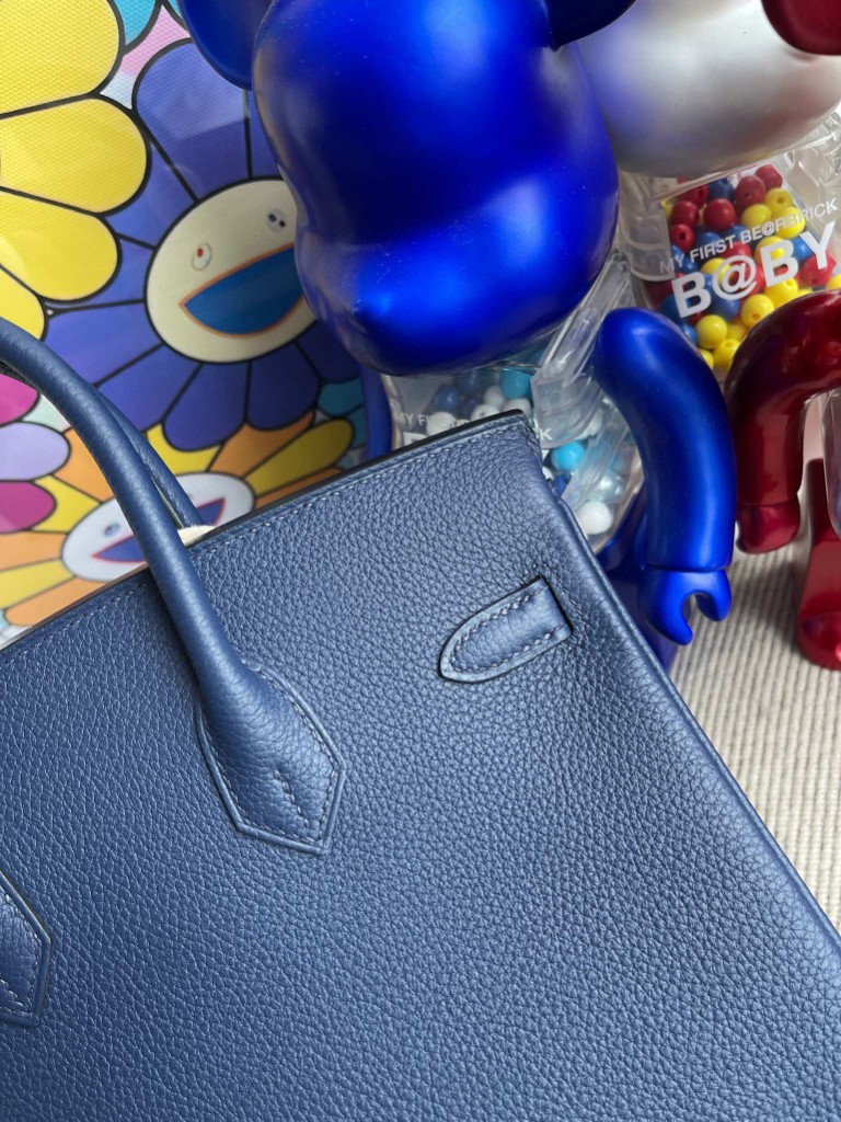 Birkin 25cm togo gem blue Silver Hardware Full Handmade