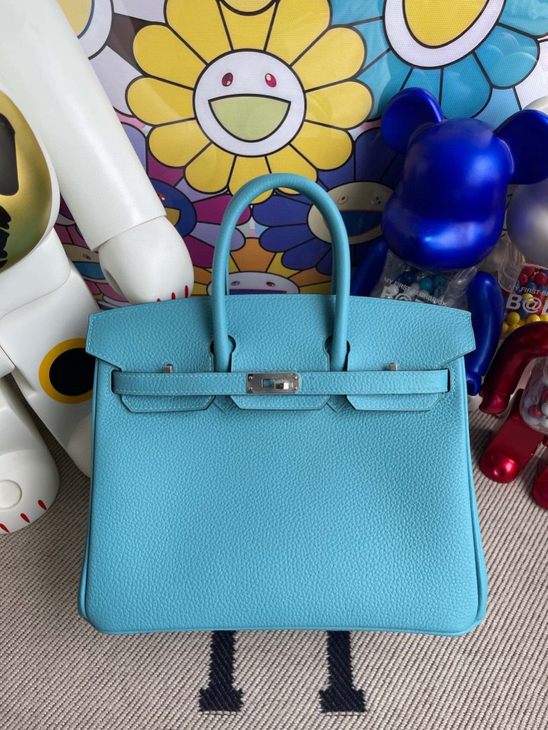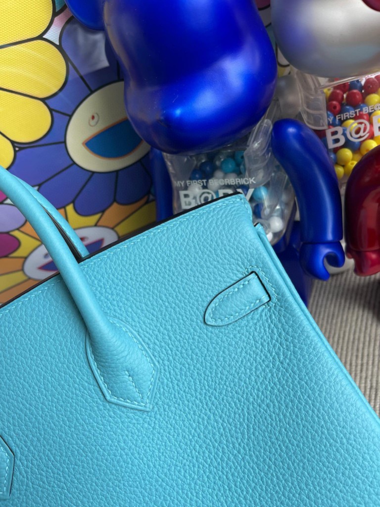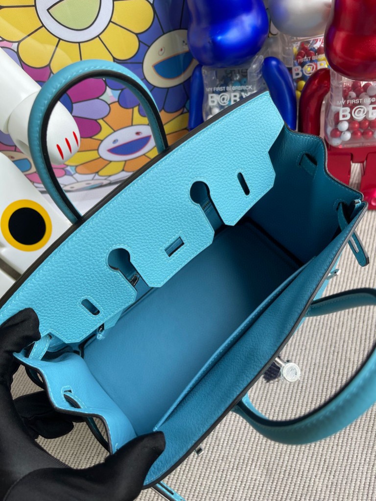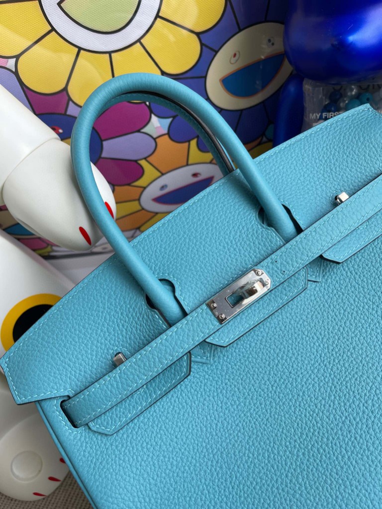 Birkin 25cm togo p3 Lake blue Silver Hardware Full Handmade