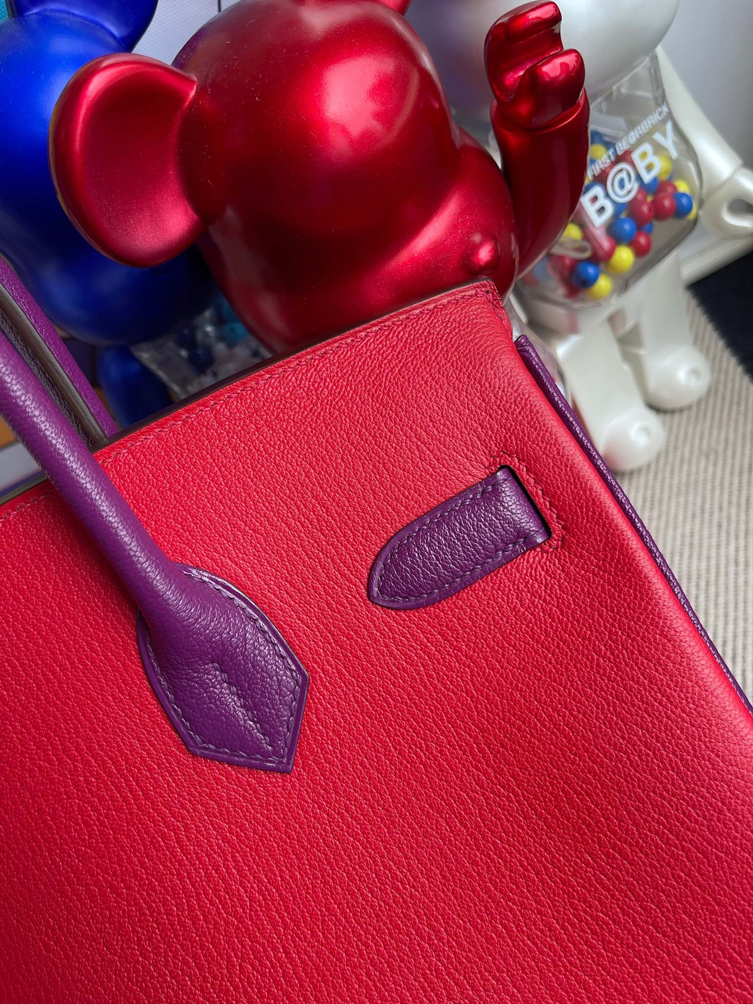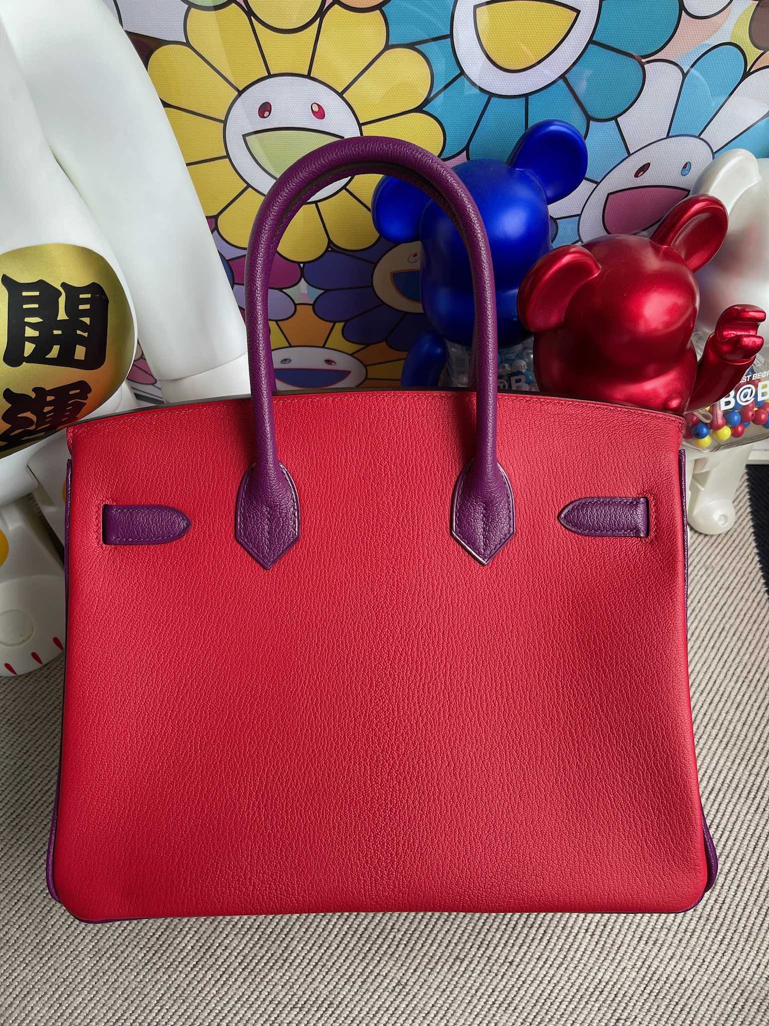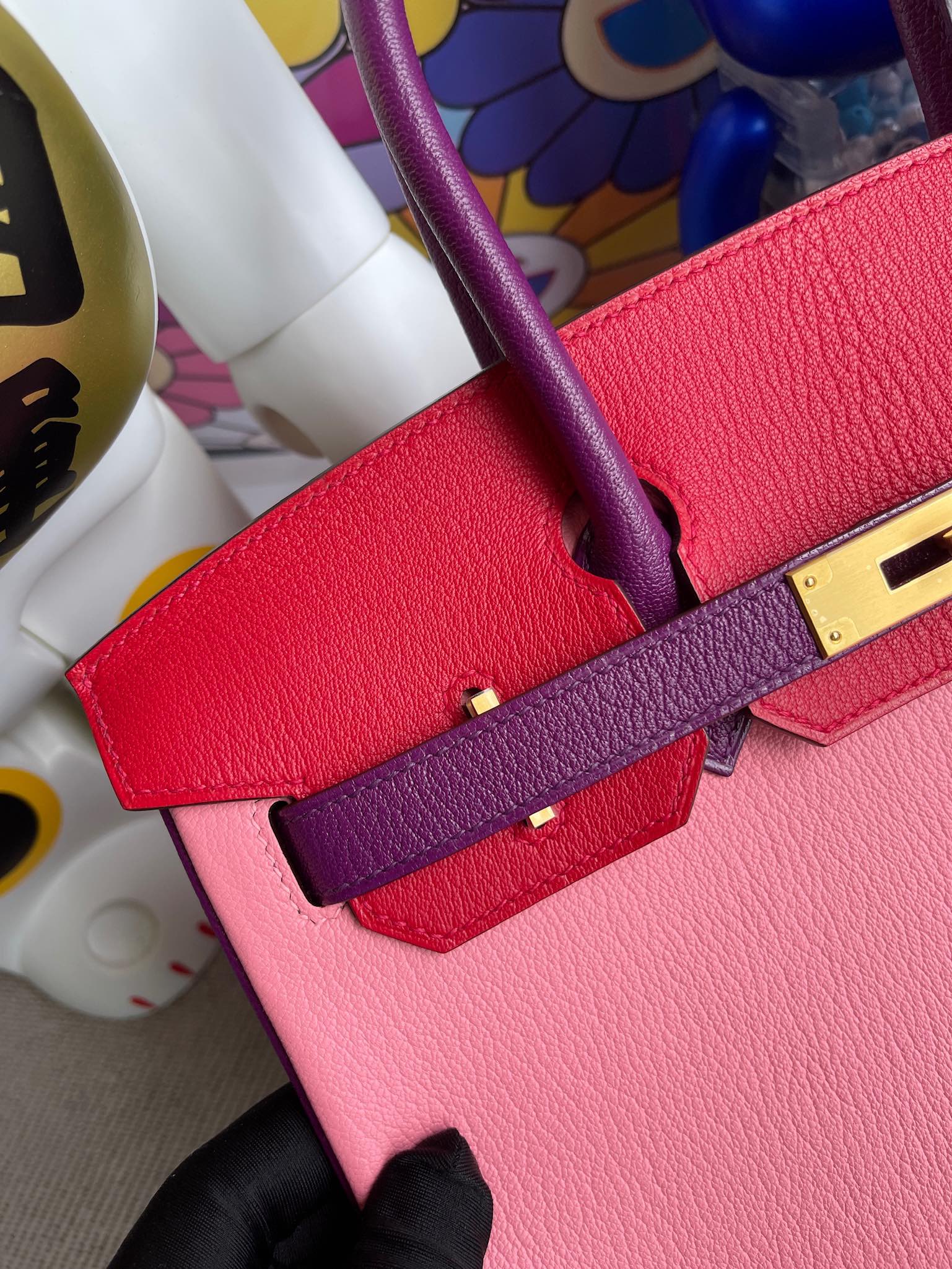 Birkin 30cm Chevre creamy pink & red & actiniae purple Gold Hardware Full Handmade