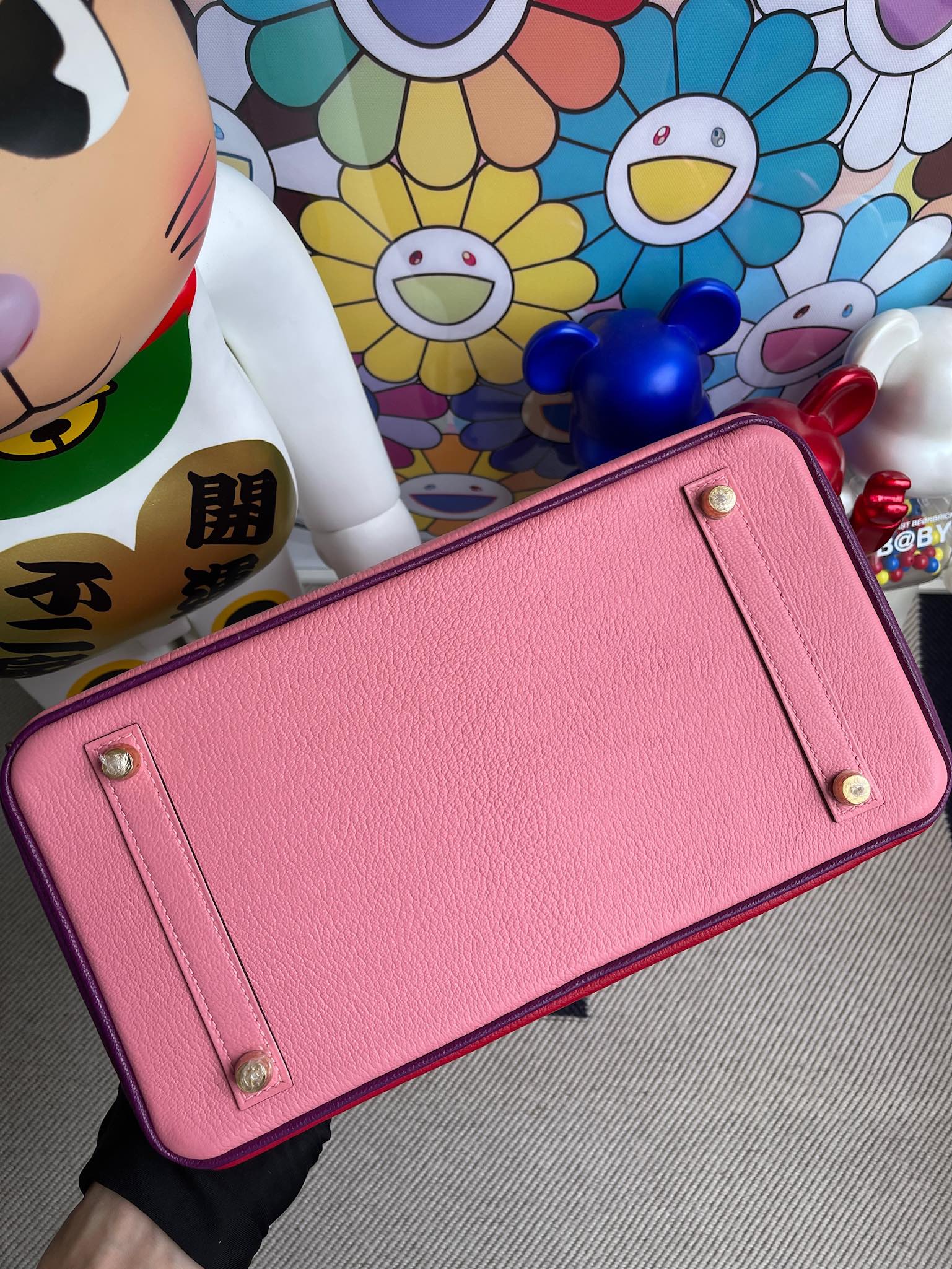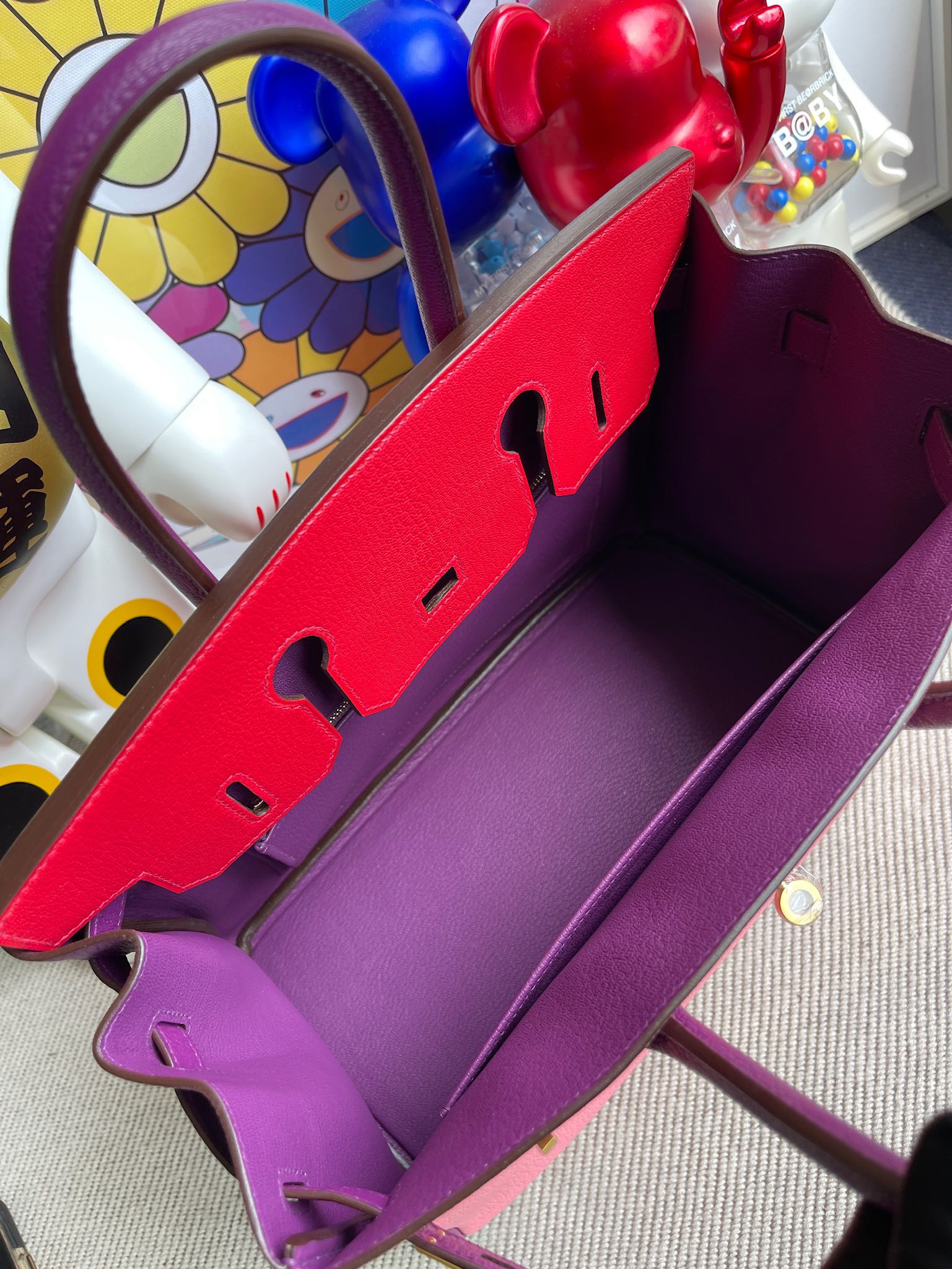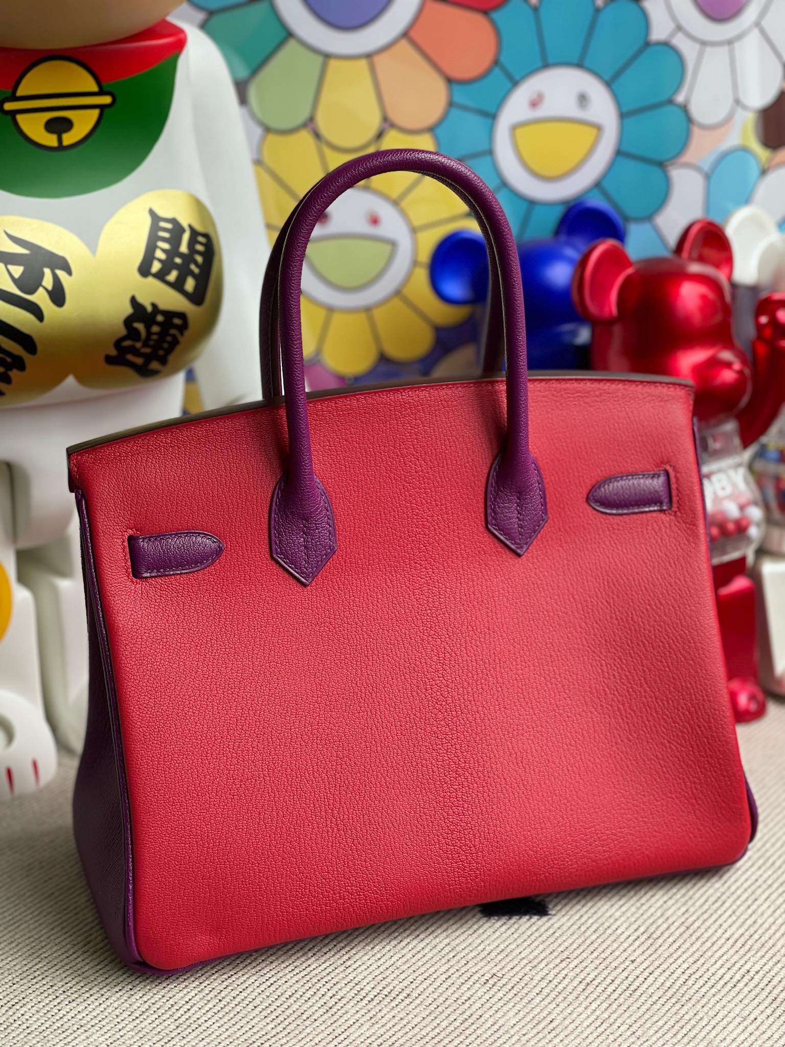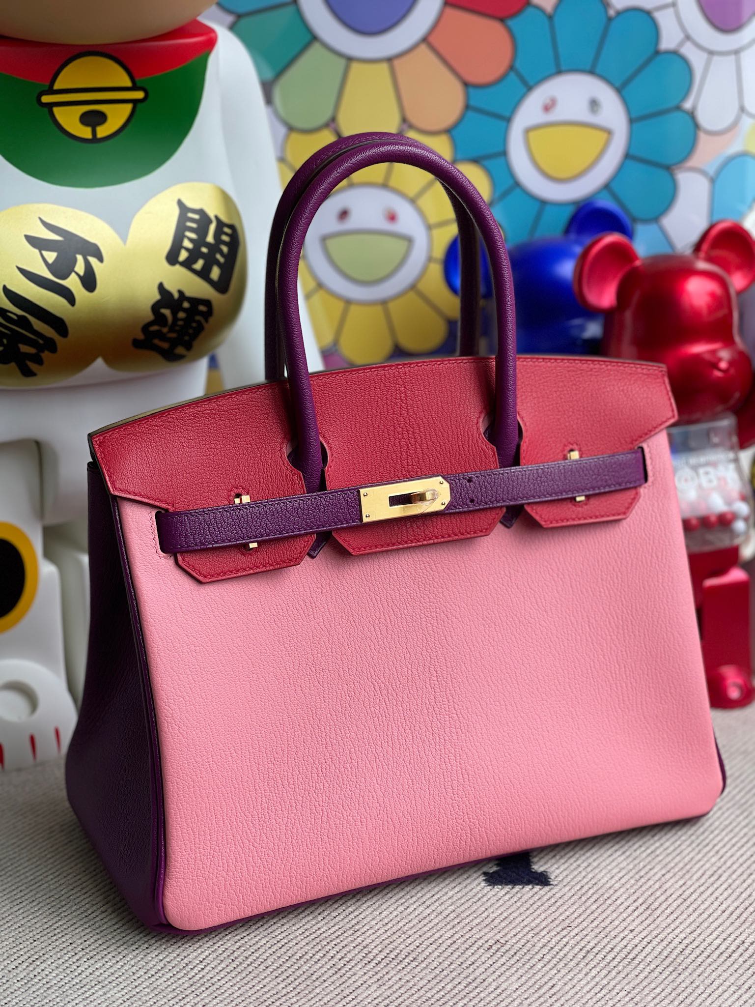 Uncle Bench Hermes Birkin 30cm Chevre creamy pink & red & actiniae purple Gold Hardware Full Handmade