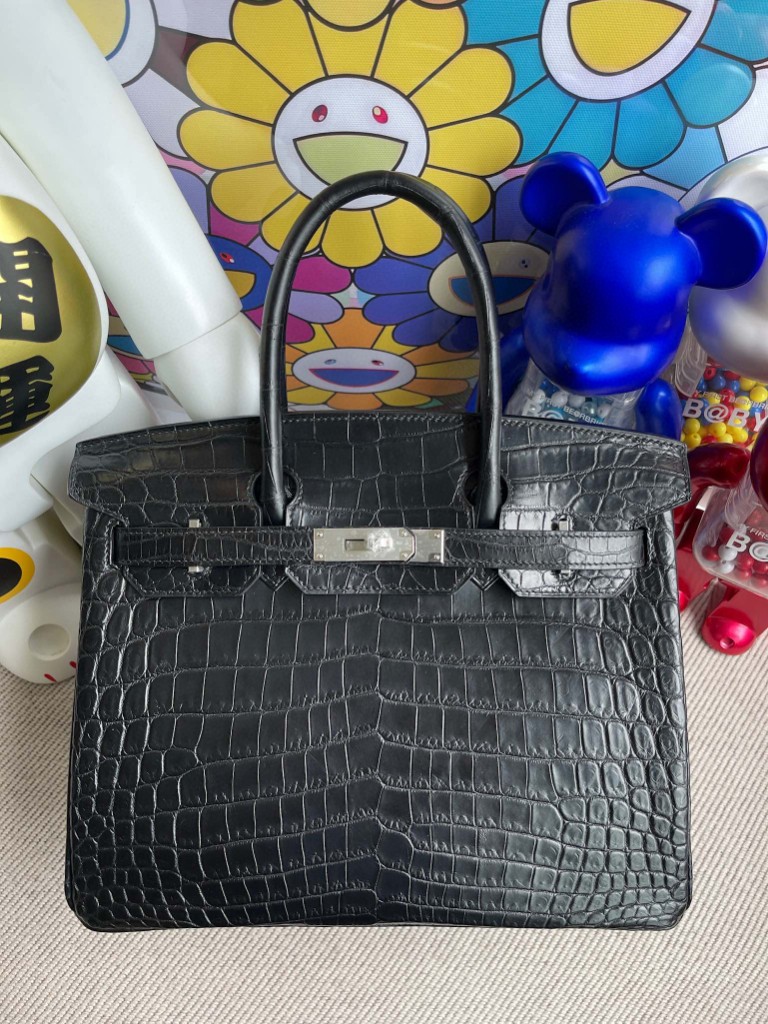 Birkin 30cm Crocodile matt ck89 Noir Silver Hardware Full Handmade