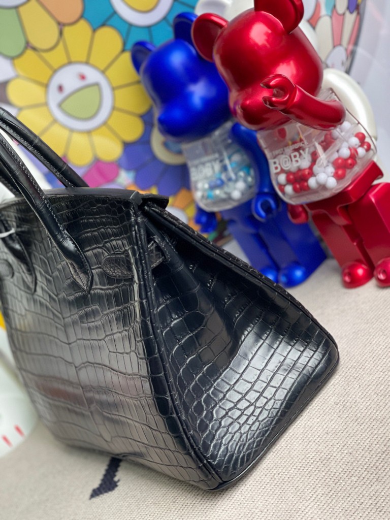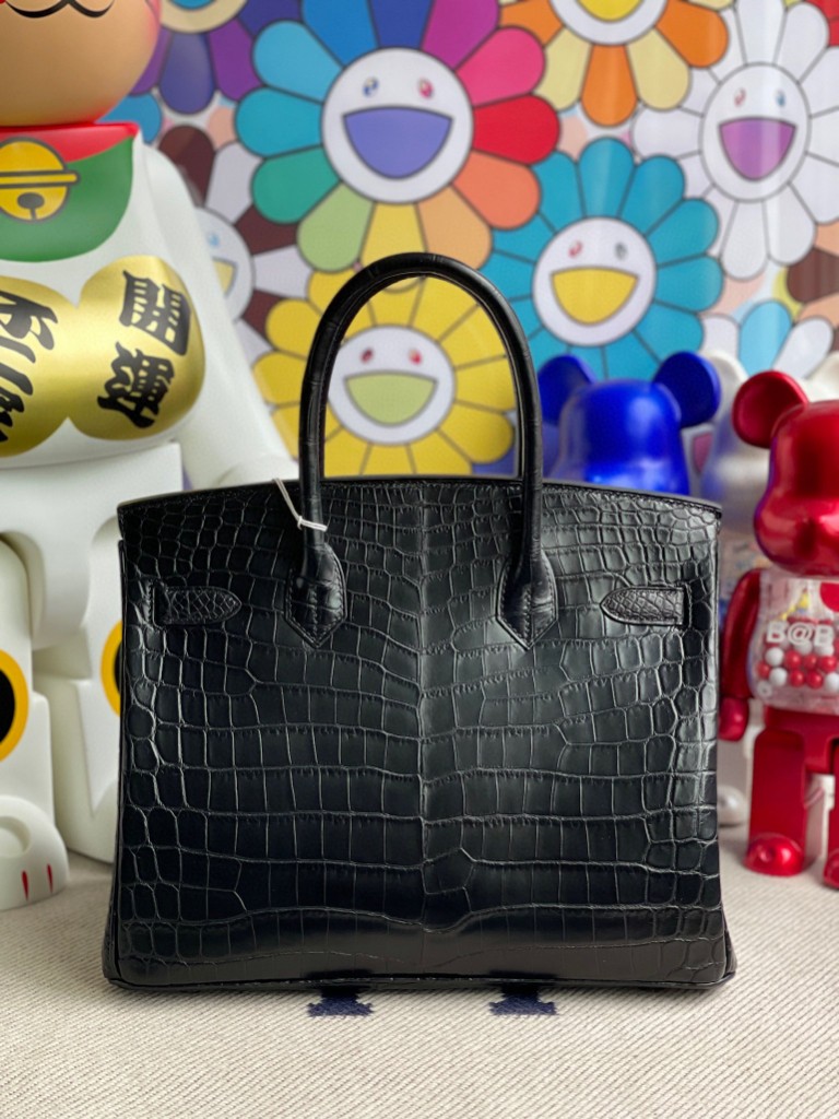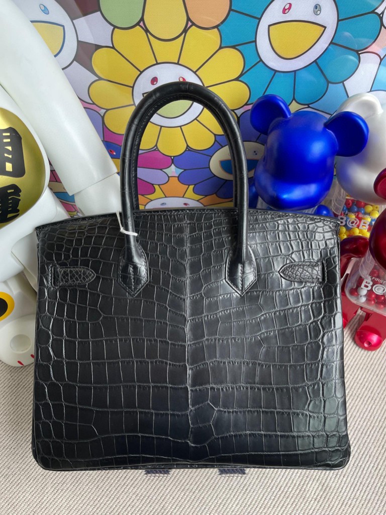 Birkin 30cm Crocodile matt ck89 Noir Silver Hardware Full Handmade
