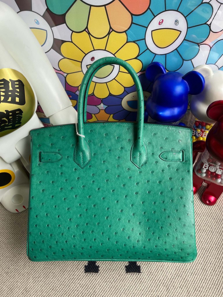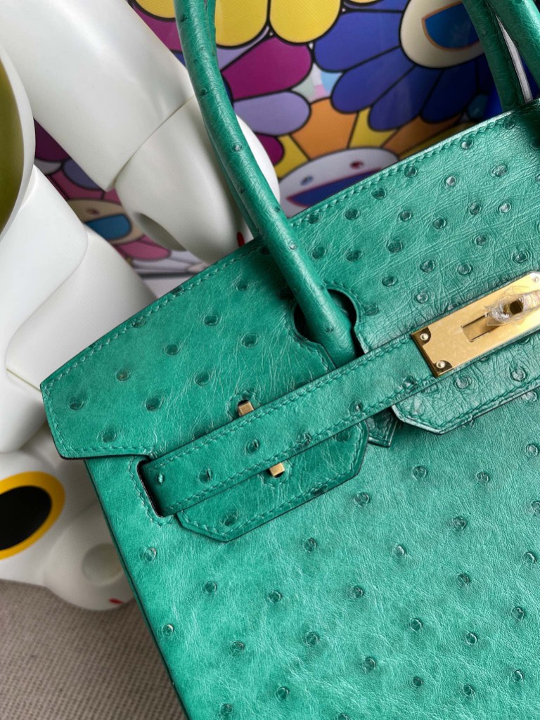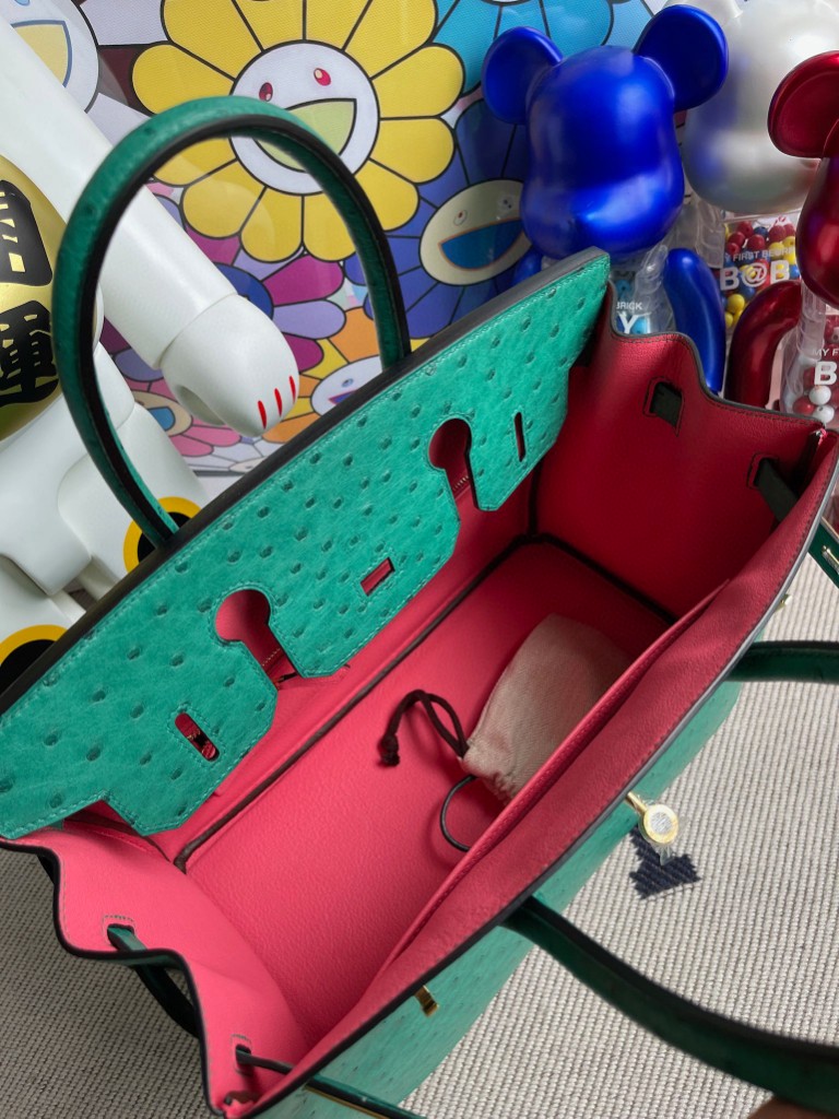 Birkin 30cm Ostrich kk U4 Velvet green & lipstick pink Gold Hardware Full Handmade
