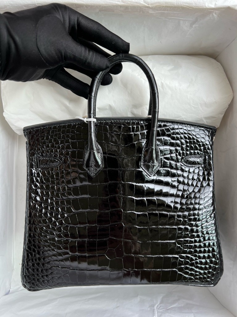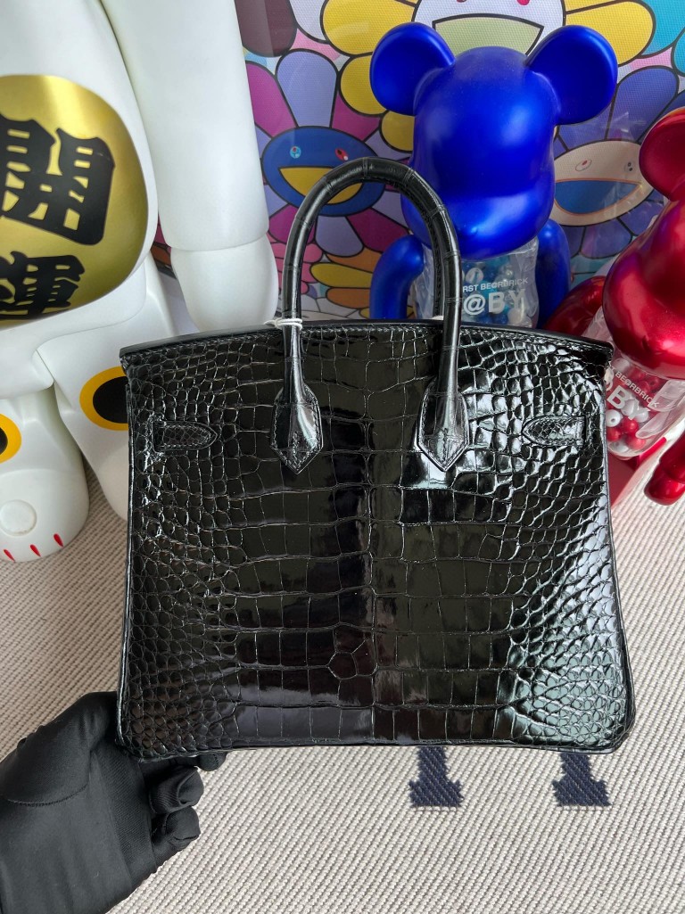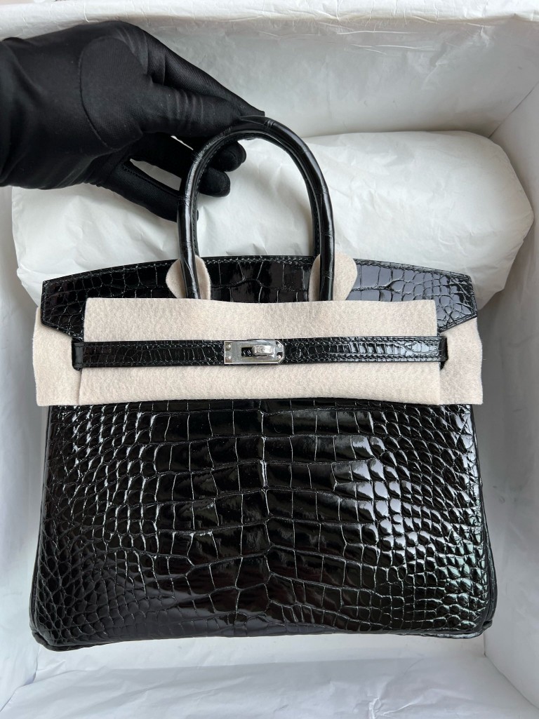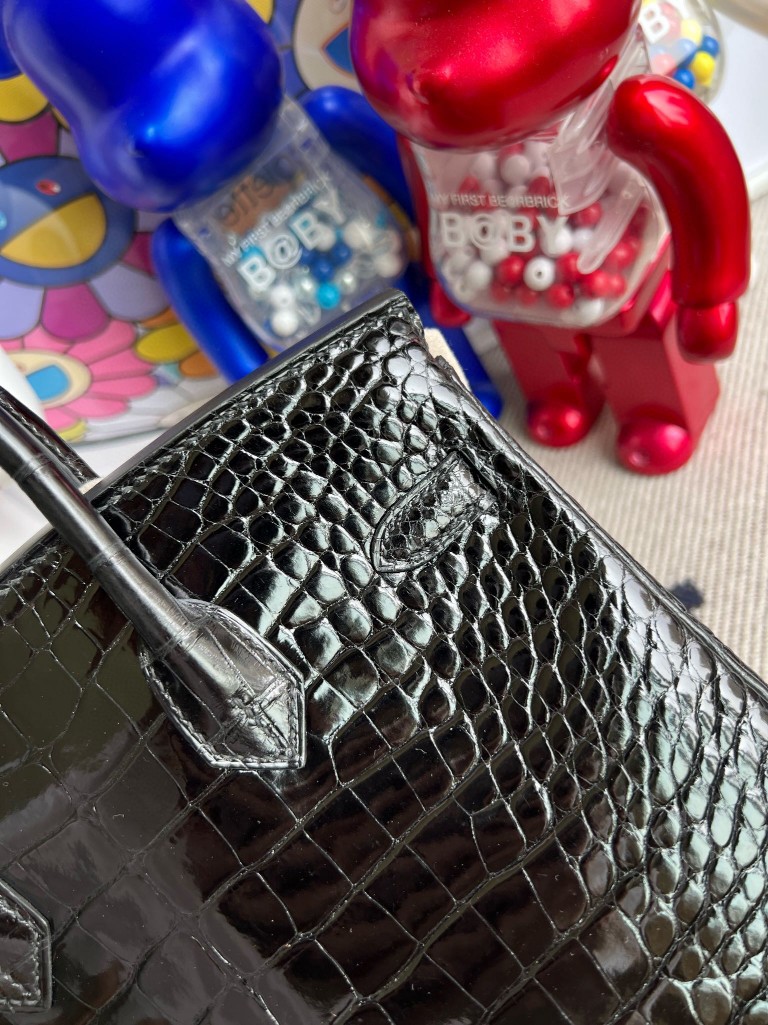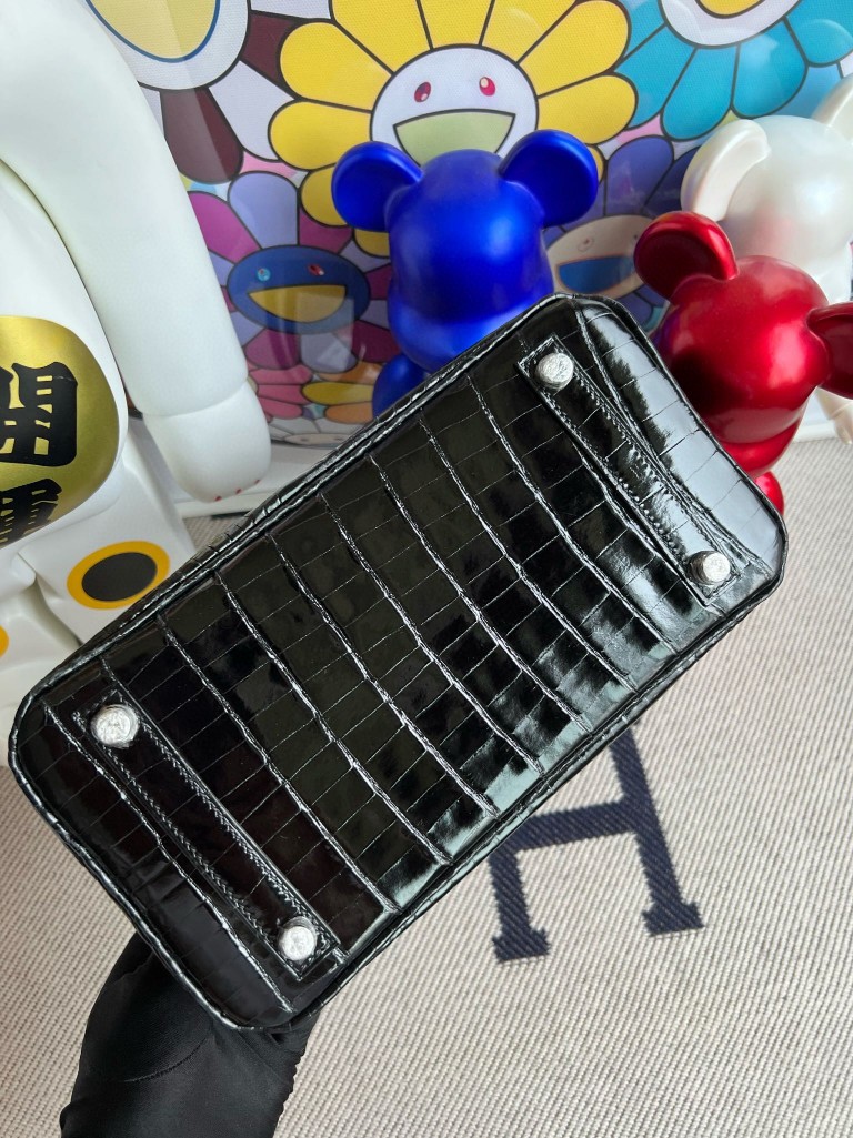 Birkin Alligator shiny ck89 Noir Silver Hardware 25cm Full Handmade