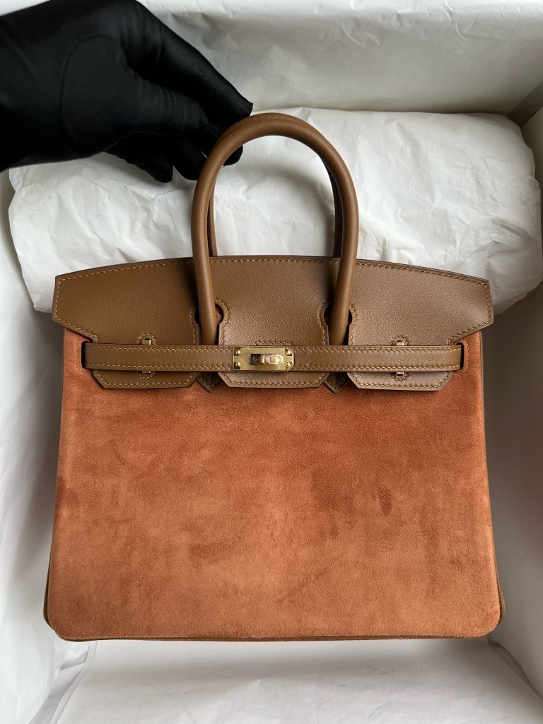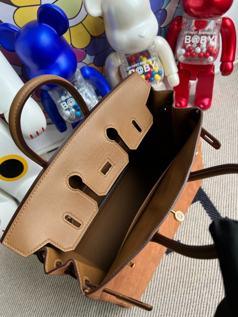Uncle Bench Hermes Birkin chamois Grizzly & 3G Alezan Gold Hardware 25cm Full Handmade
