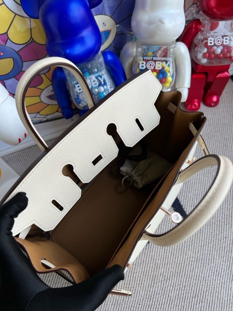 Uncle Bench Hermes Birkin Epsom ck10 Craie & Biscuit Rose Gold Hardware 25cm Full Handmade