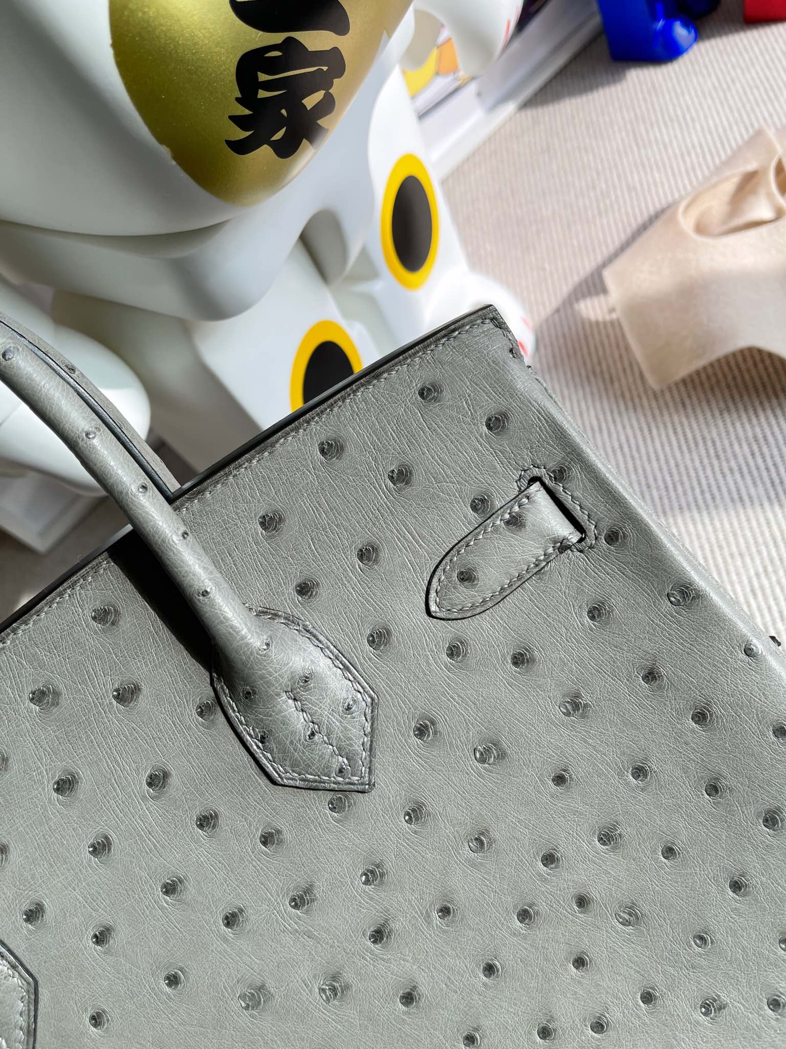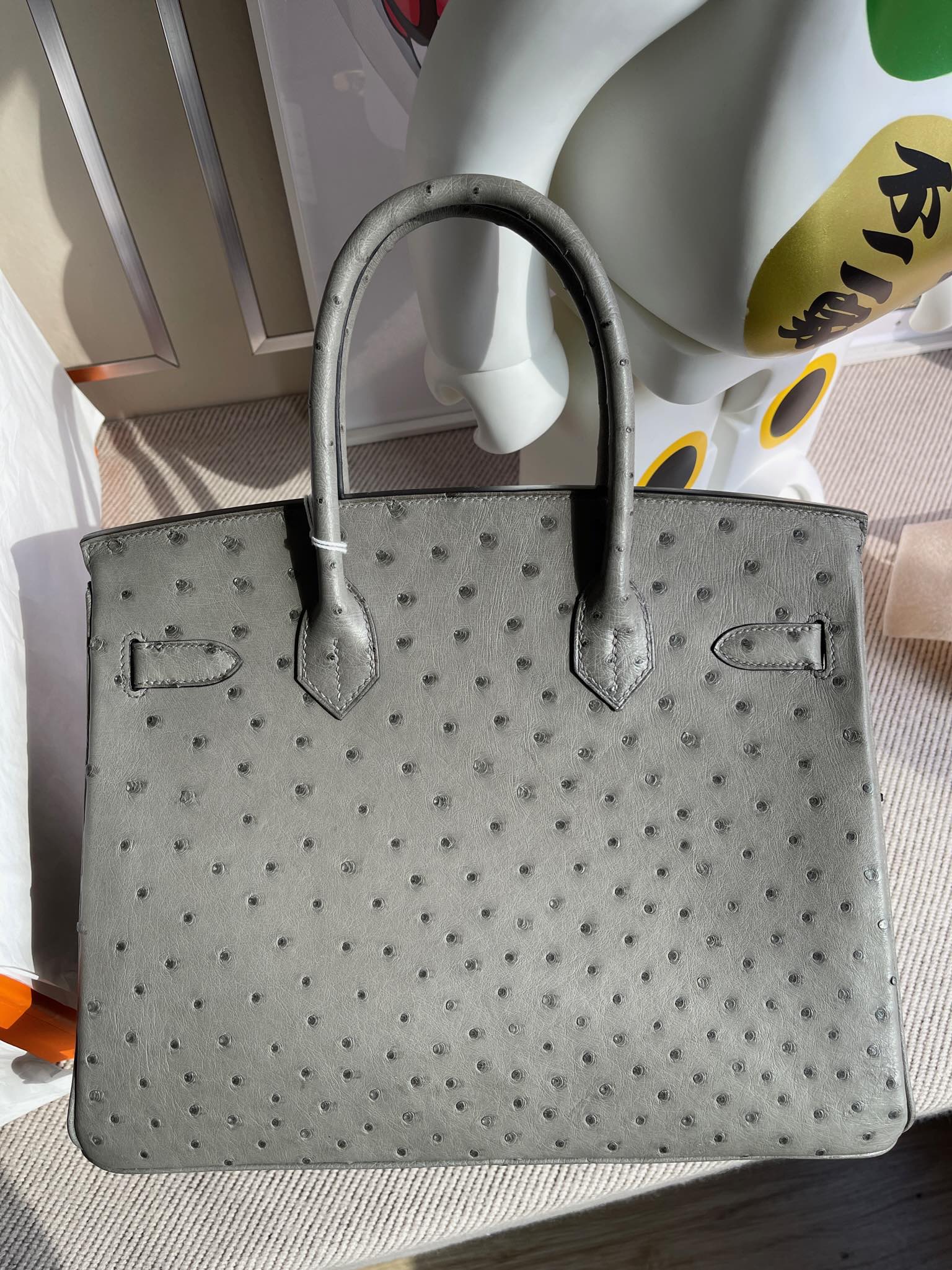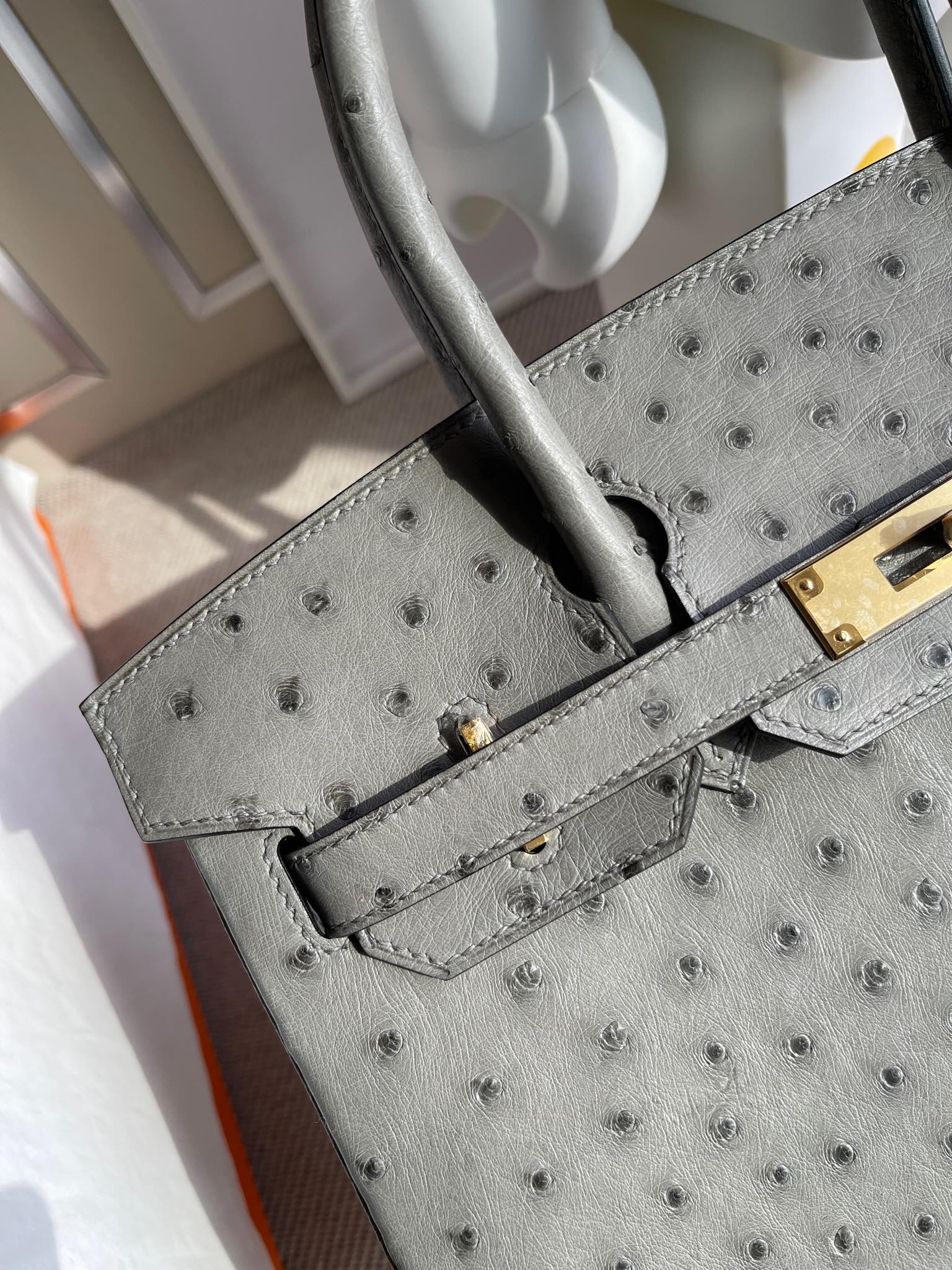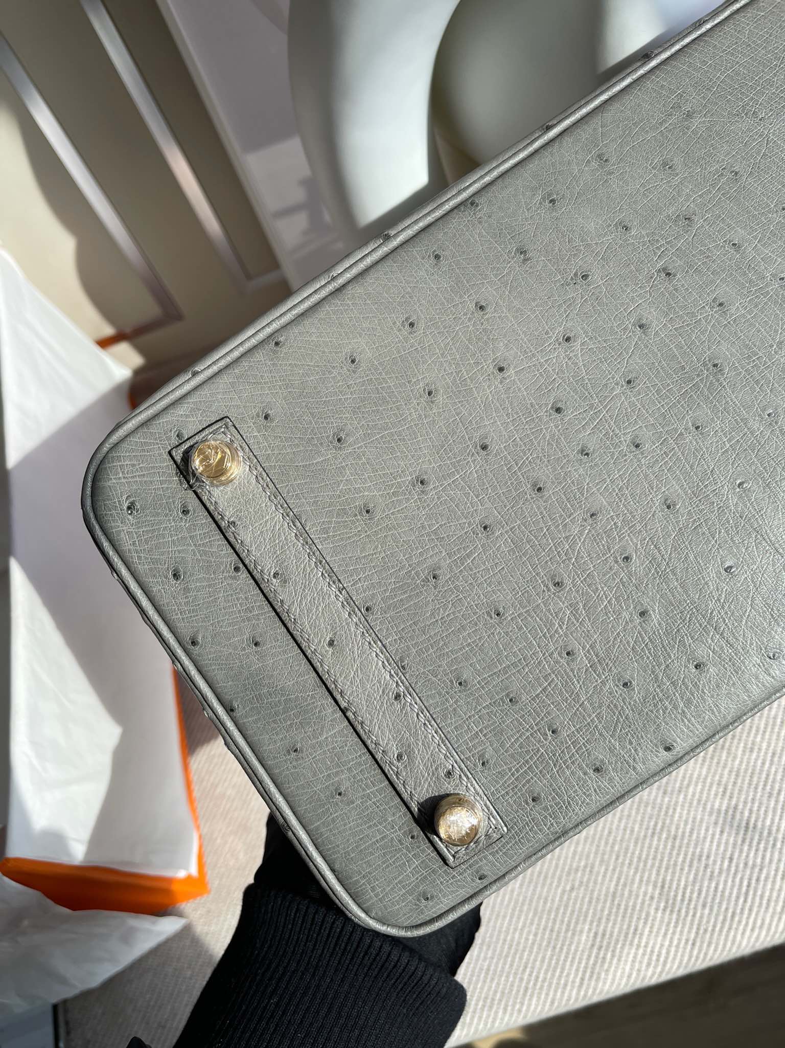 Birkin Ostrich kk Mousse gray Gold Hardware 30cm Full Handmade