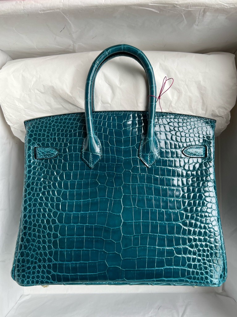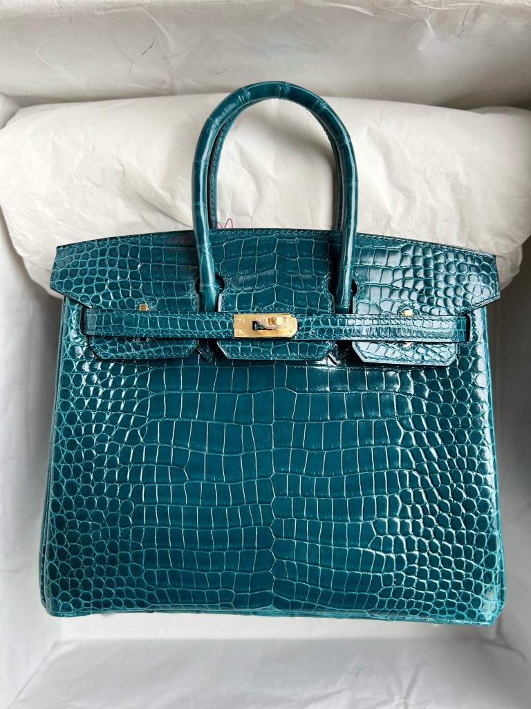 Birkin porosus shiny W0 Vert Bosphore Gold Hardware 25cm Full Handmade