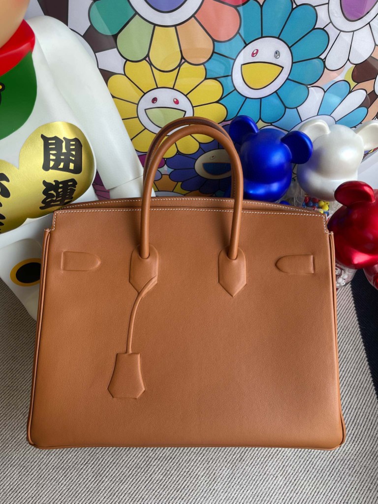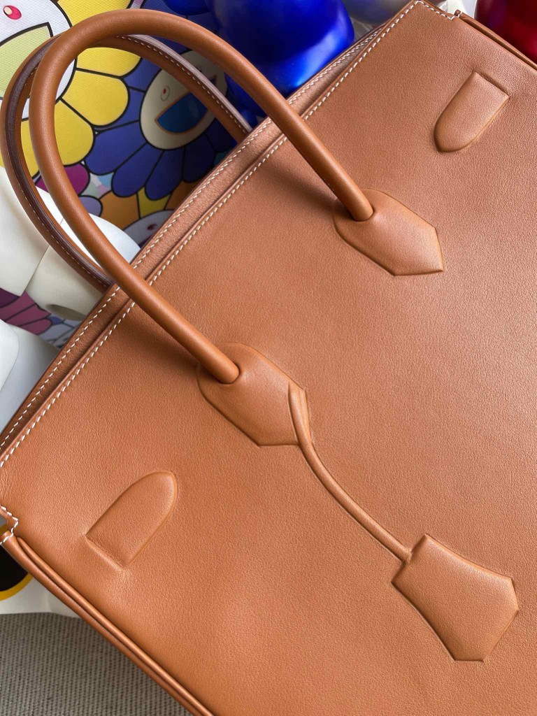 Birkin Shadow 35cm Golden brown Silver Hardware Full Handmade