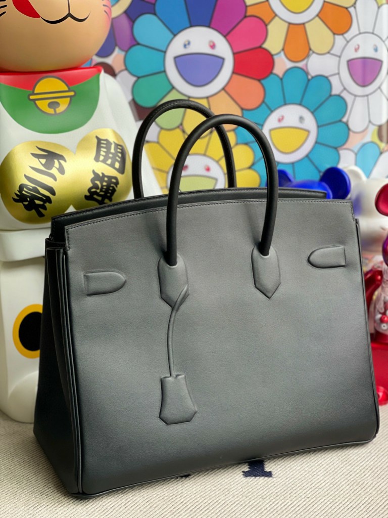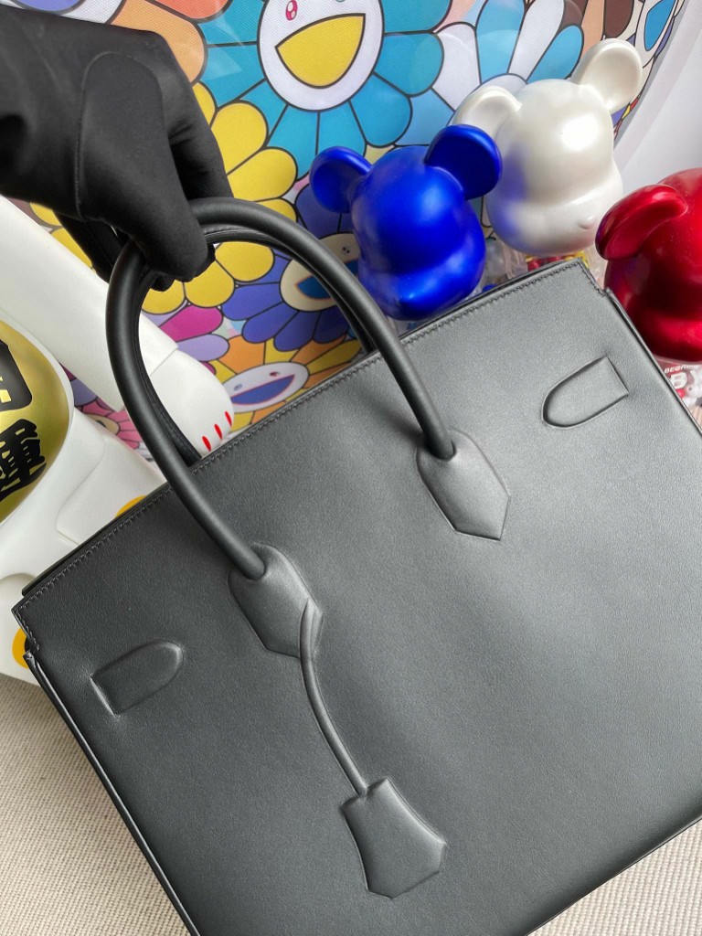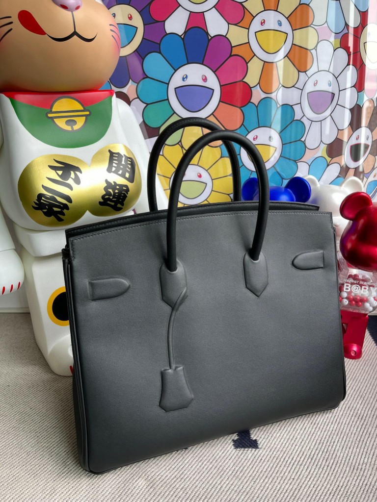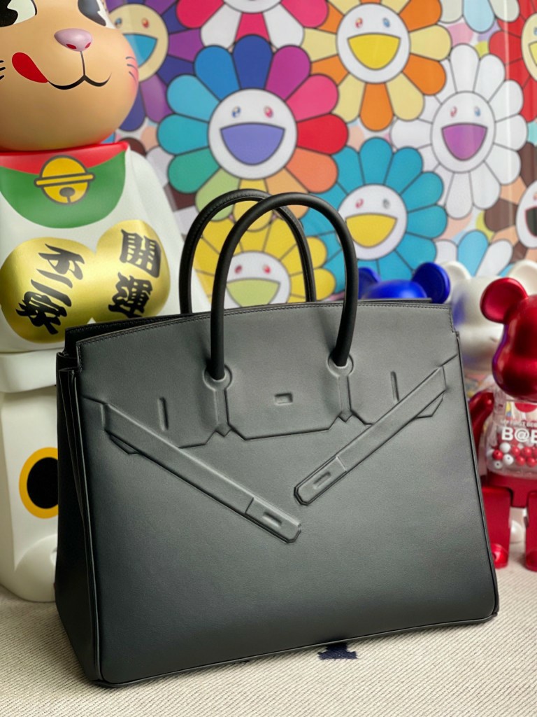 Birkin Shadow 35cm Noir black Silver Hardware Full Handmade