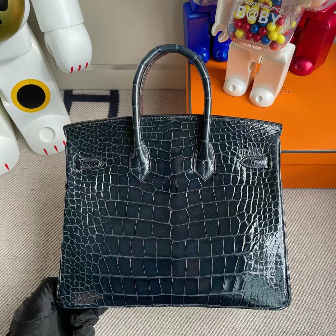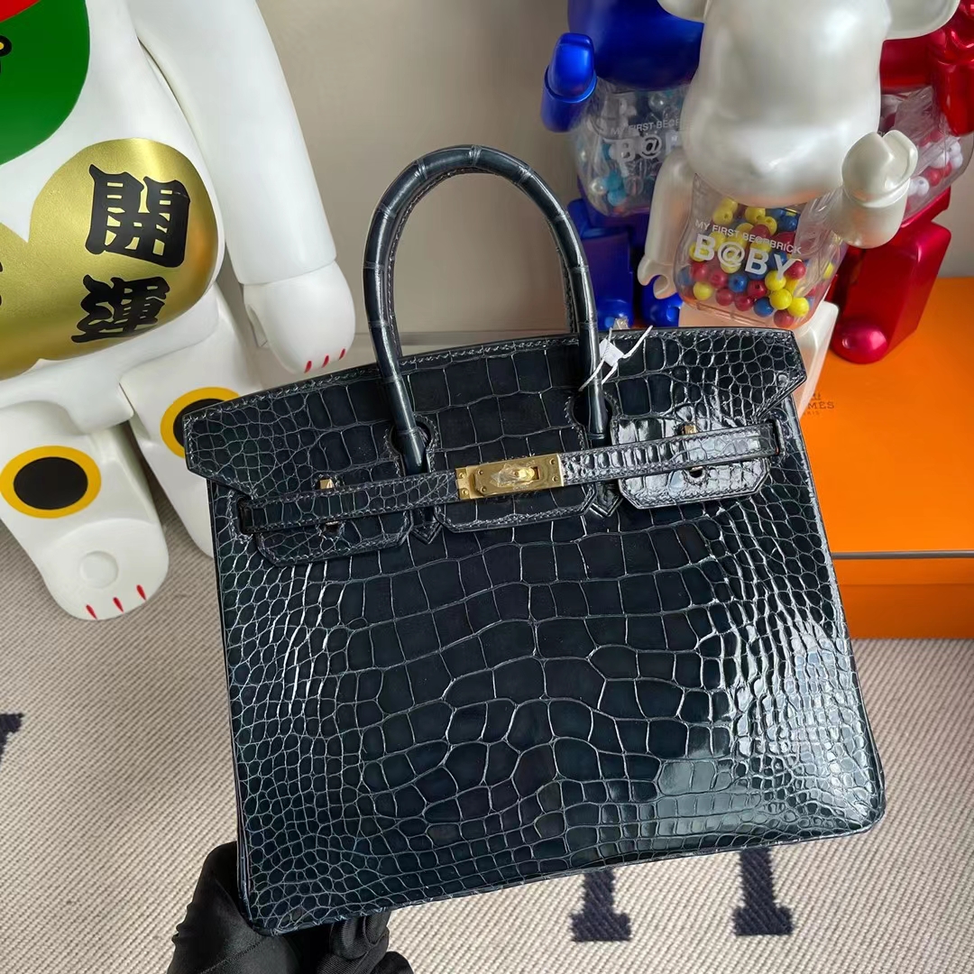 Birkin shiny alligator crocodile Ck76 Deep blue Gold buckle 25cm
