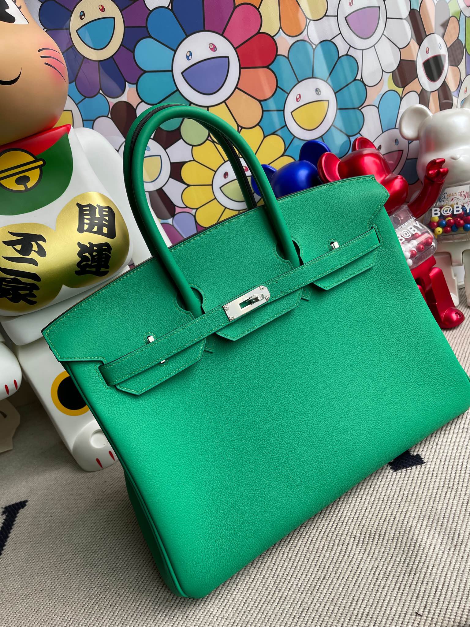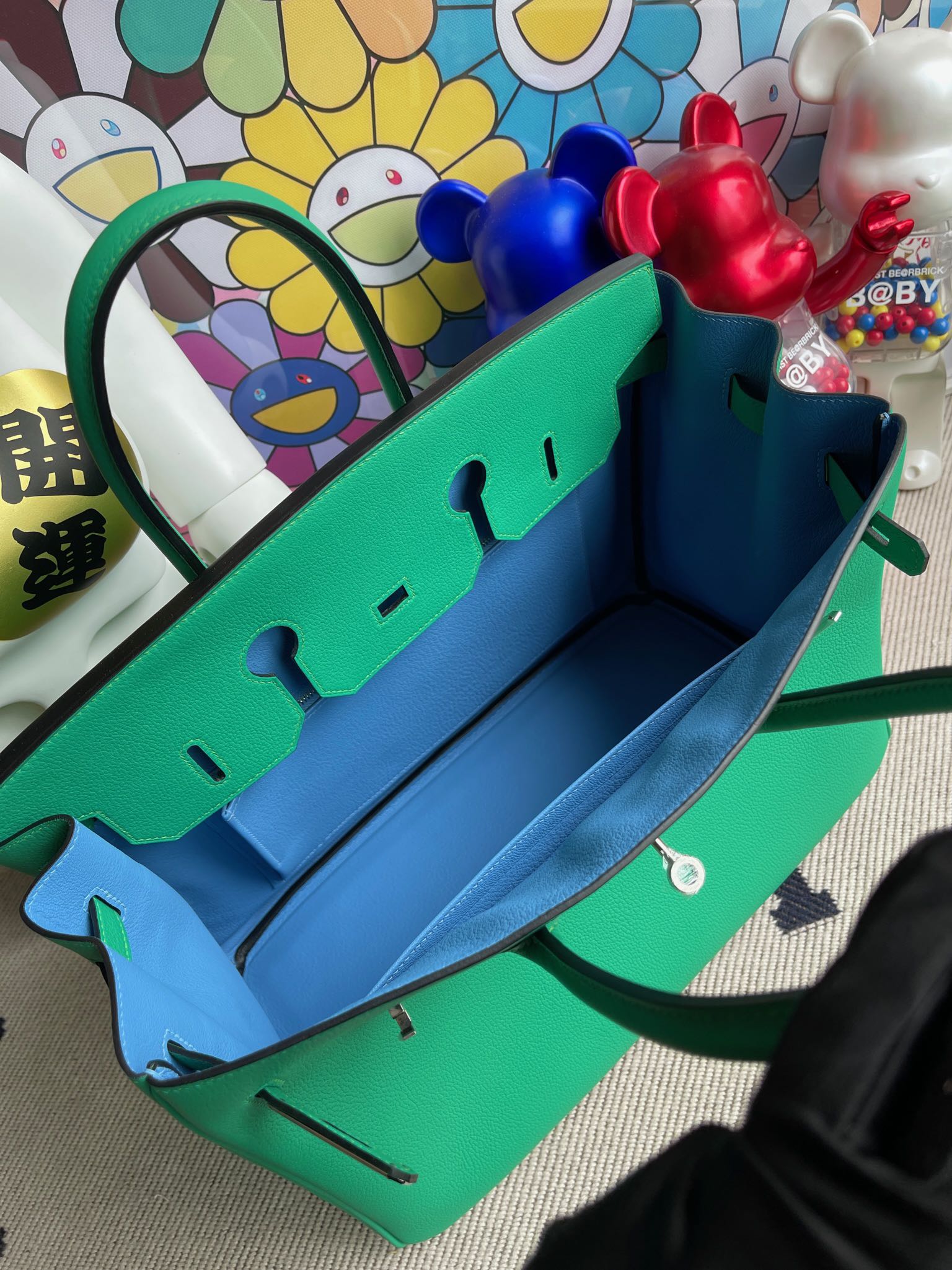 Birkin TN U4 Velvet green & Sky blue Silver buckle 25cm