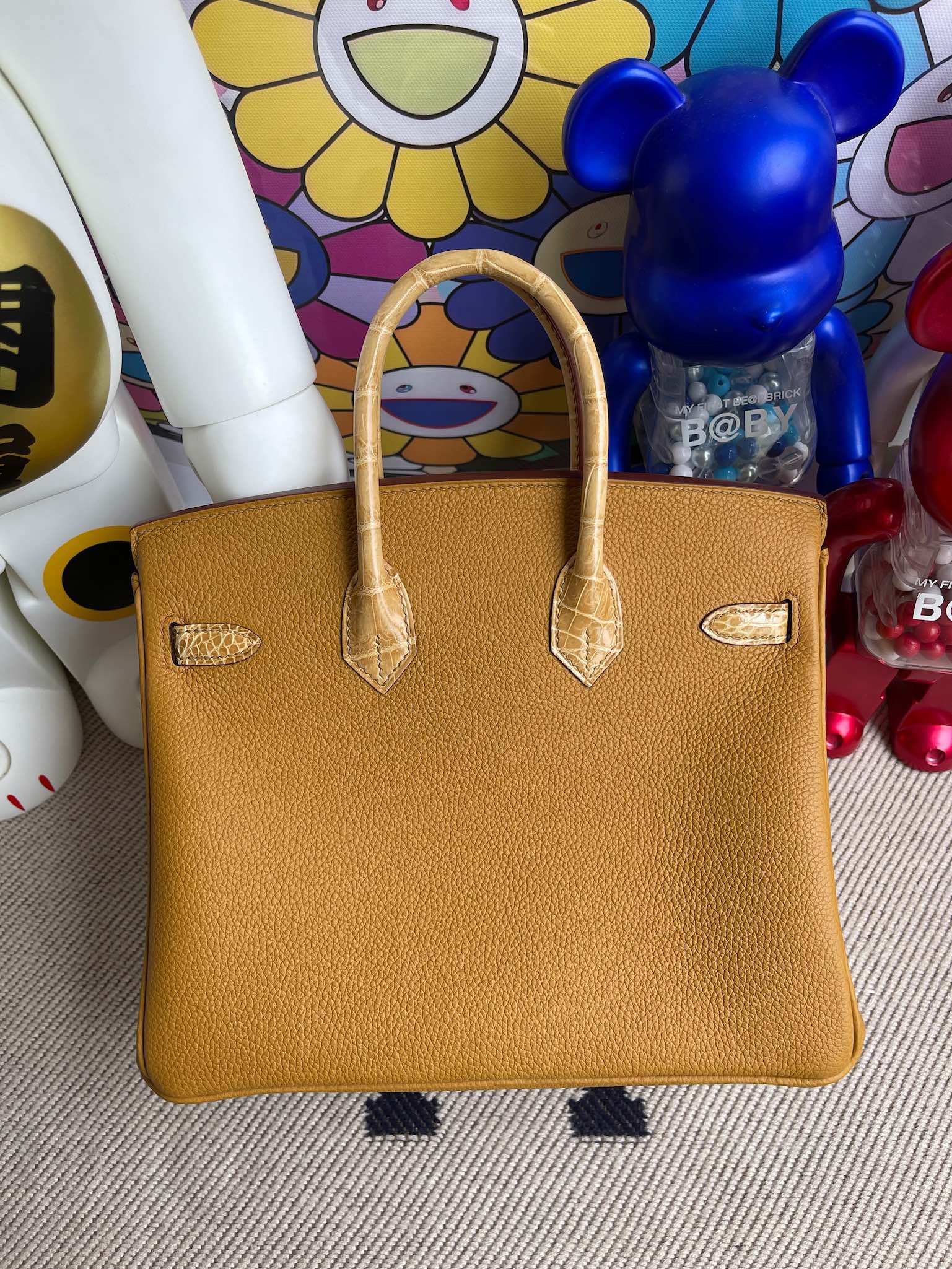 Birkin Touch 25cm shiny crocodile Sesame yellow & apricot Gold Hardware Full Handmade