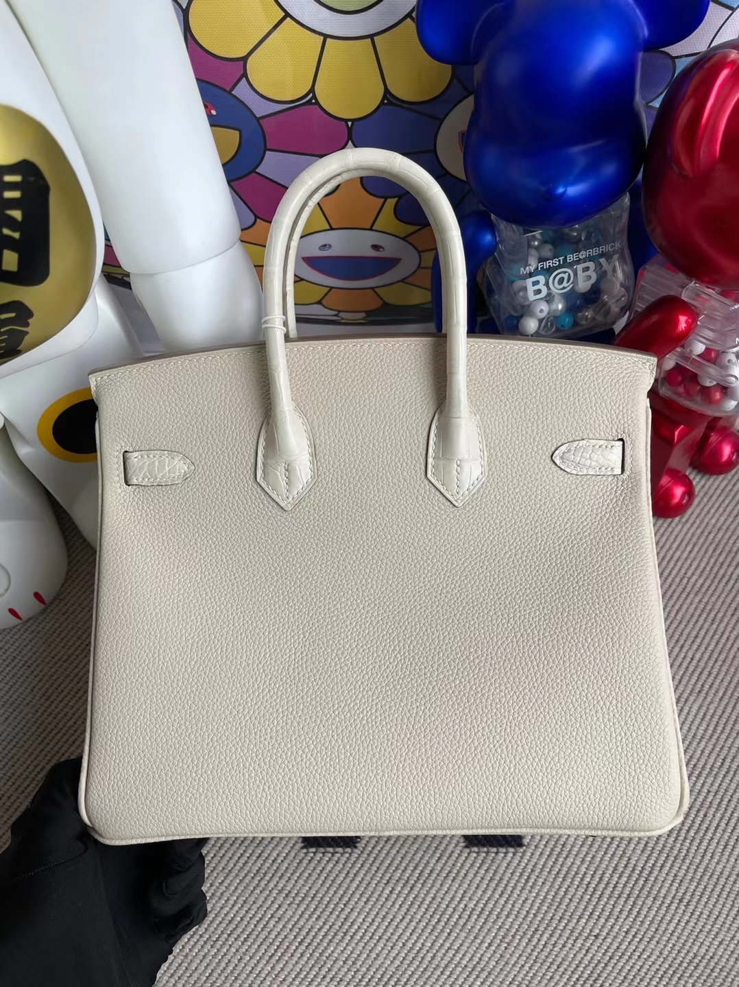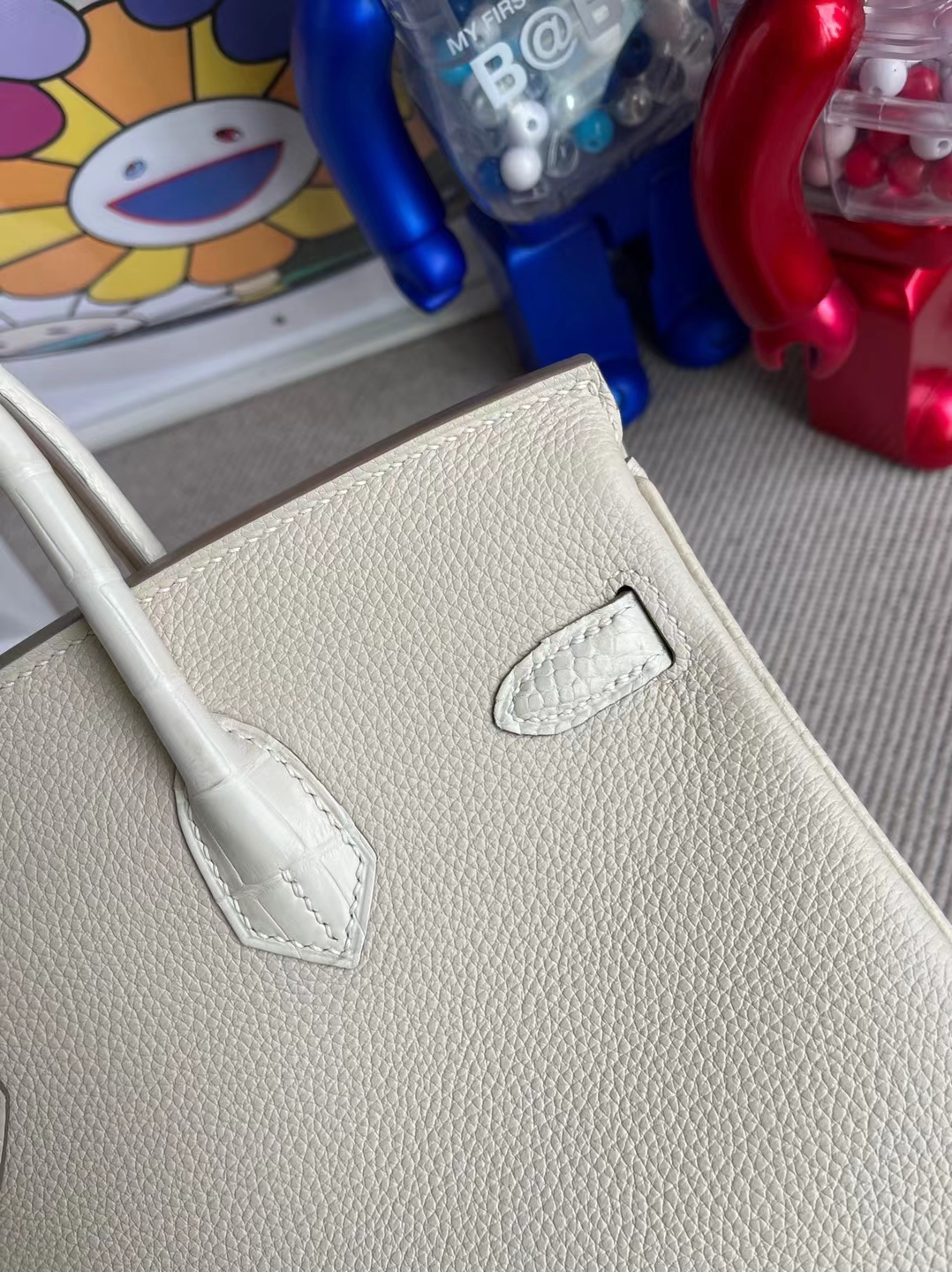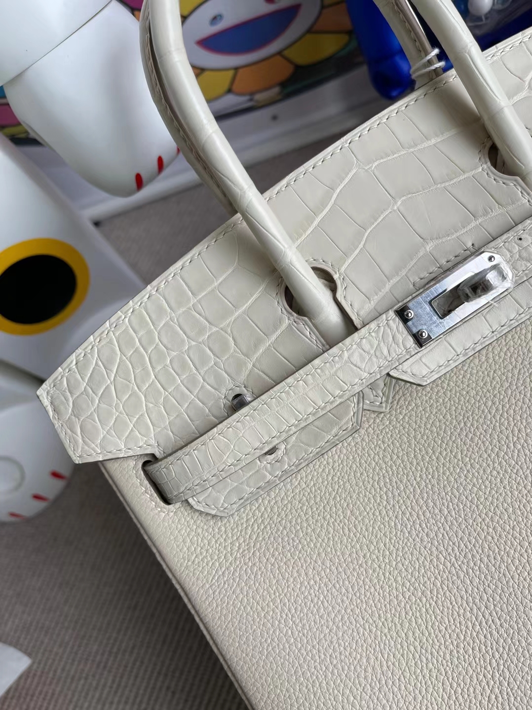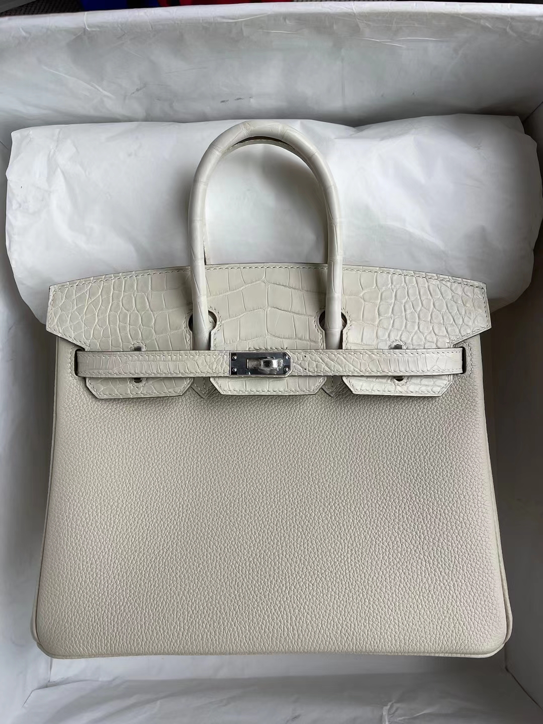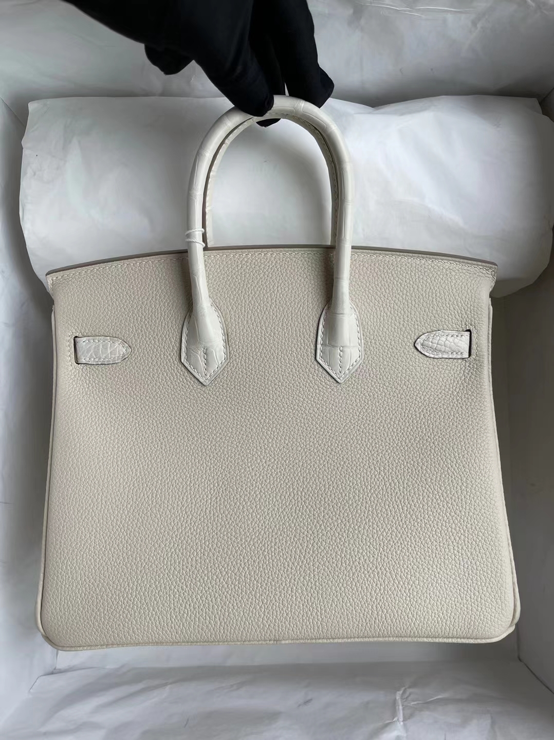 Birkin Touch Alligator Matte Ck10 Craie & 8L creamy white Silver Hardware 25cm Full Handmade