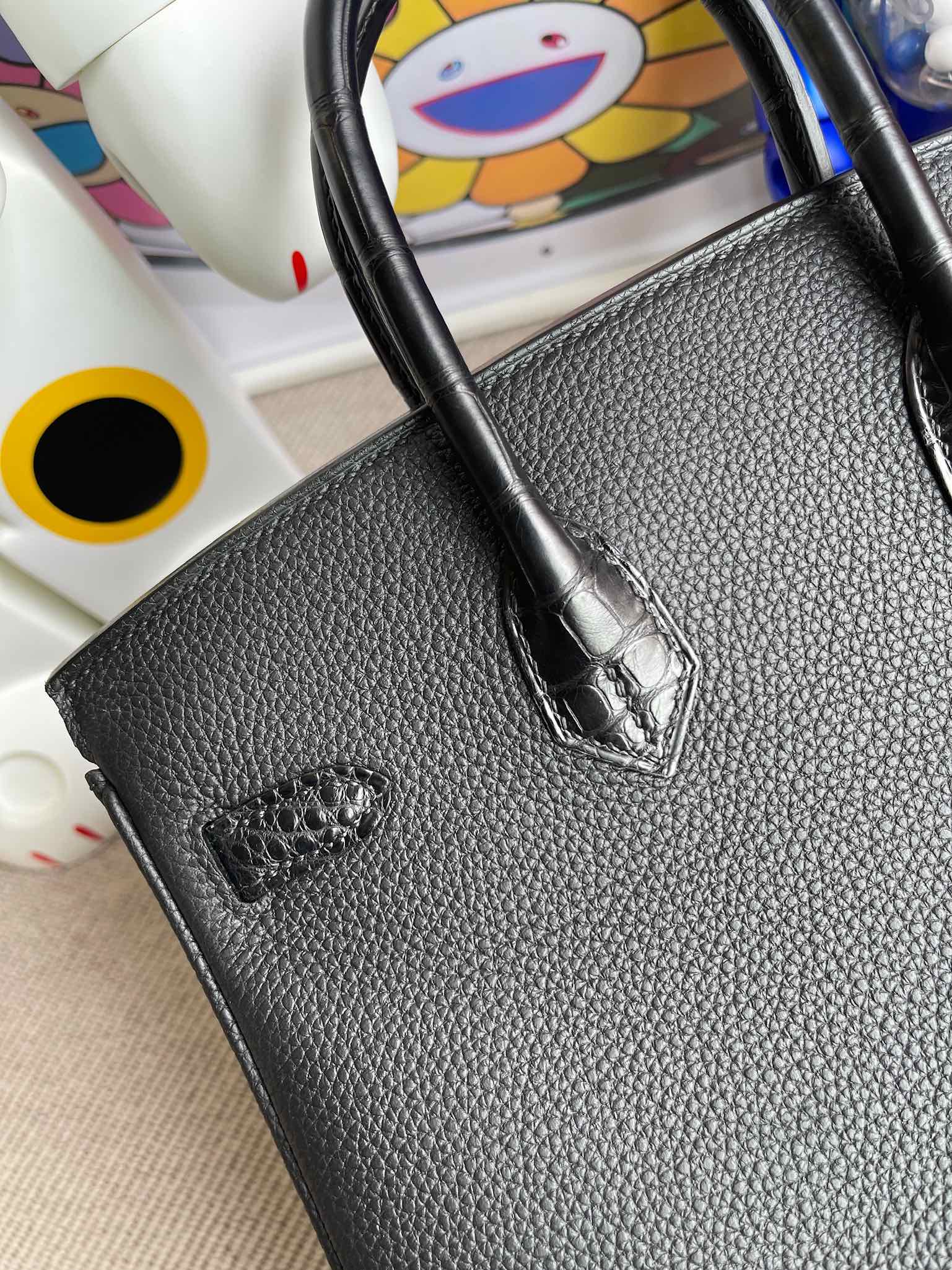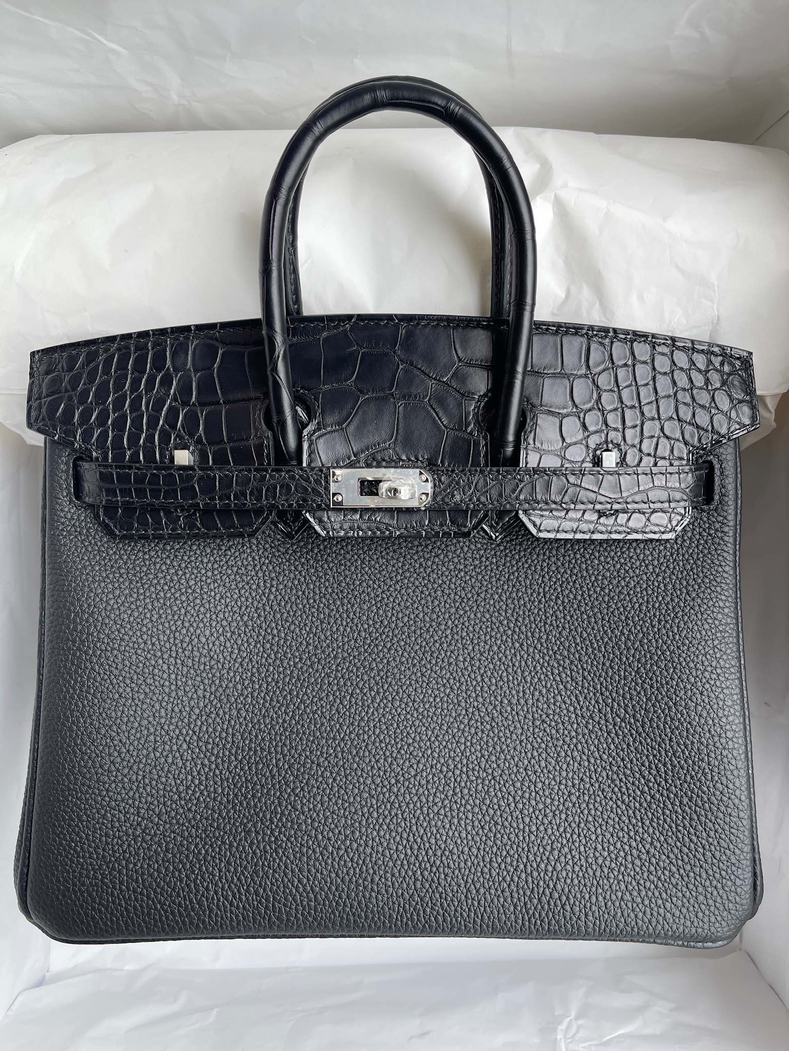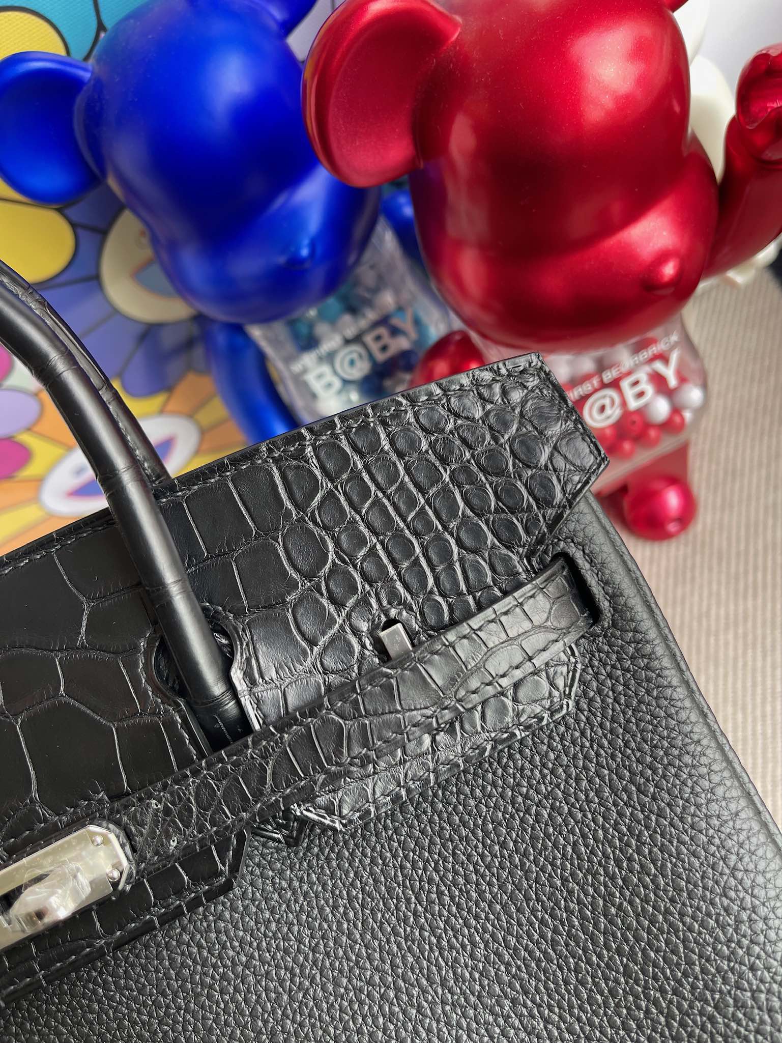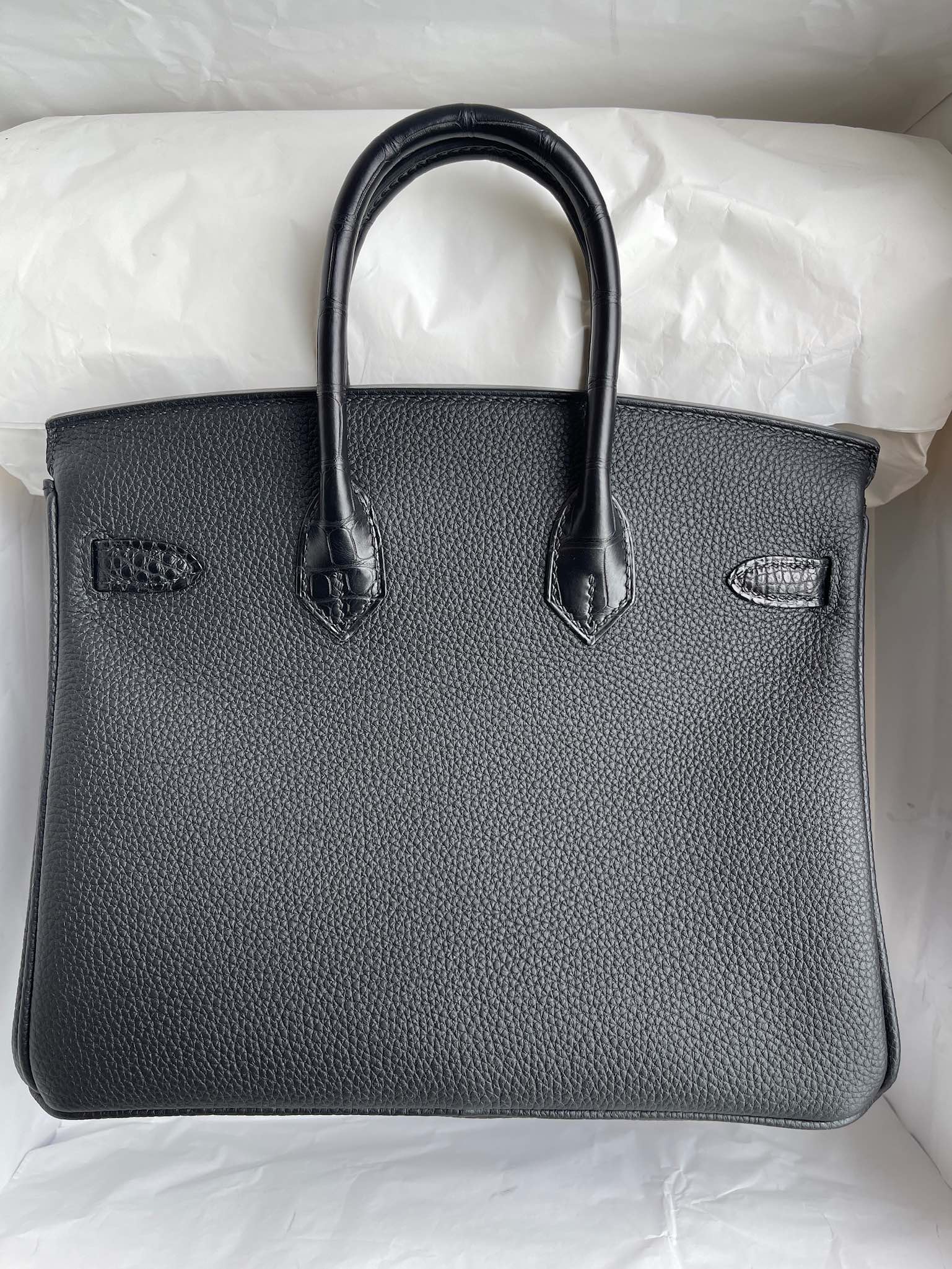 Birkin Touch ck89 Black Noir matte alligator crocodile Silver buckle 25cm