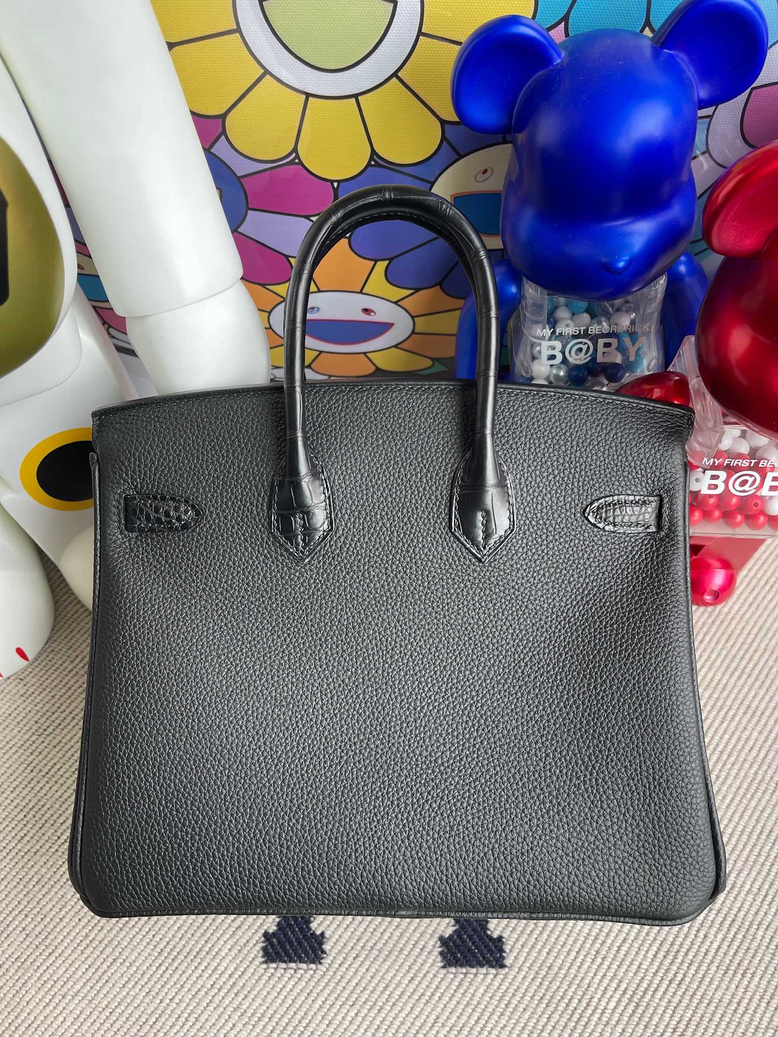 Uncle Bench Hermes Birkin Touch ck89 Black Noir matte alligator crocodile Silver buckle 25cm