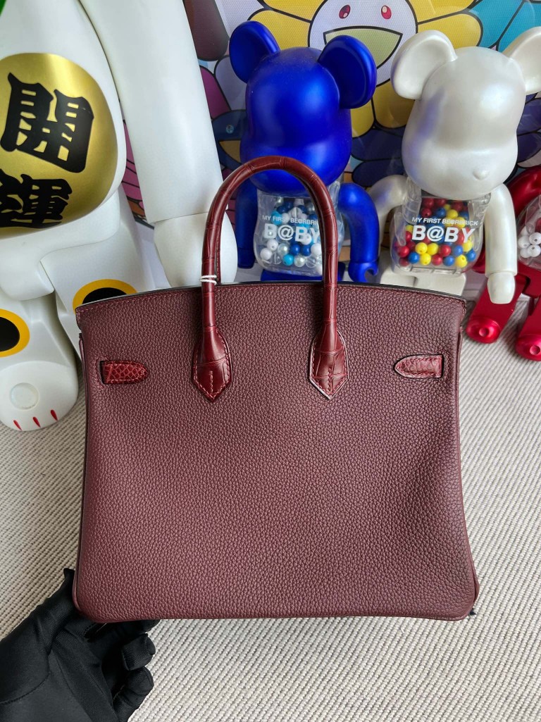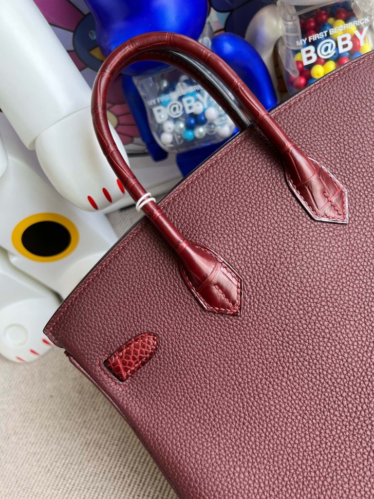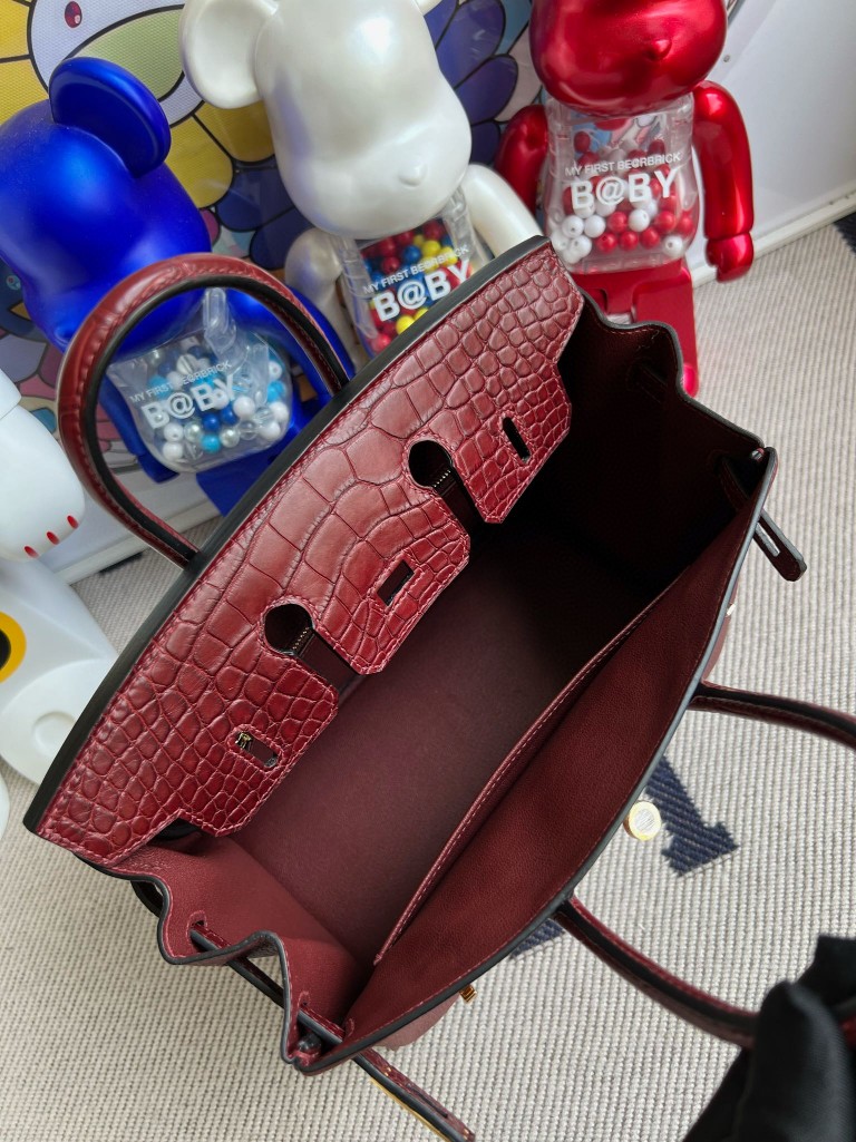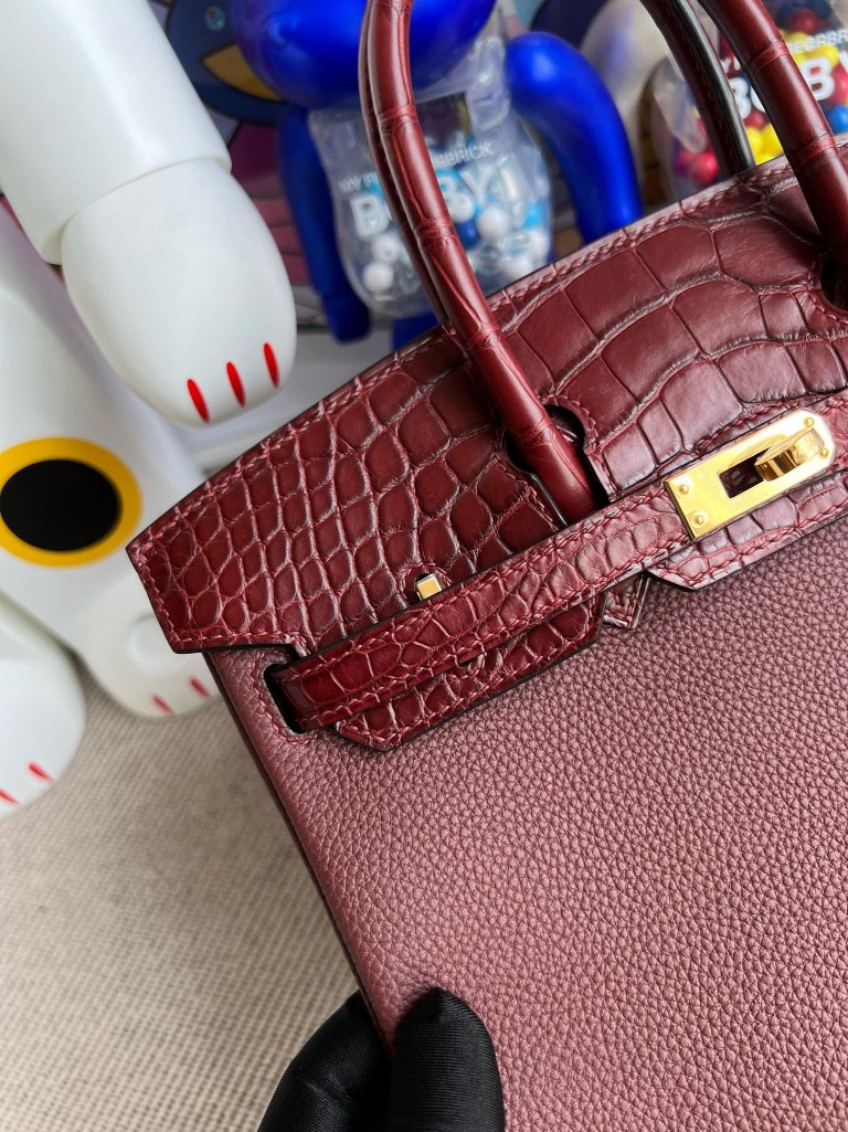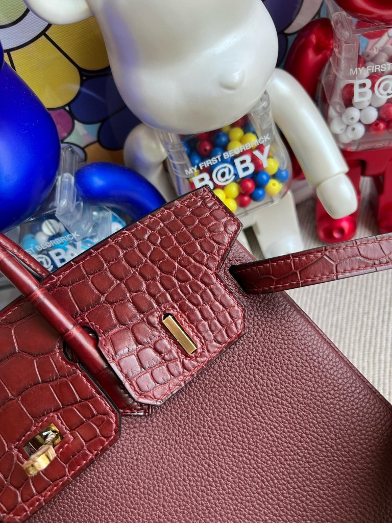 Birkin Touch Dark Red Matte crocodile Gold Hardware 25cm Full Handmade
