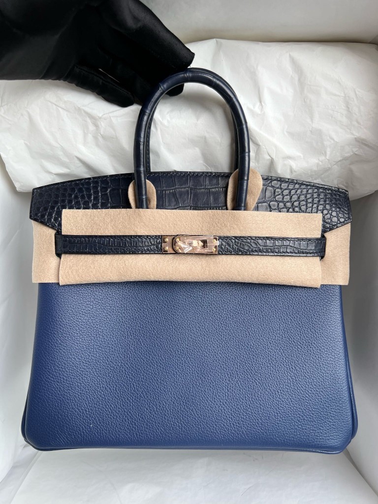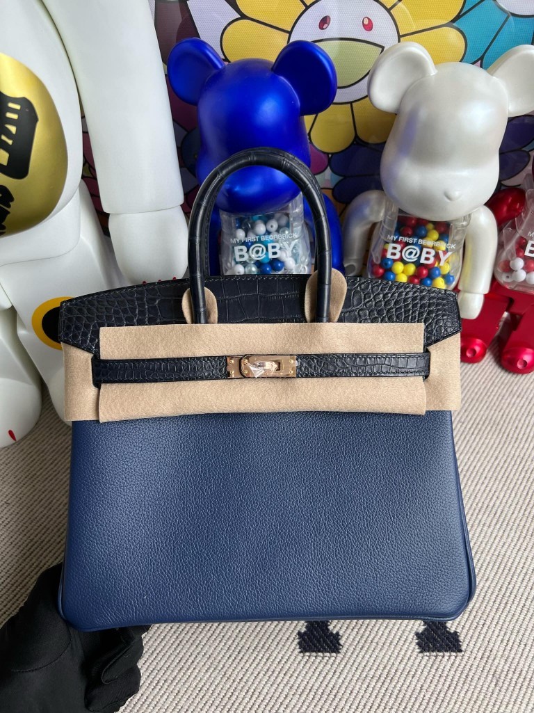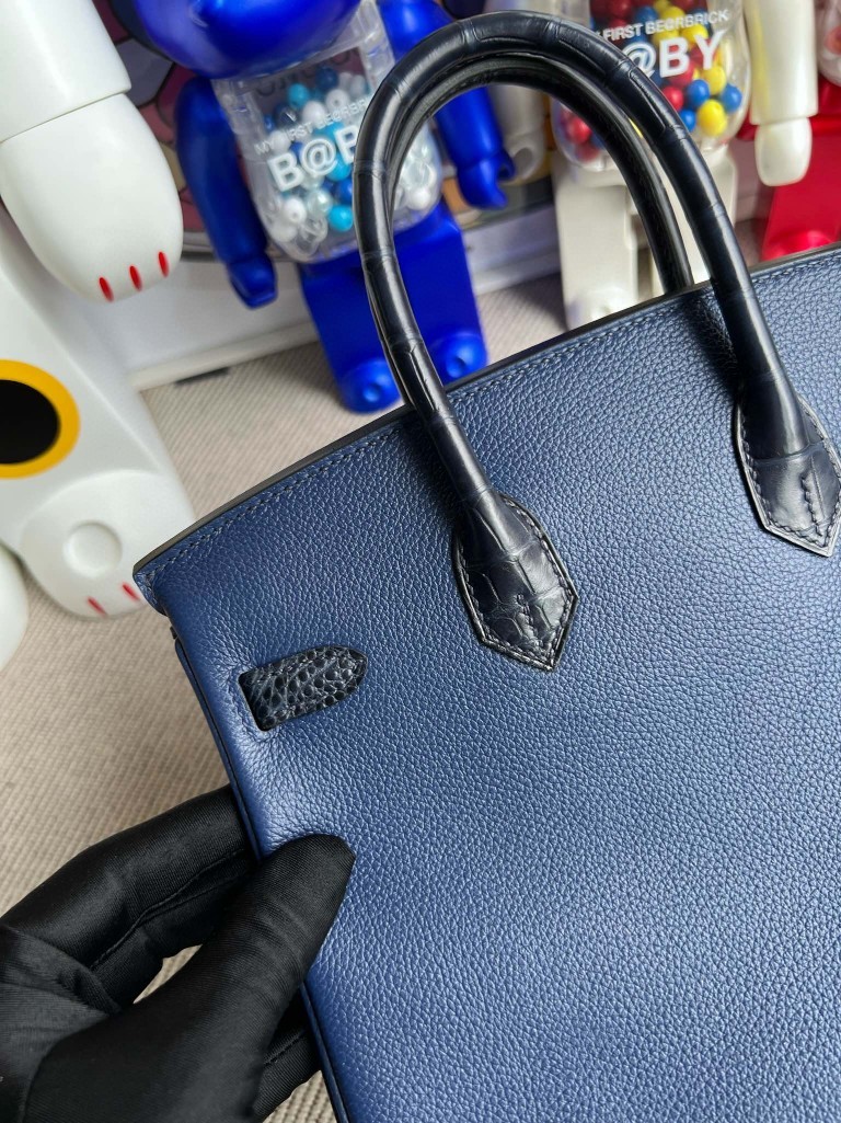 Uncle Bench Hermes Birkin Touch Midnight blue & Deep Blue Togo & Alligator Gold Hardware 25cm Full Handmade