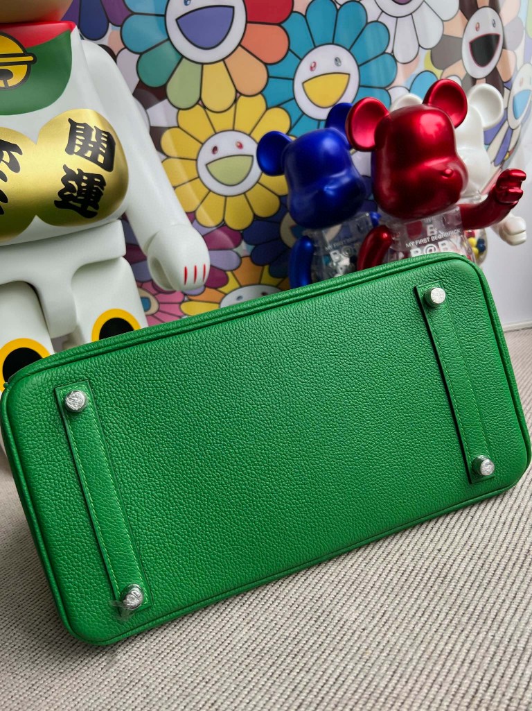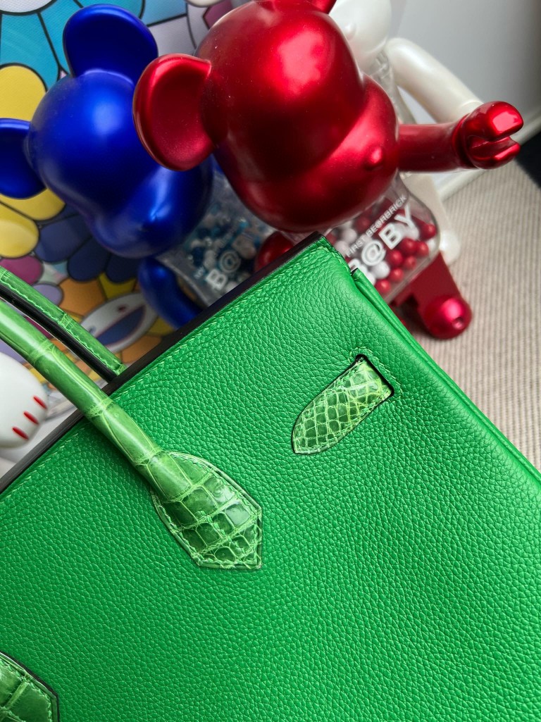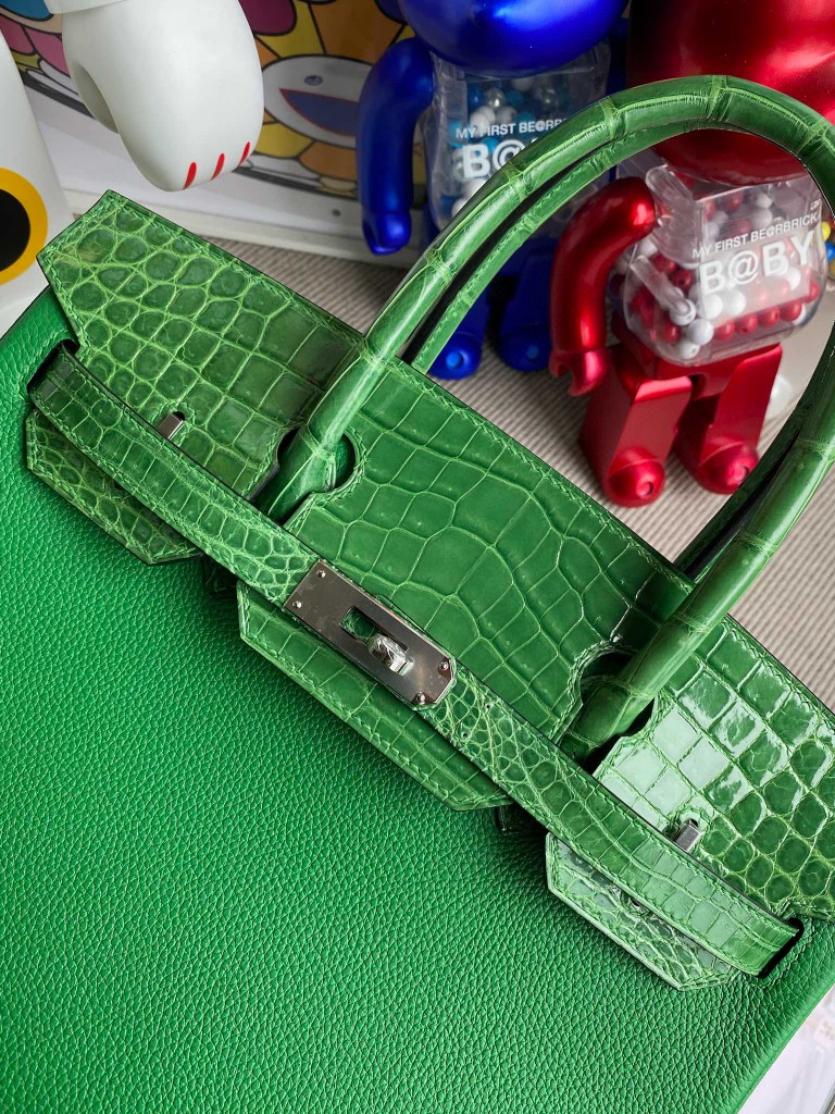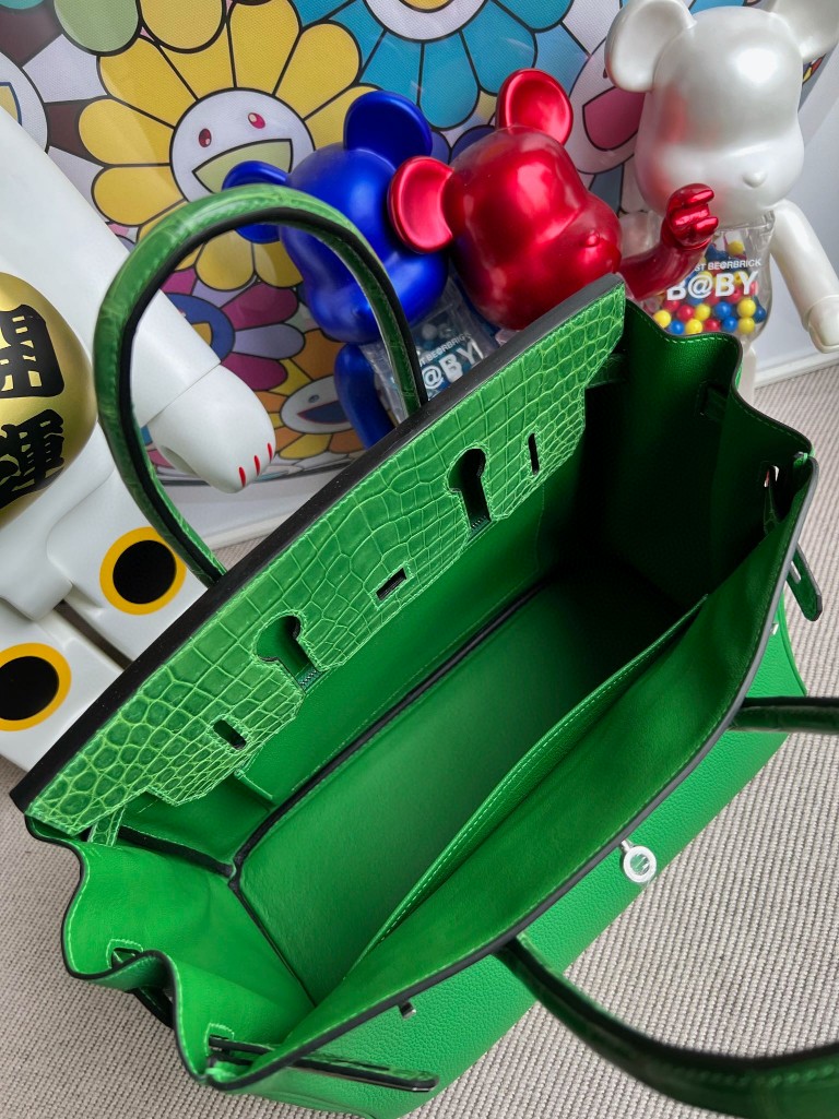 Birkin Touch shiny crocodile Bamboo green Silver Hardware 30cm Full Handmade
