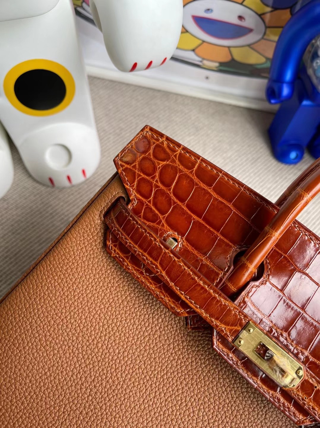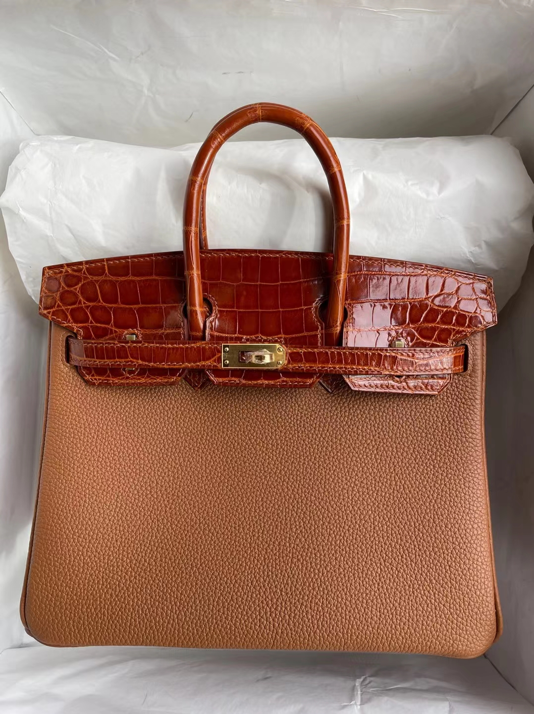 Birkin Touch Togo & shiny Niloticus Gold & Miel Gold Hardware 25cm Full Handmade