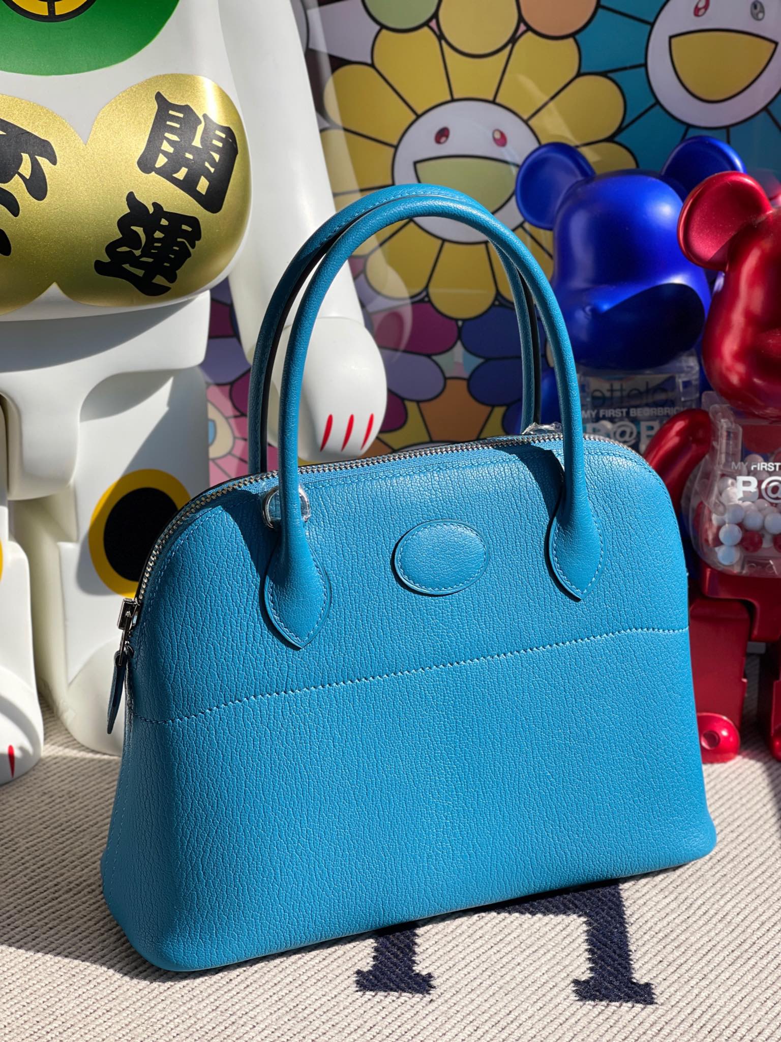 Bolide Chevre B3 Blue Zanzibar Silver Hardware 27cm Full Handmade