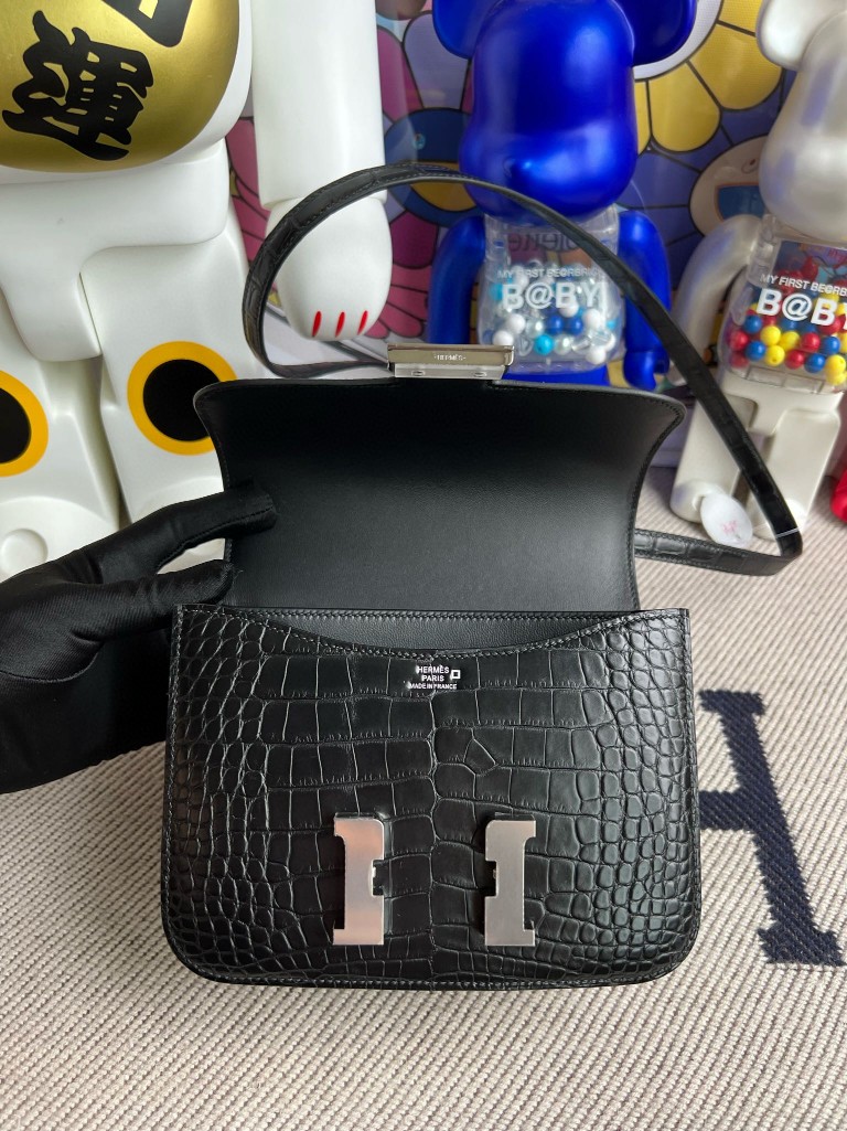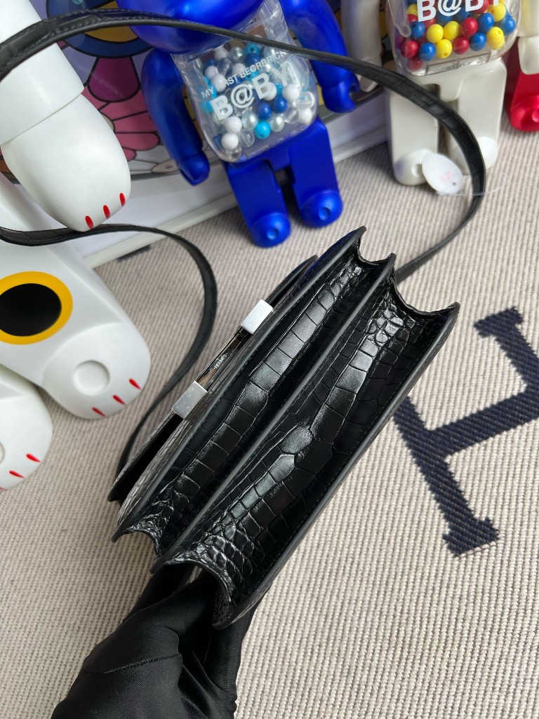 Constance Alligator matt ck89 Noir Silver Hardware 18cm Full Handmade