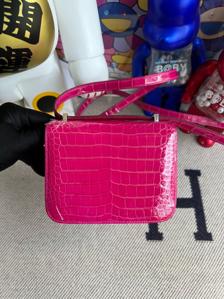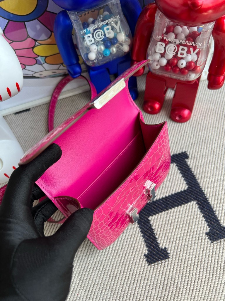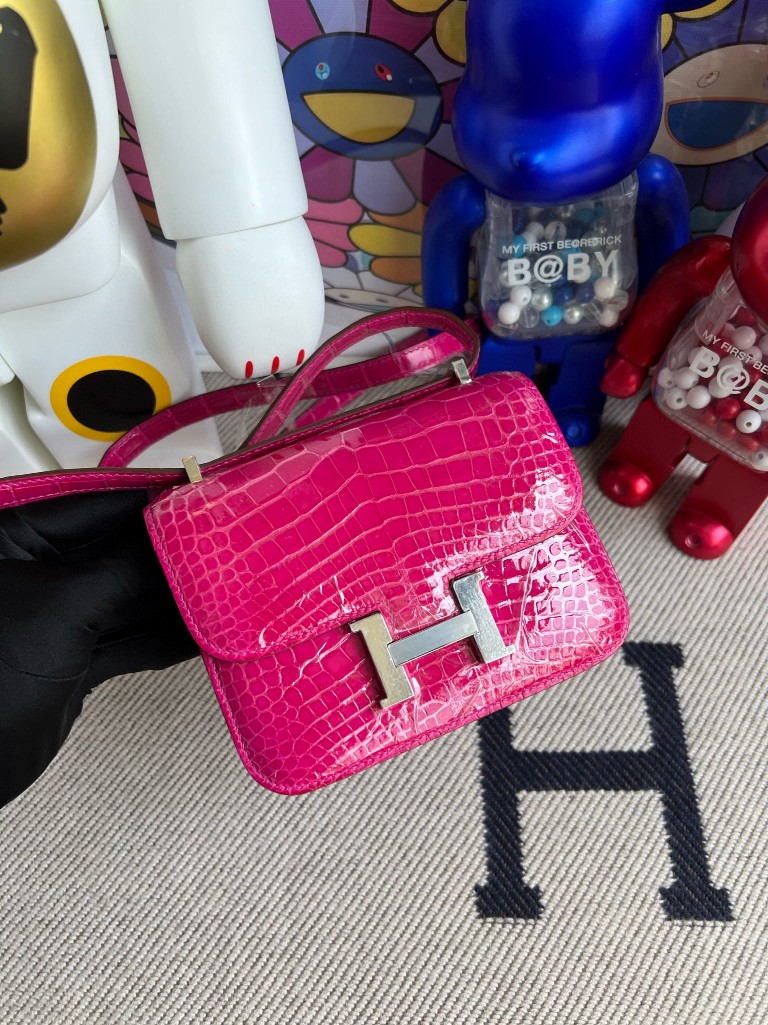 Constance Alligator shiny 5J Rose red Silver Hardware 14cm Full Handmade