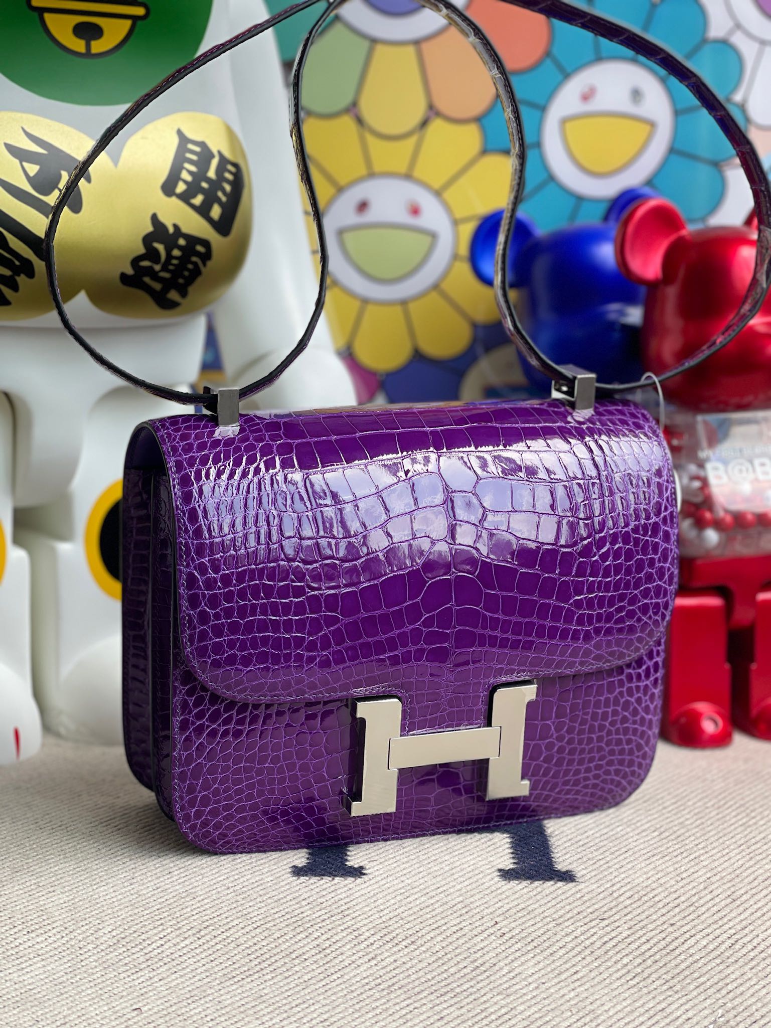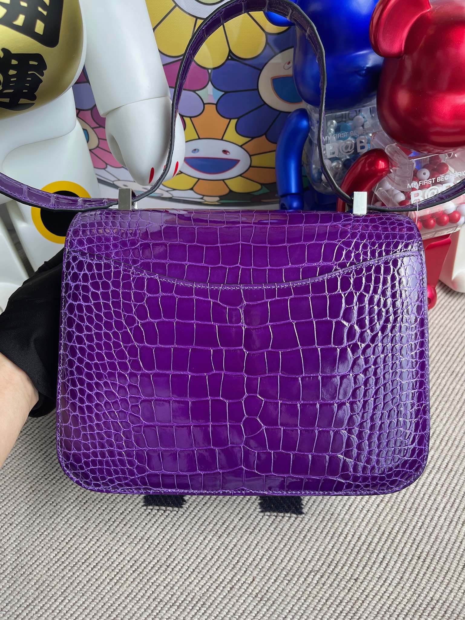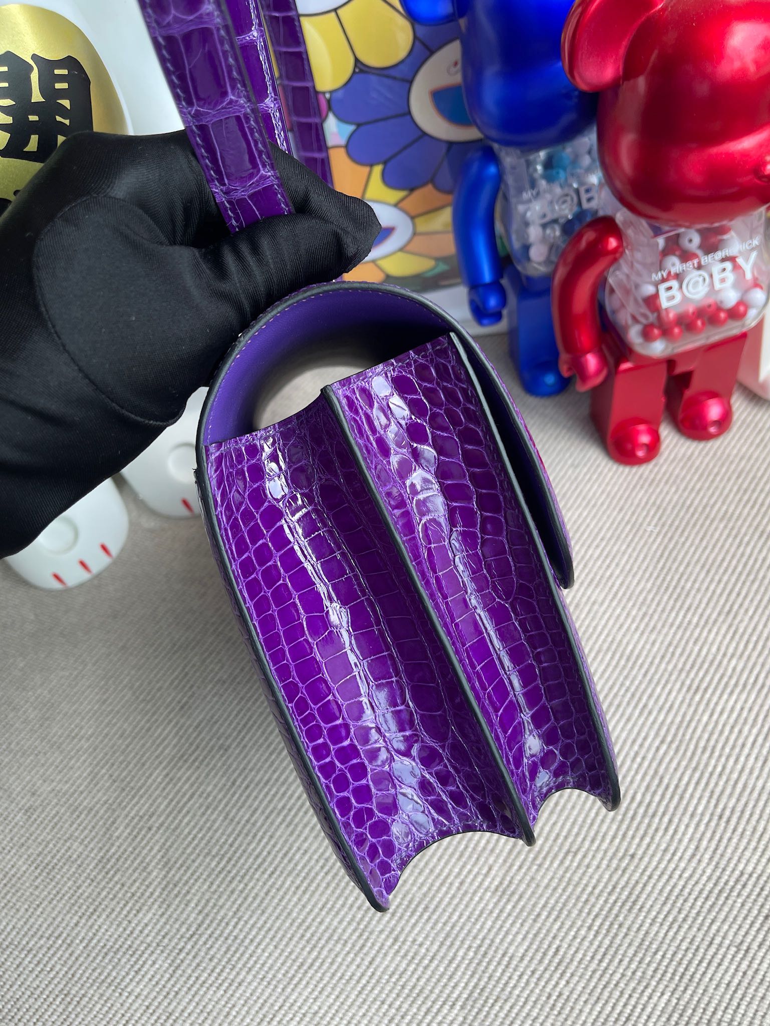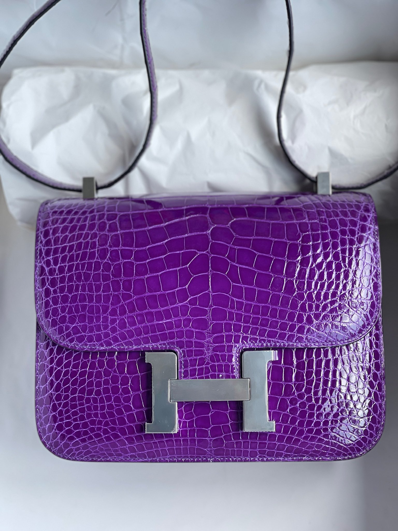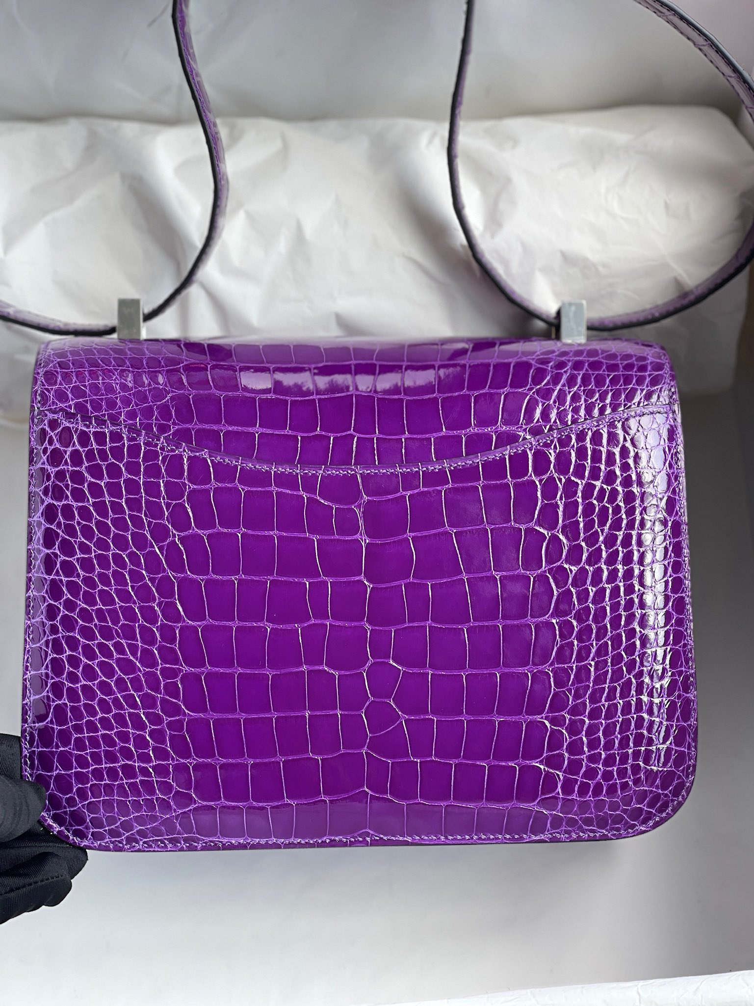 Constance Alligator shiny Dark purple Silver Hardware 24cm Full Handmade