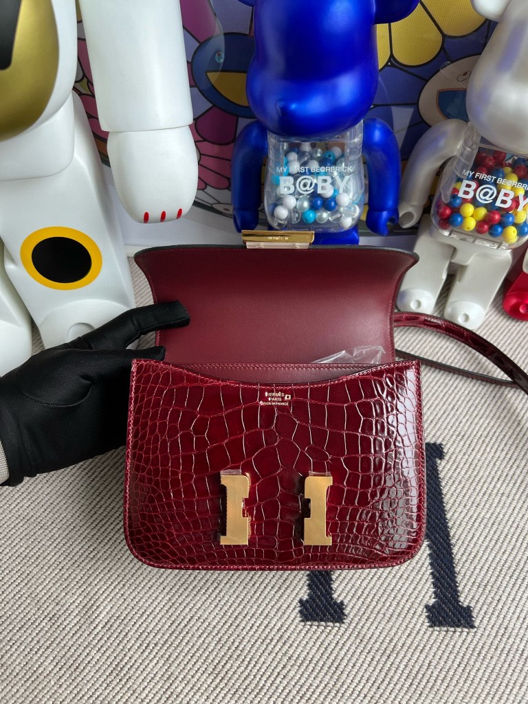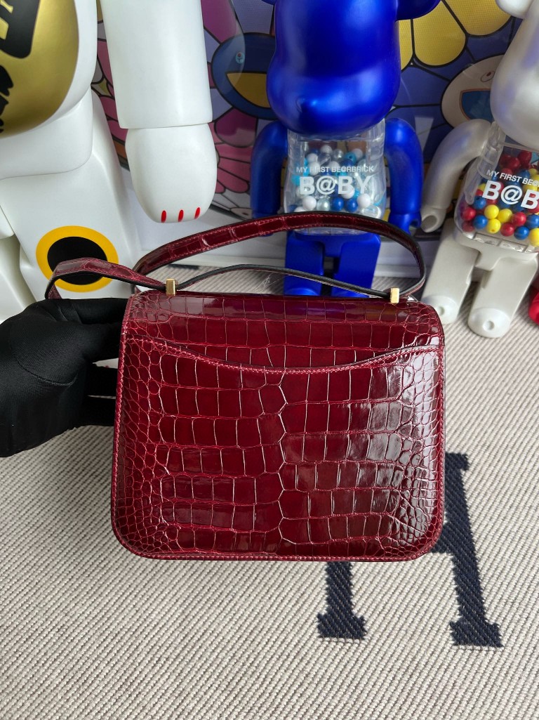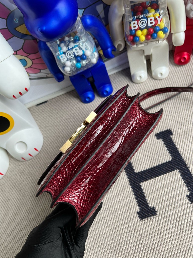 Uncle Bench Hermes Constance Alligator shiny F5 Dark Red Gold Hardware 18cm Full Handmade