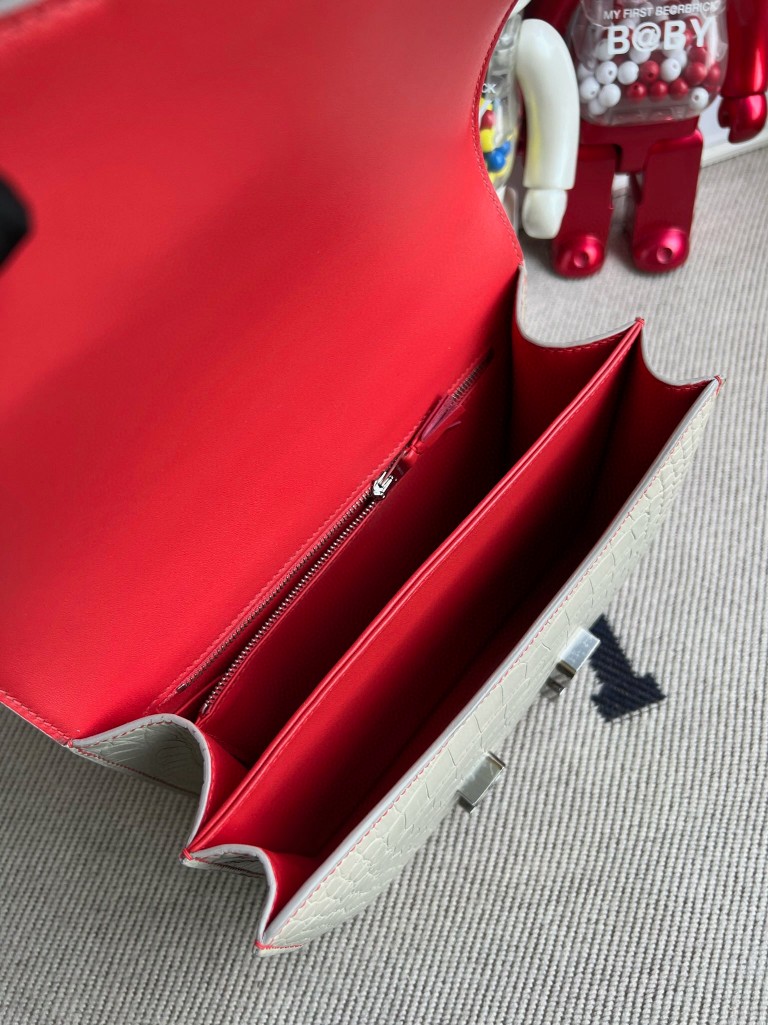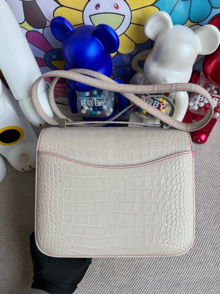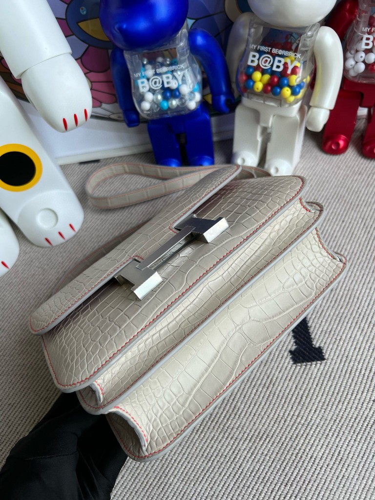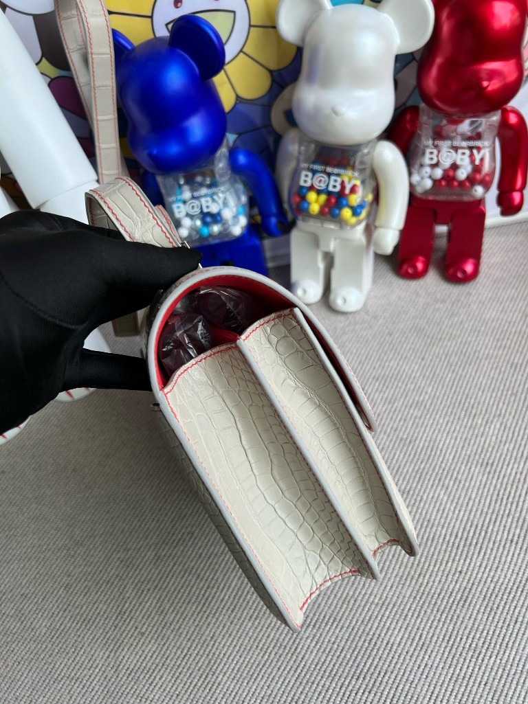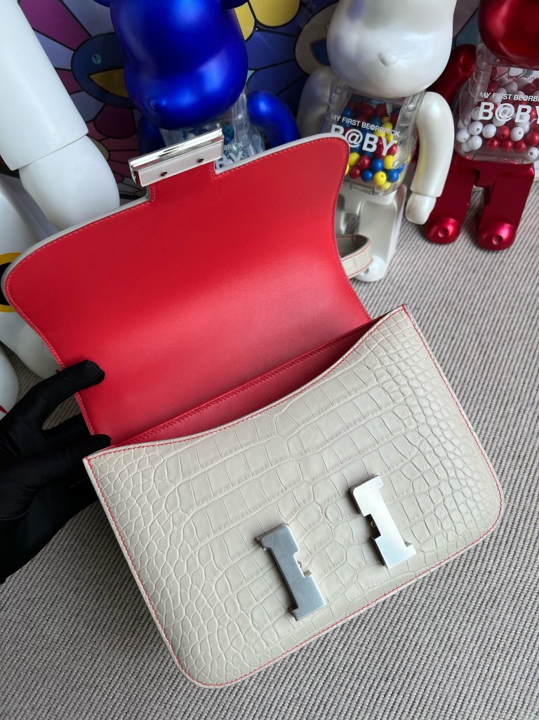 Constance Alligatot matt ck80 Pearl grey & Red Silver Hardware 24cm Full Handmade