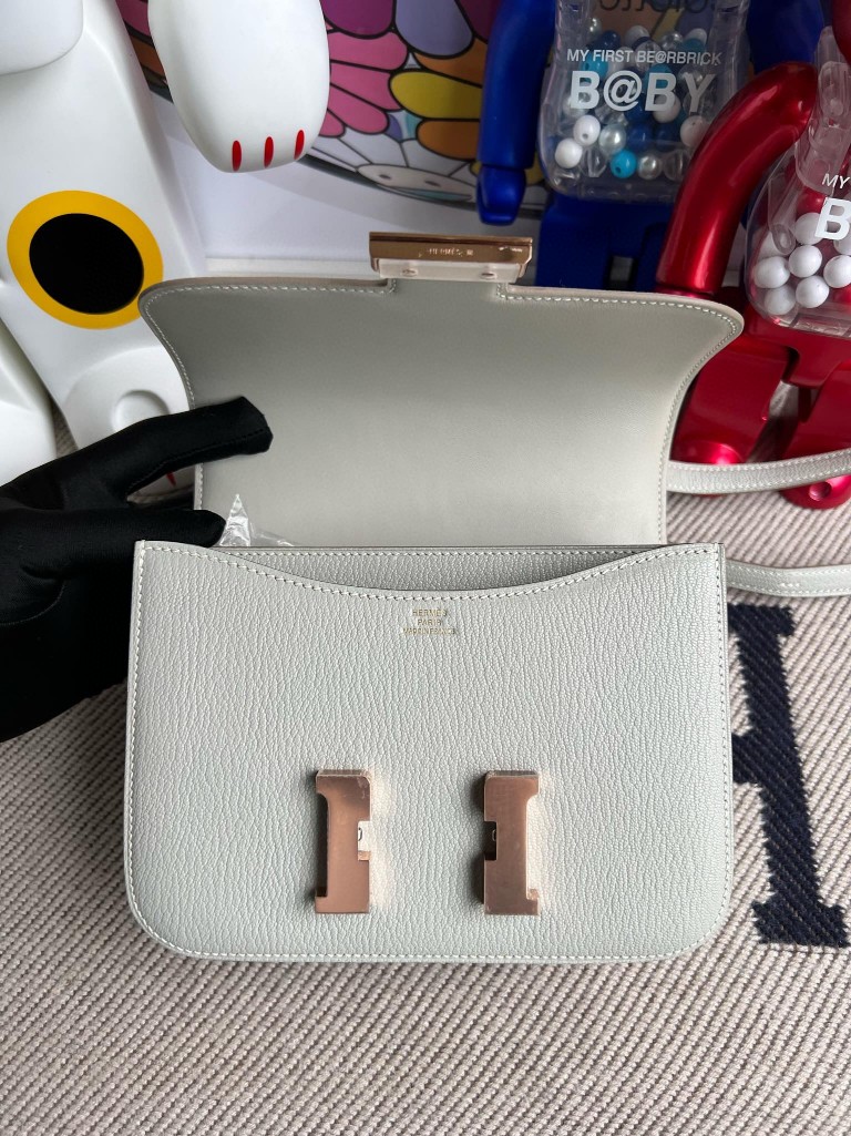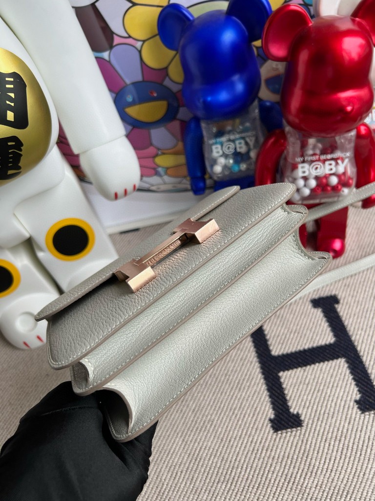 Uncle Bench Hermes Constance Chevre ck80 grey pearl Rose Gold Hardware 18cm Full Handmade
