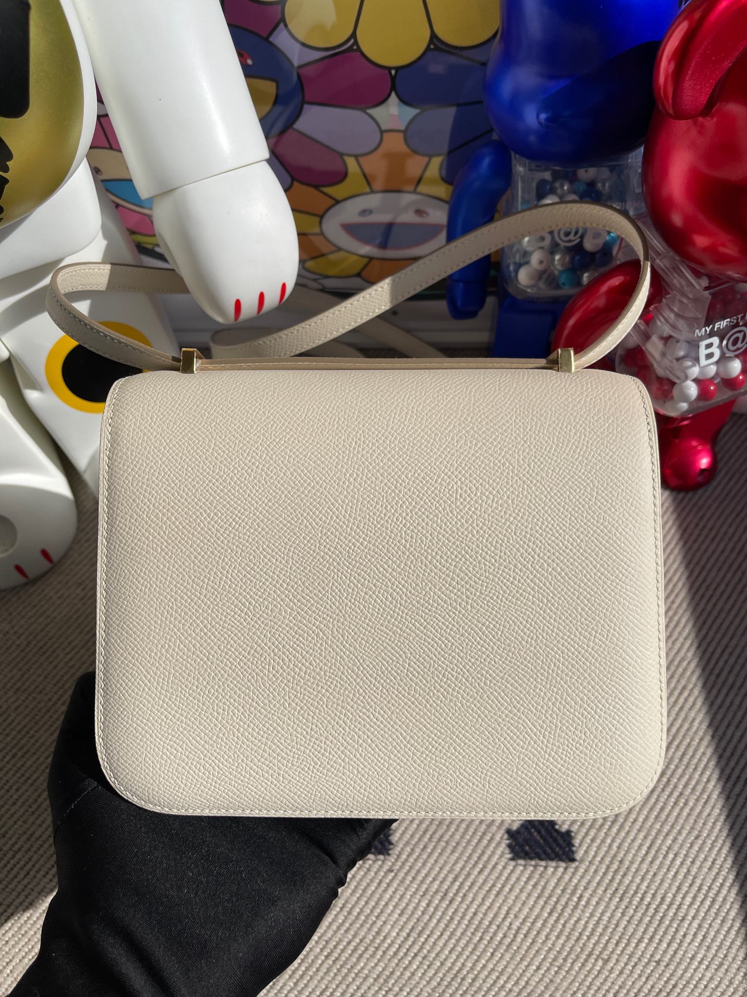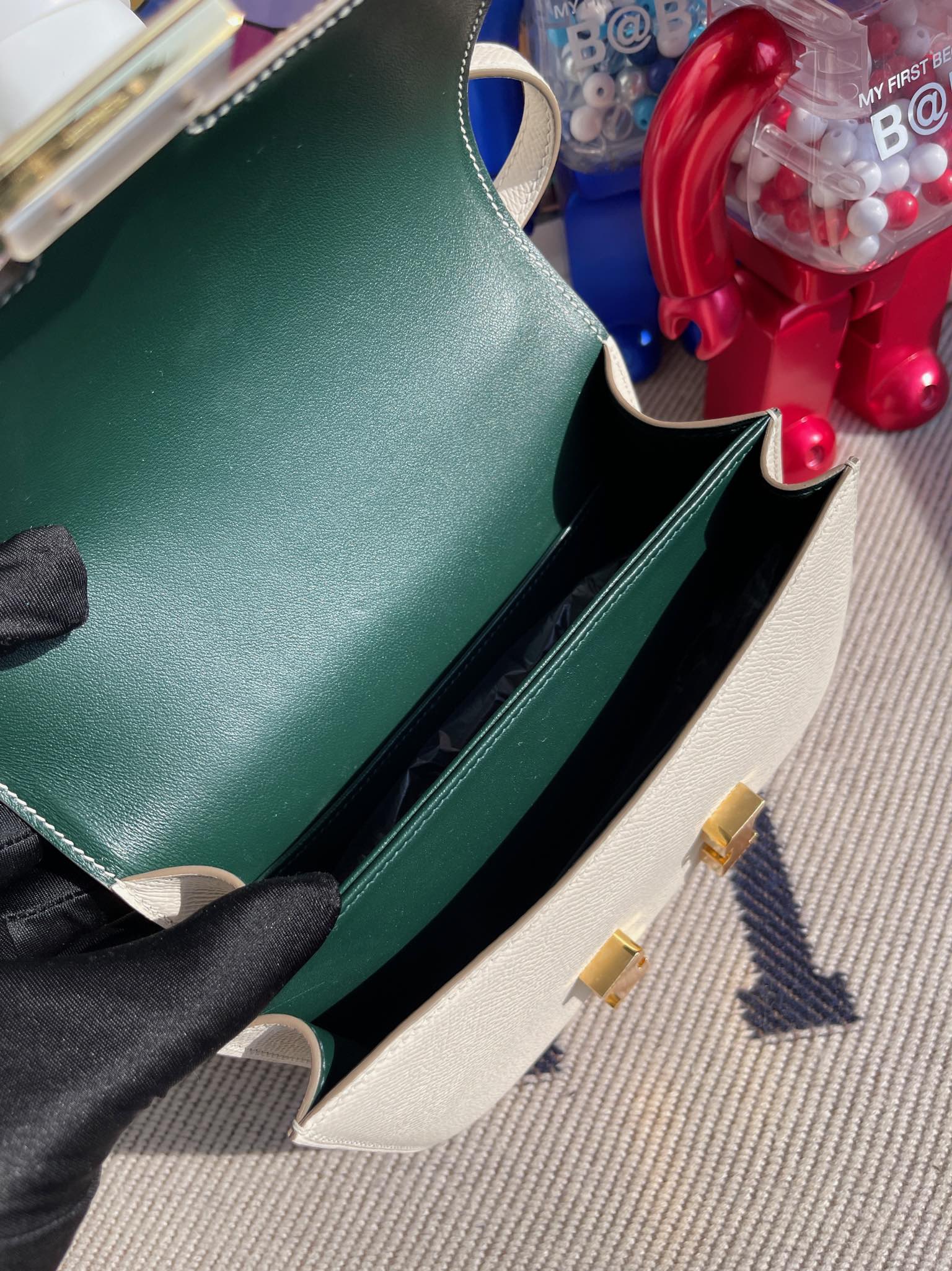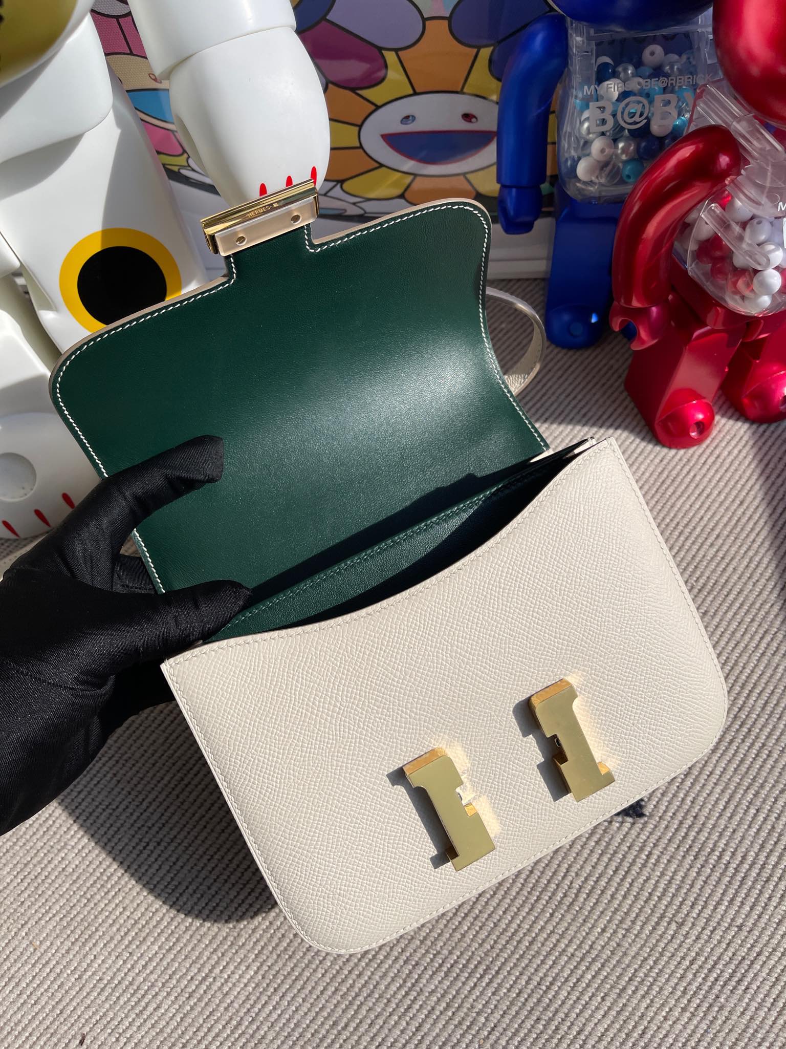 Constance Epsom ck10 Craie & Vert Bosphore Gold Hardware 18cm Full Handmade