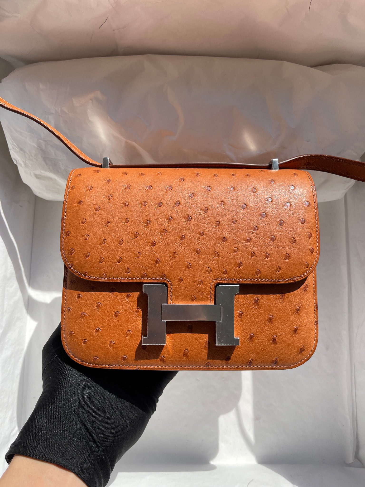 Uncle Bench Hermes Constance Osrtich kk Goldern Silver Hardware 18cm Full Handmade