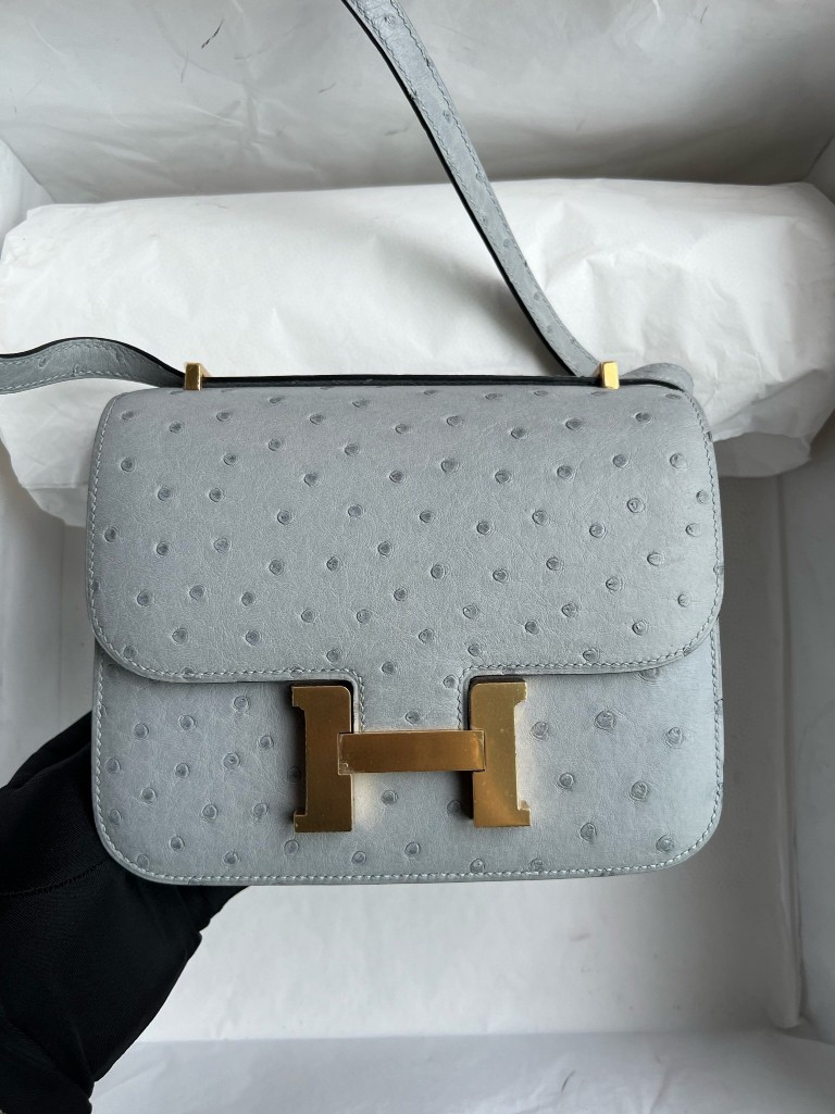 Constance Ostrich kk 8U Ice blue Gold Hardware 18cm Full Handmade