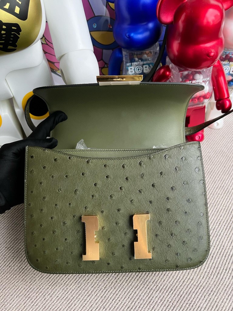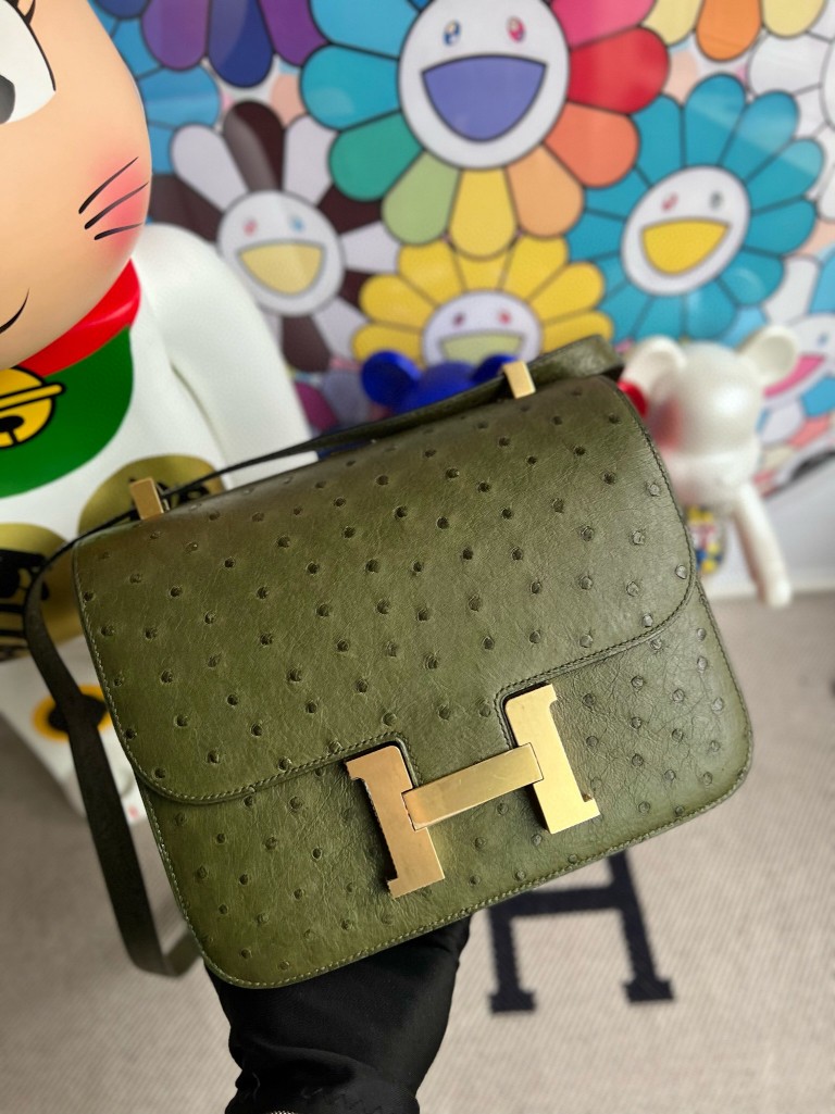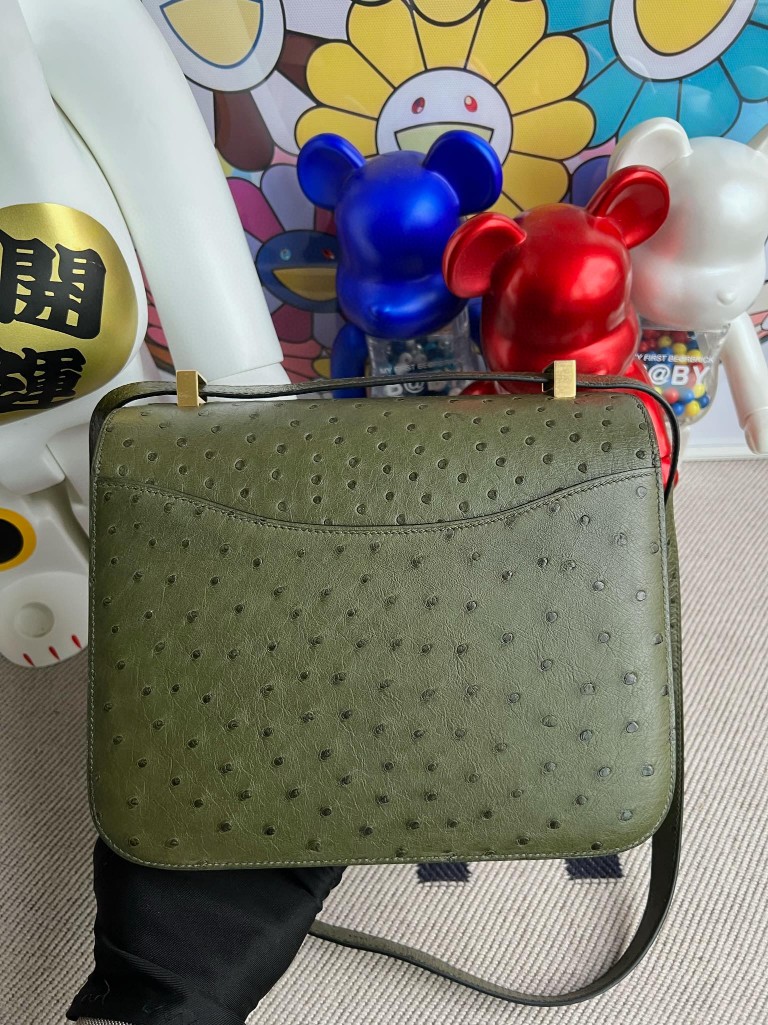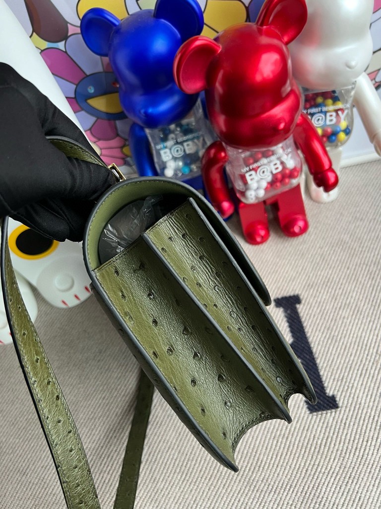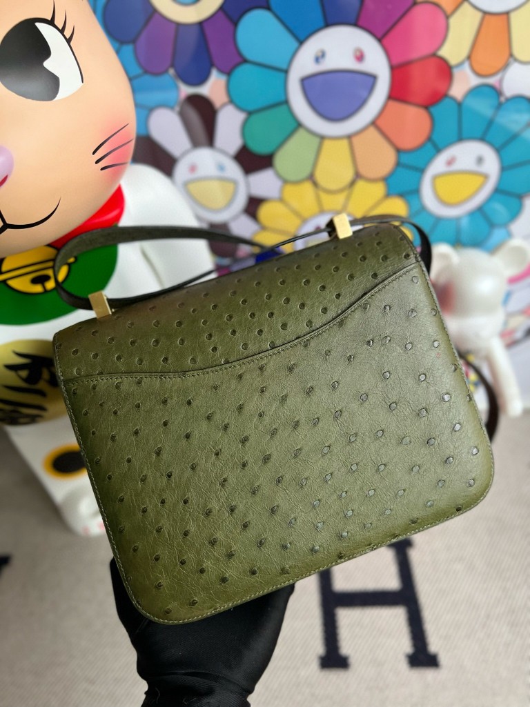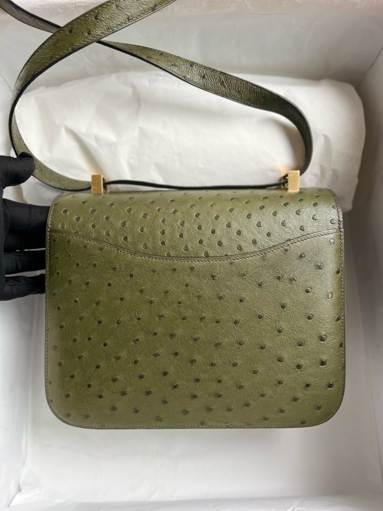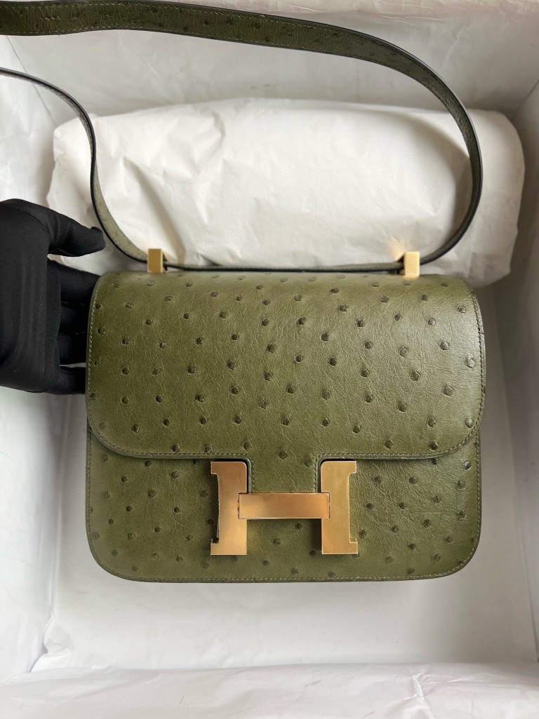 Constance Ostrich kk Olive green Gold Hardware 24cm Full Handmade