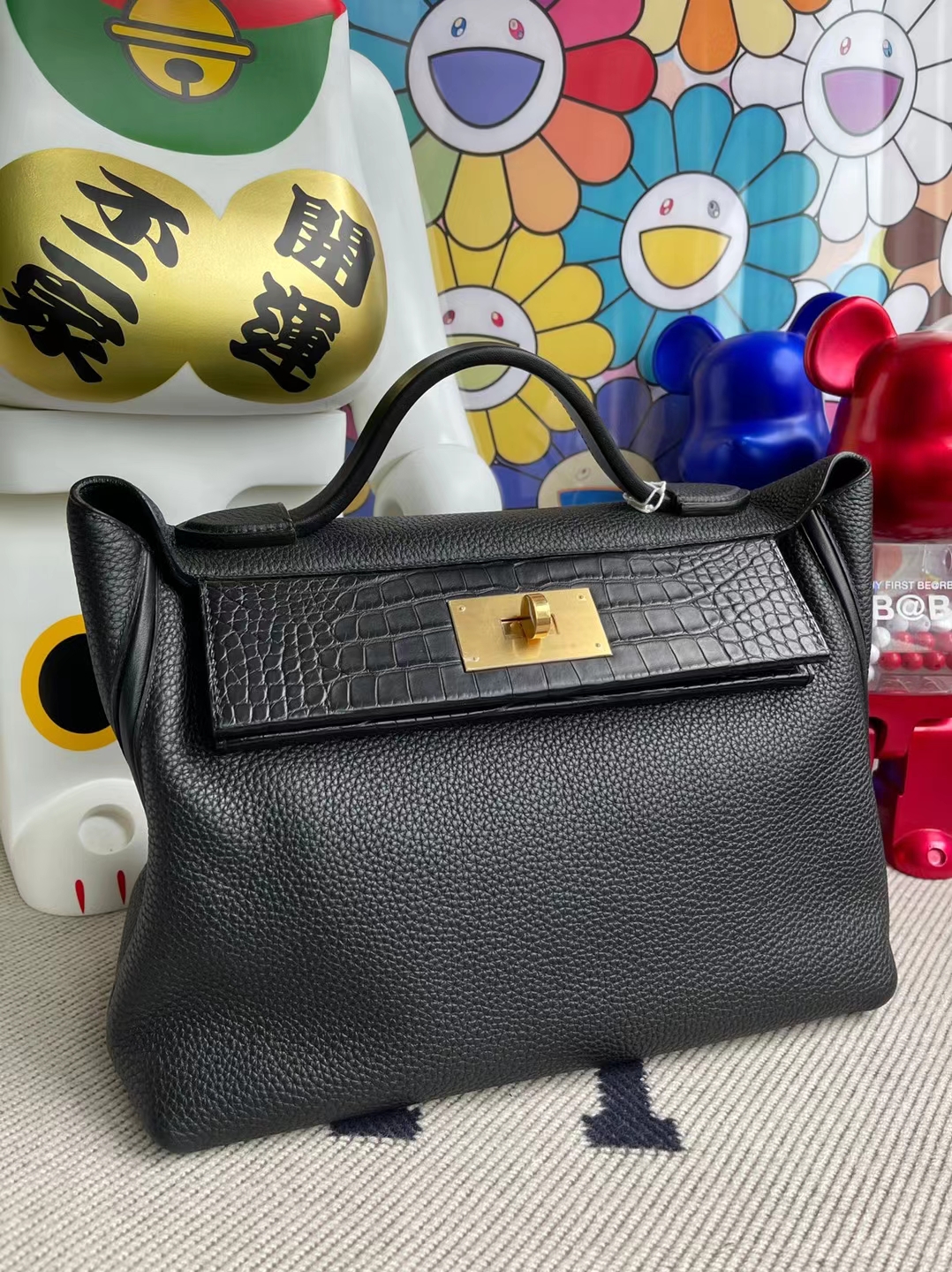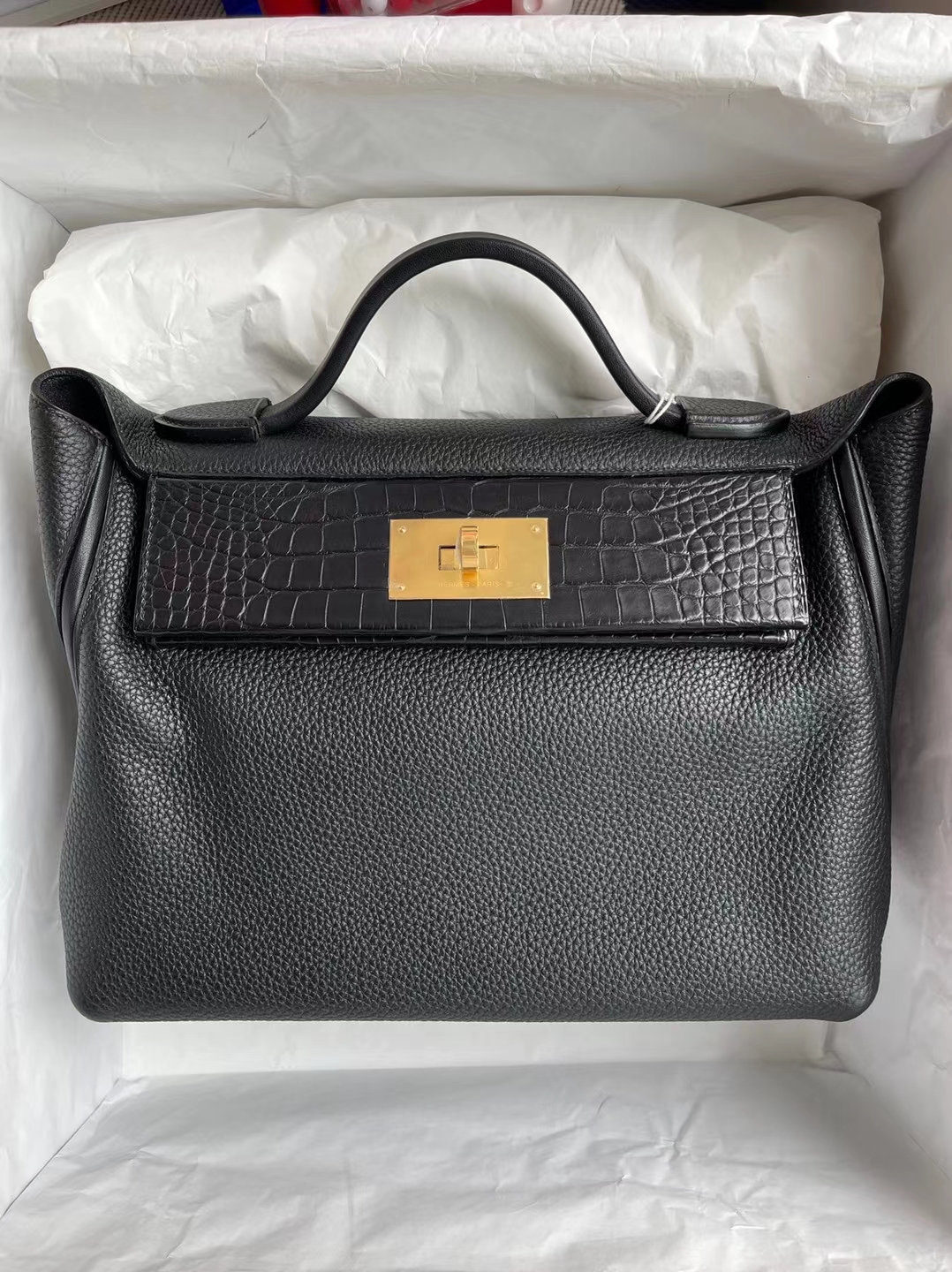 Kelly 2424 Touch 29cm Ck89 Black Gold Hardware Full Handmade