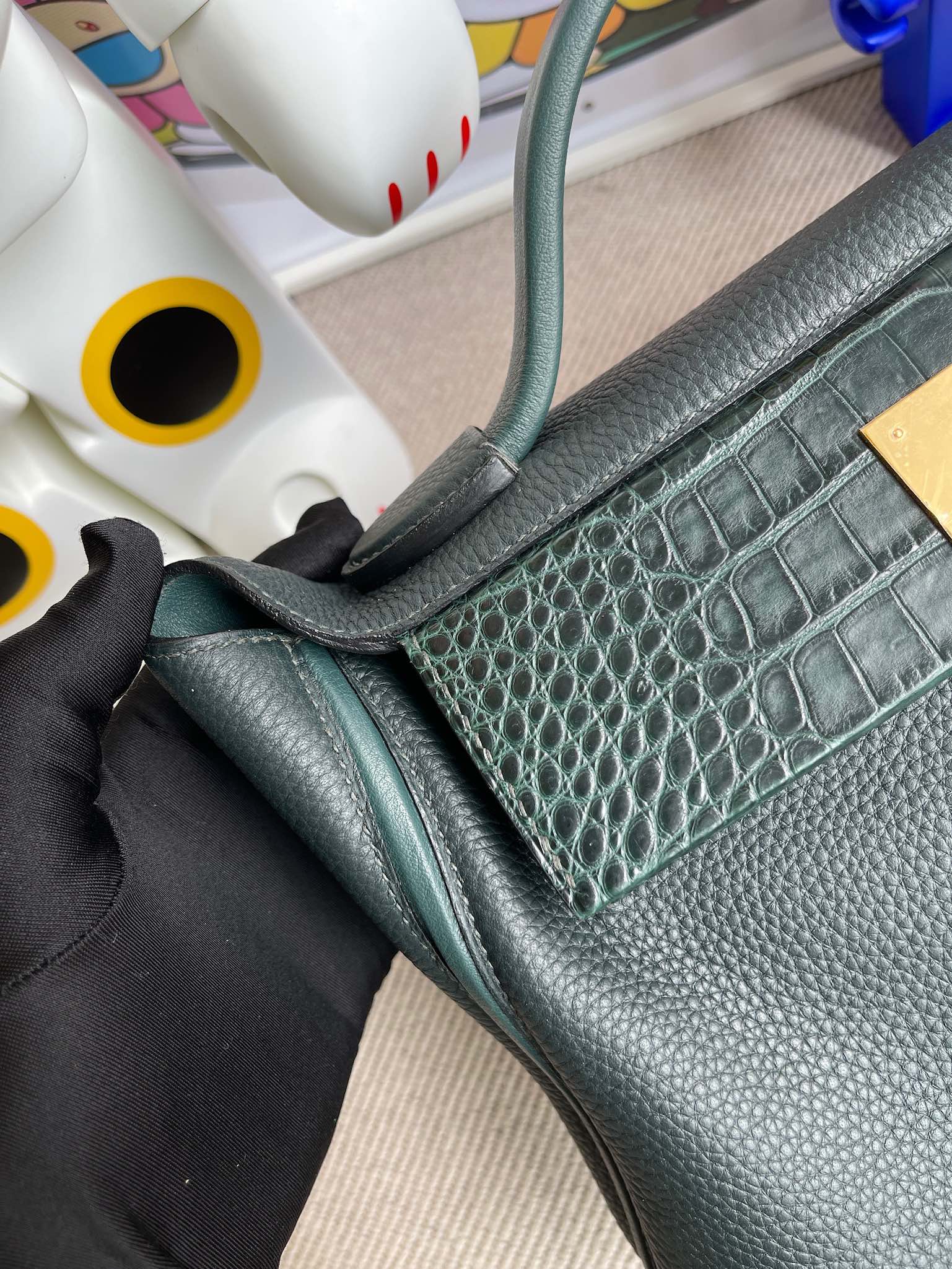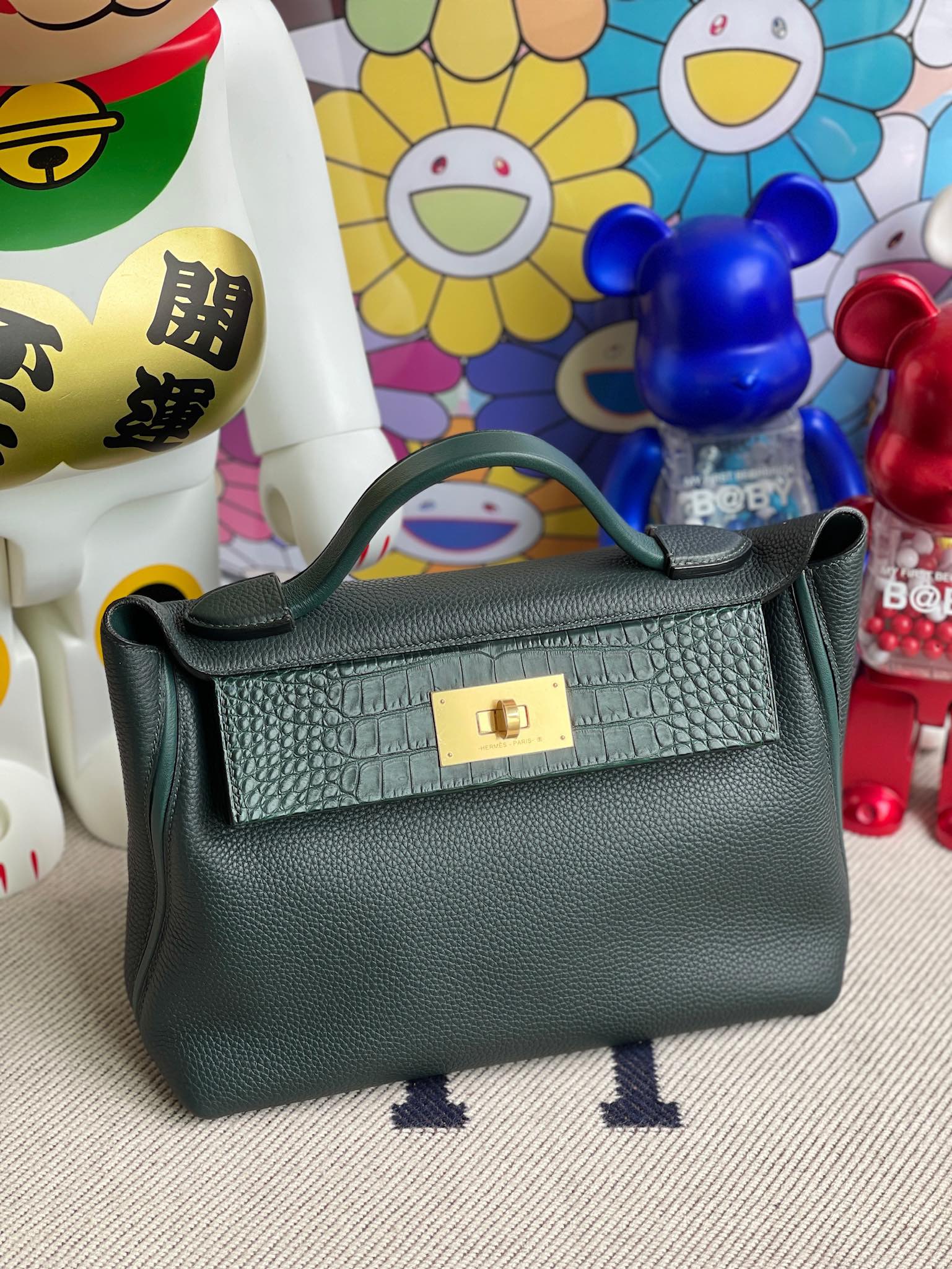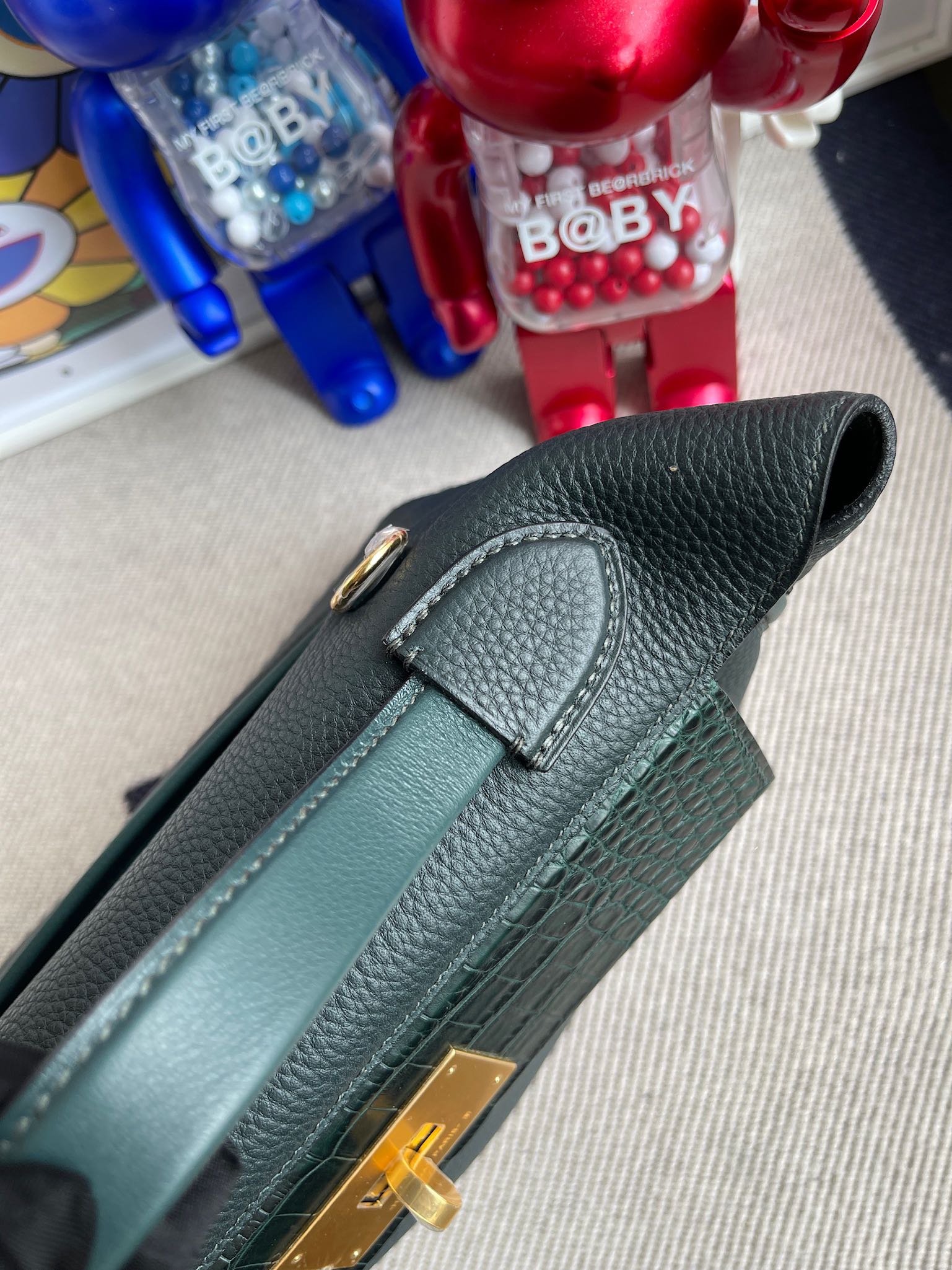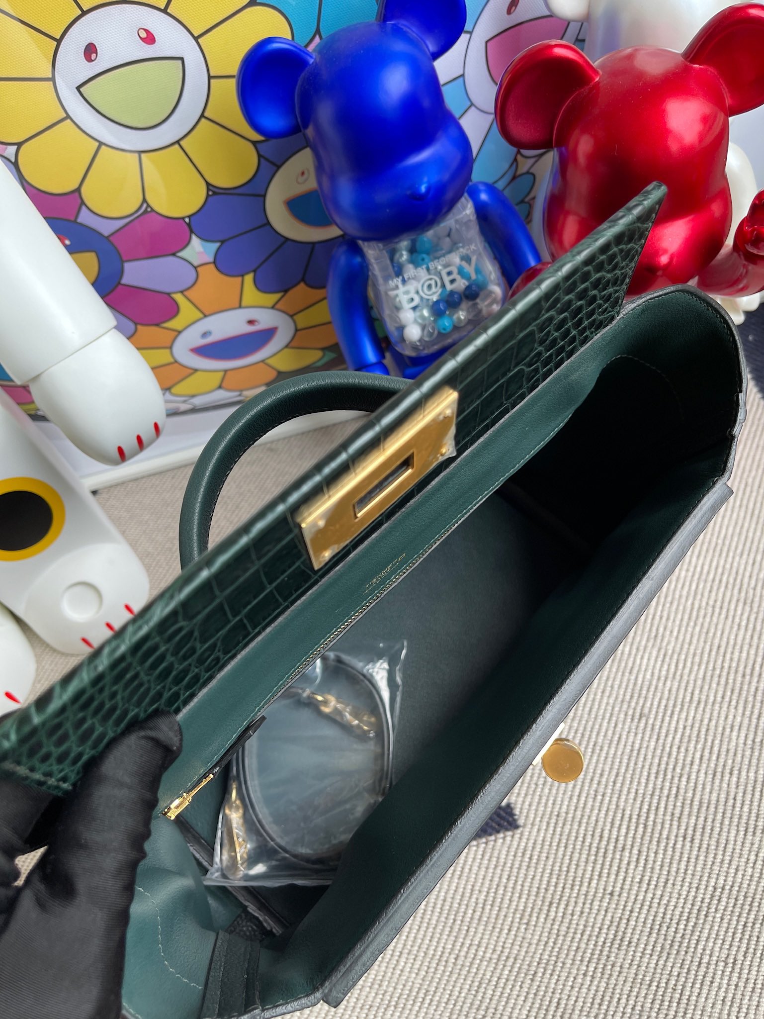Kelly 2424 Touch 29cm matte crocodile Cypress green Gold Hardware Full Handmade