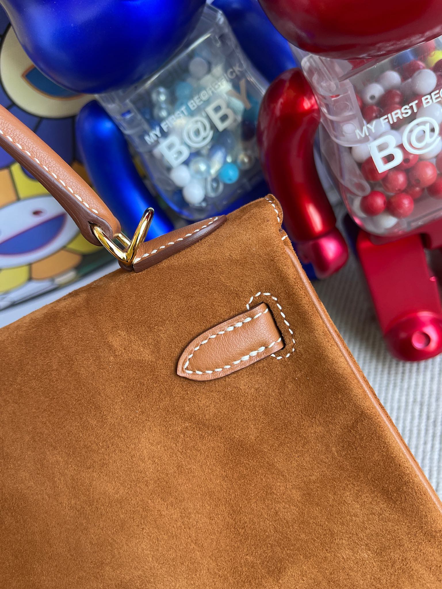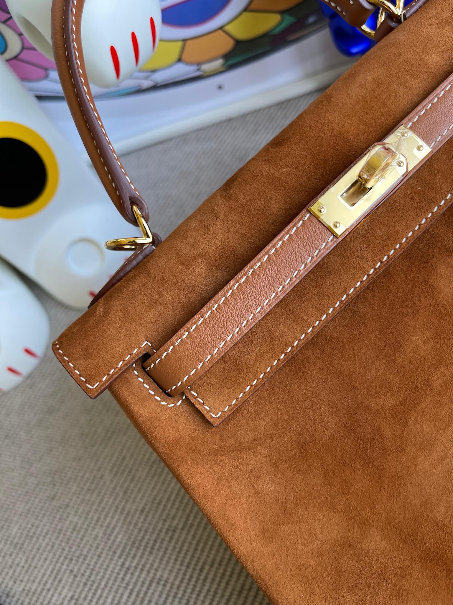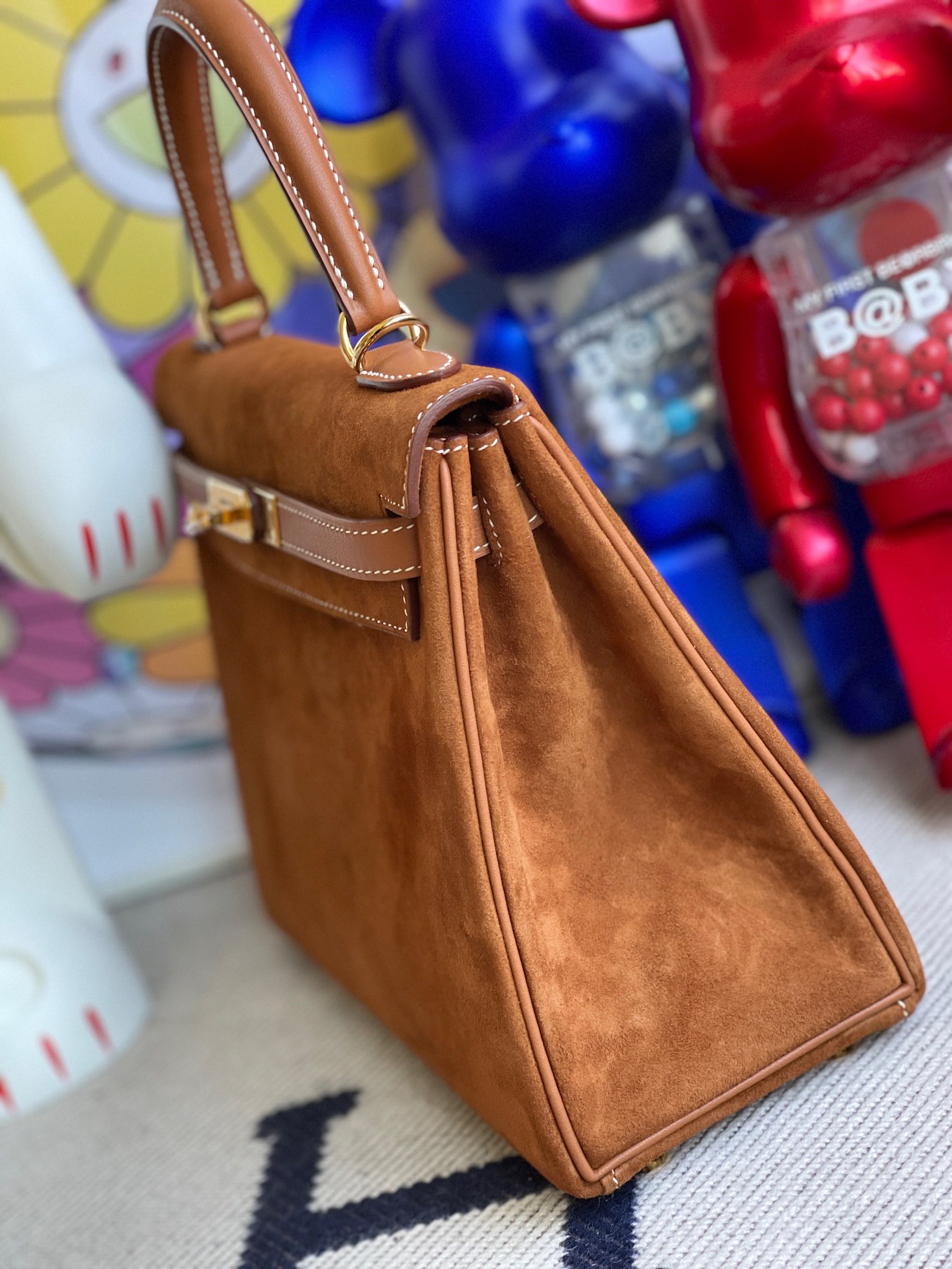 Kelly 25cm chamois & swift Golden brown Gold Hardware Full Handmade