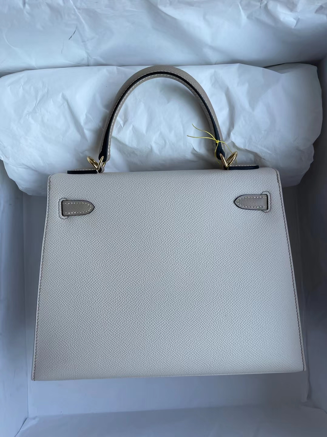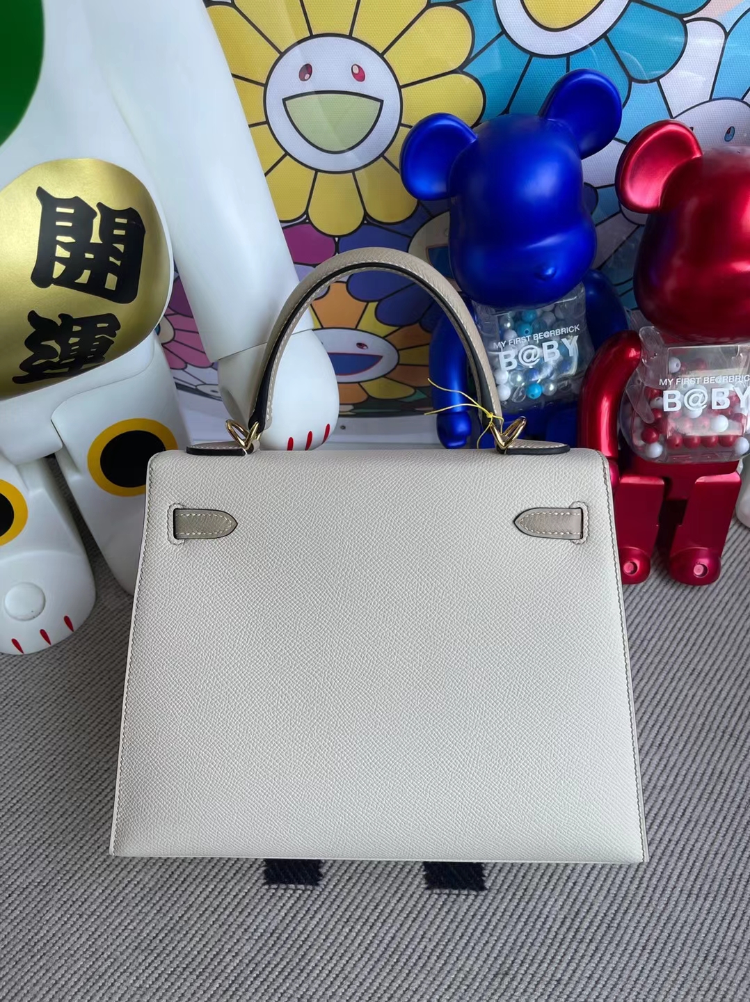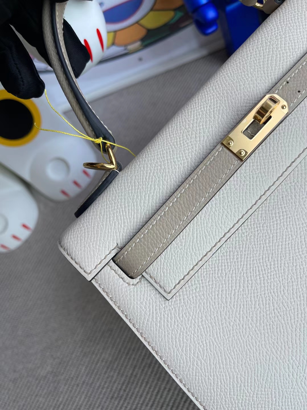 Kelly 25cm Epsom Ck10 Craie & S2 Trench Gold Hardware Full Handmade