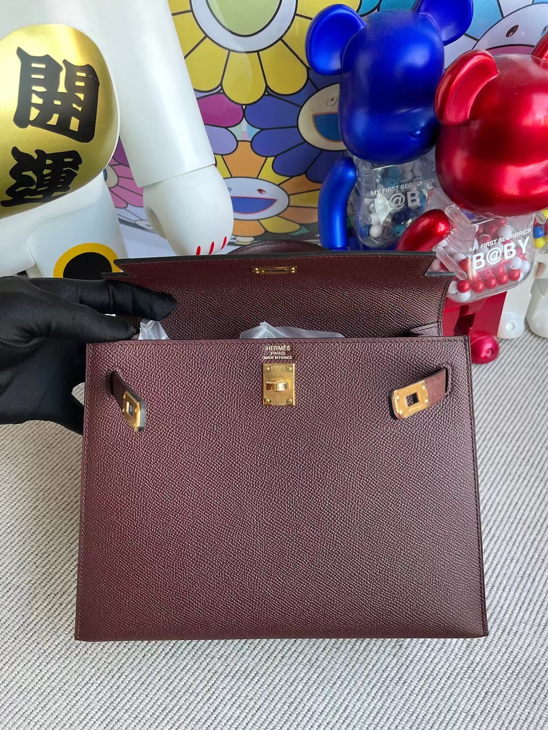 Kelly 25cm Epsom Ck57 Bordeaux red Gold Hardware Full Handmade