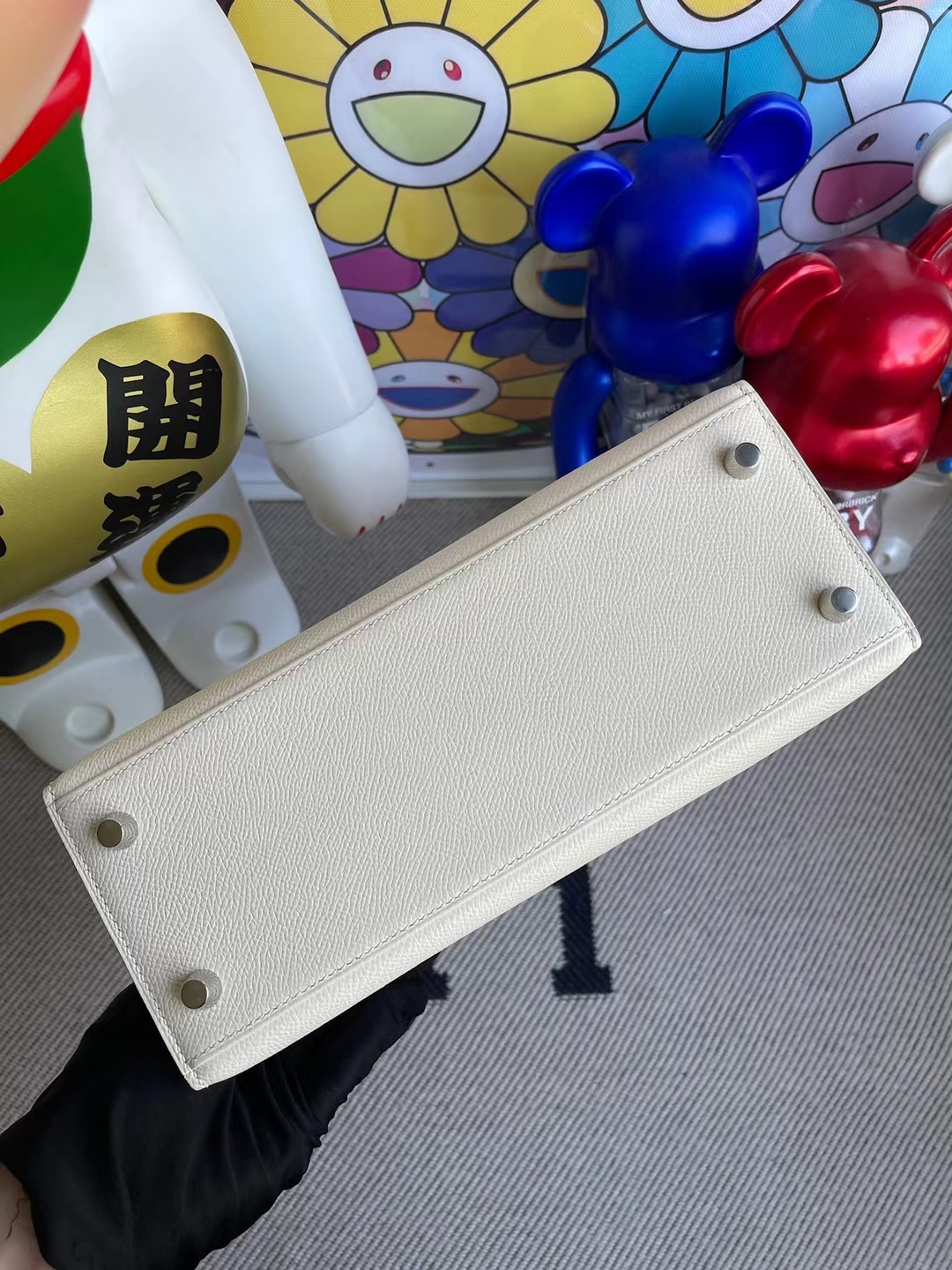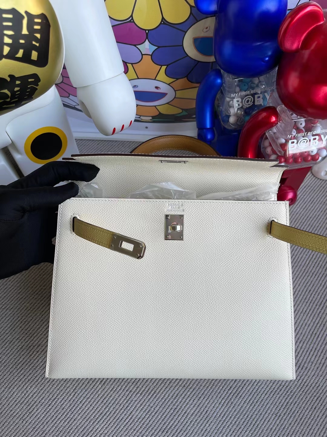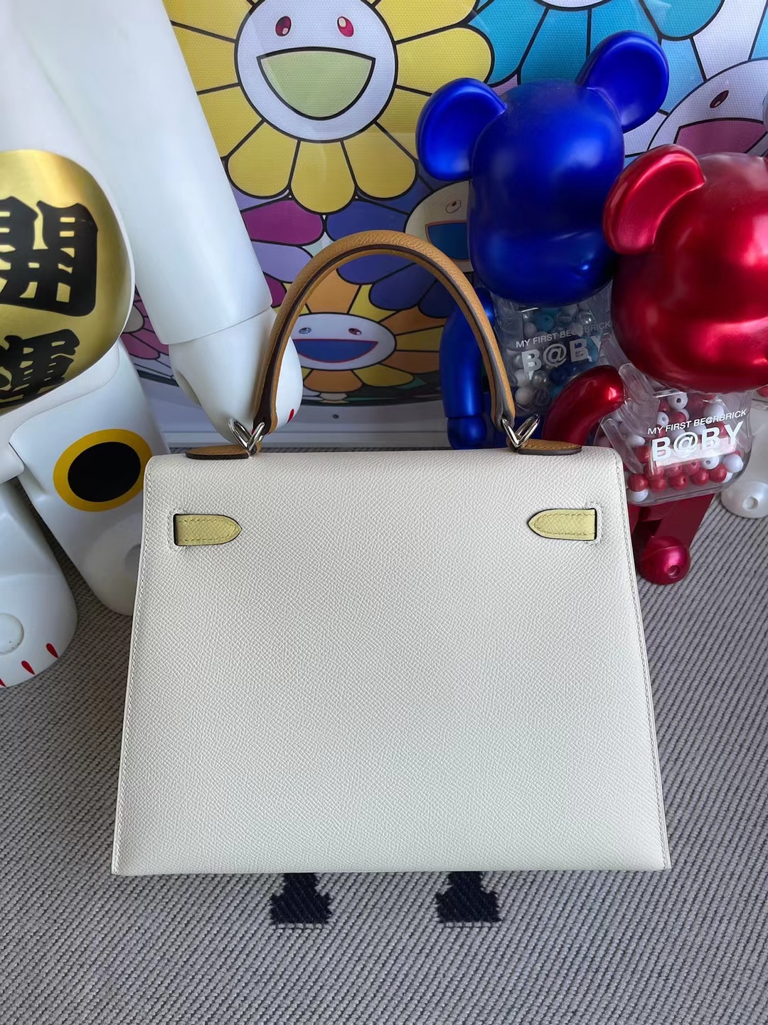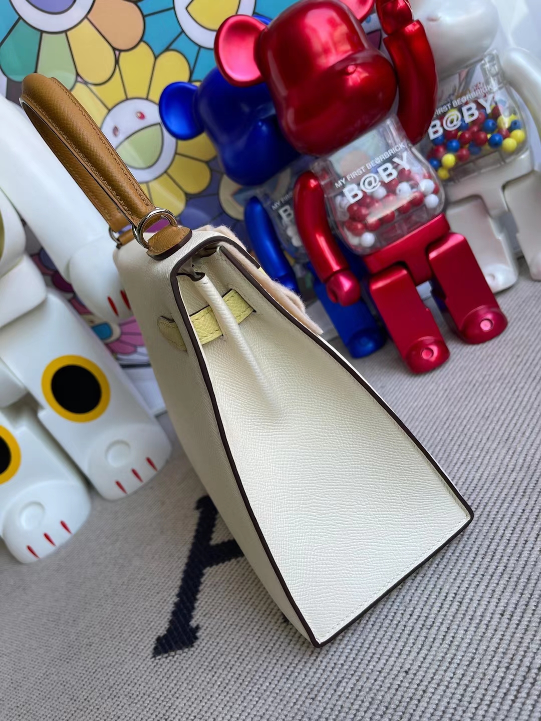 Kelly 25cm epsom i2 Craie & 1z yellow & 2s Sesame Silver Hardware Full Handmade